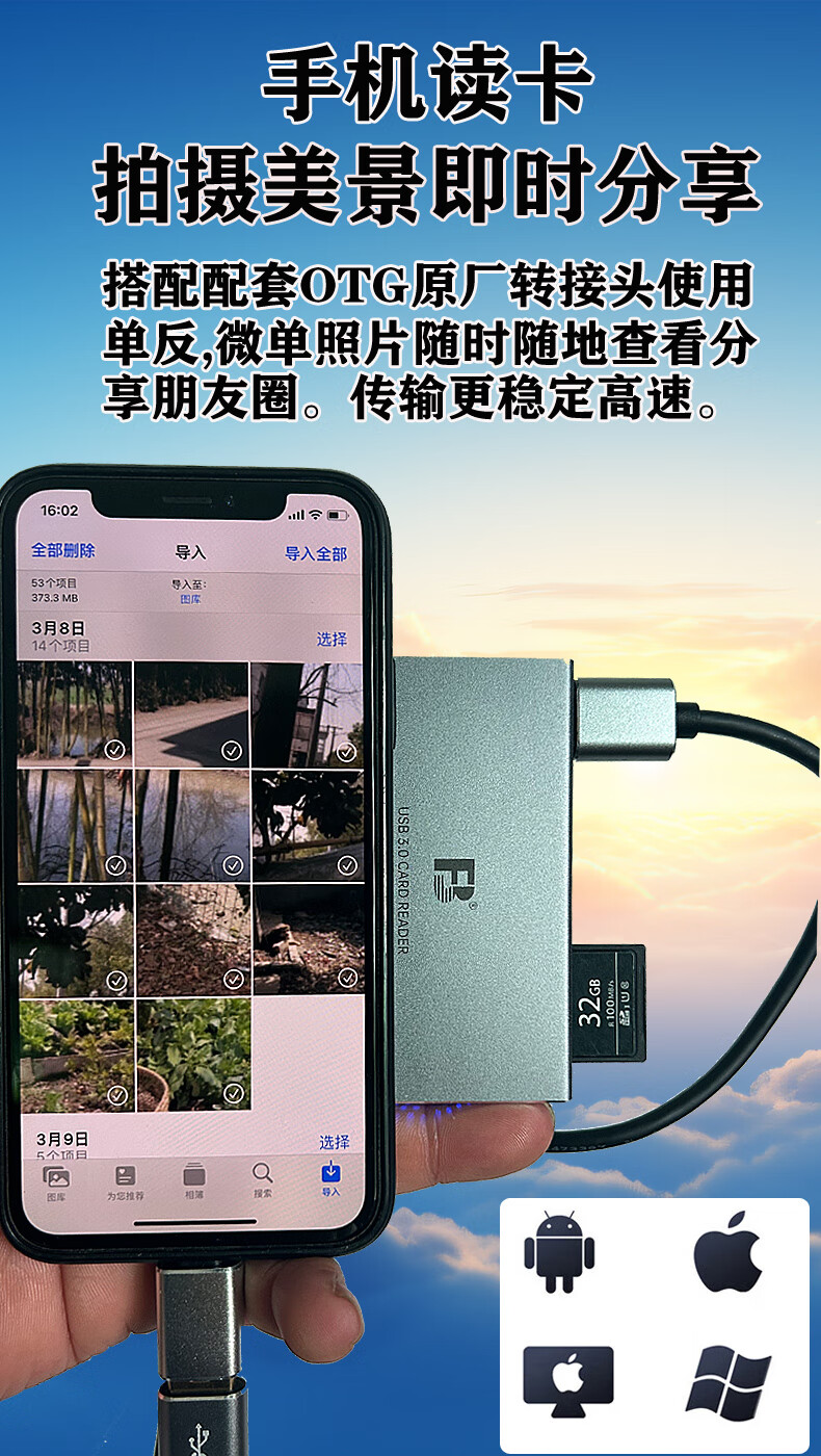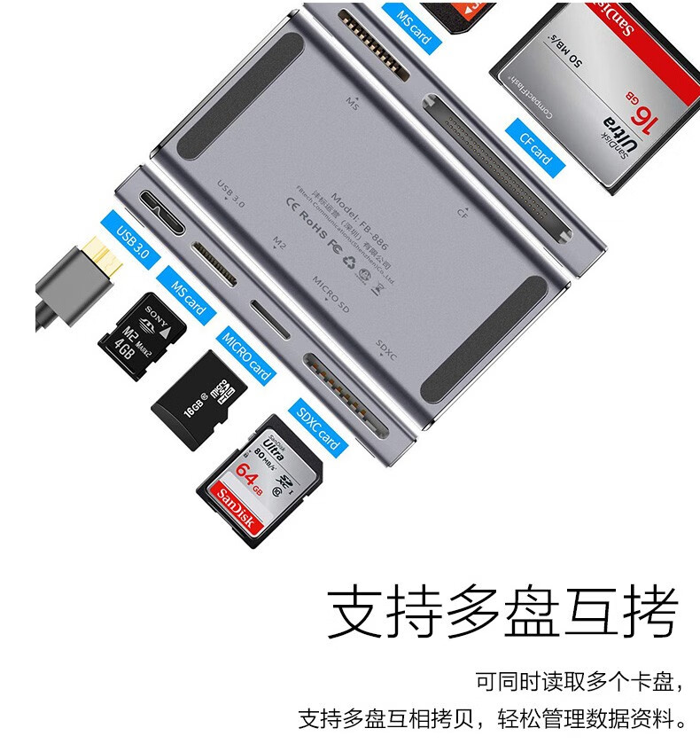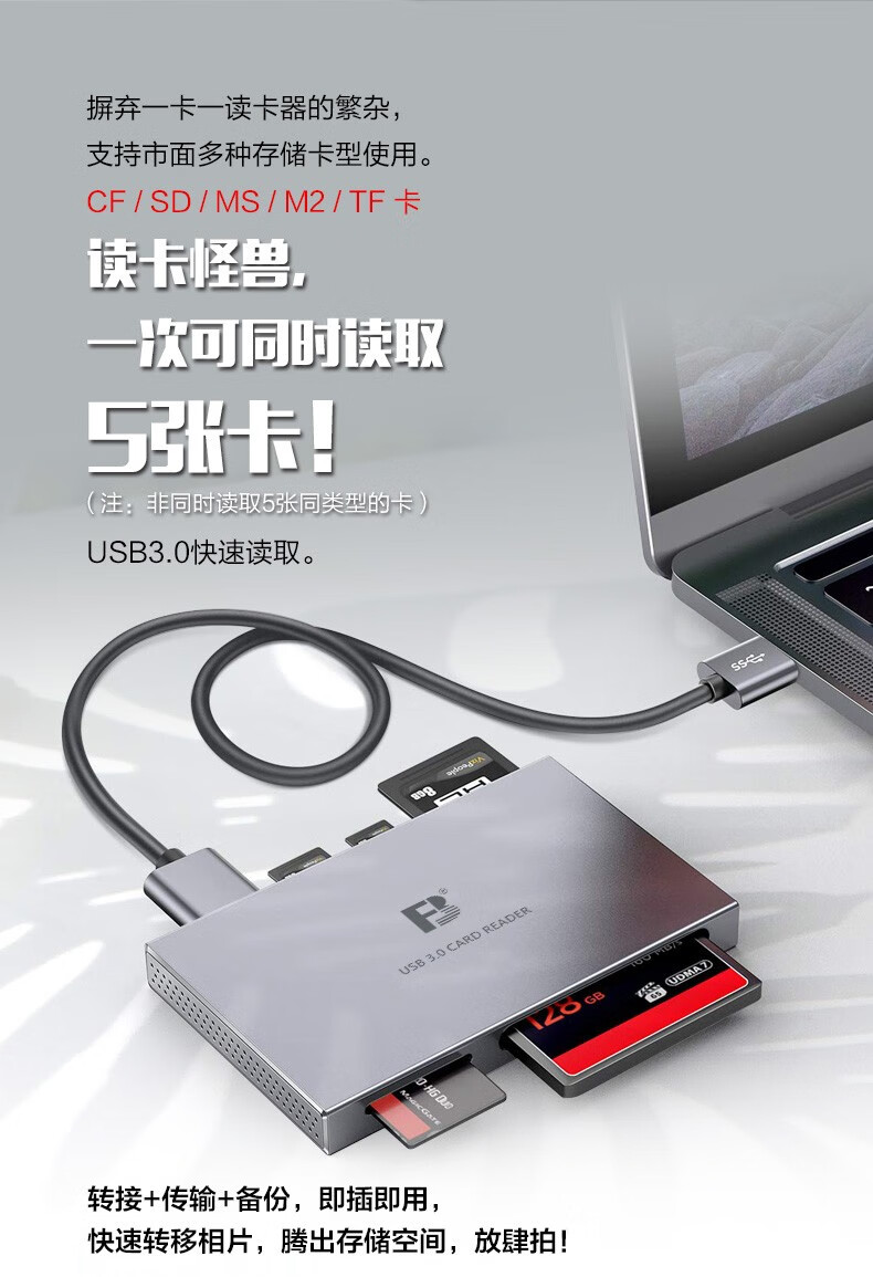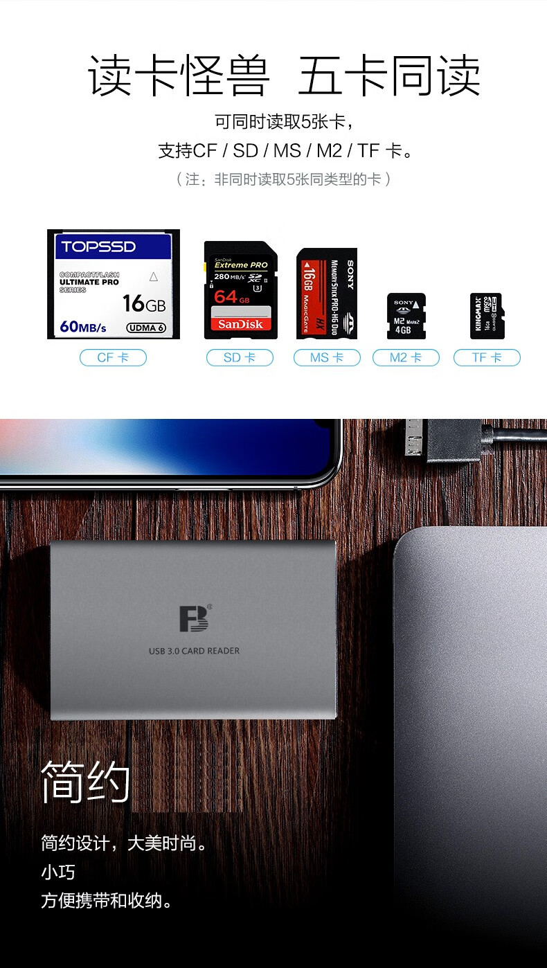 Fengbiao (FB) camera multi-function card reader all-in-one sd card tf cf mobile phone high-speed 5.0 card reader Apple type-c 5-in-1 multi-function metal card reader