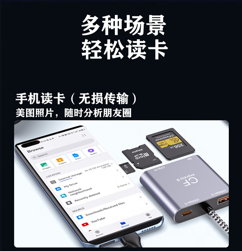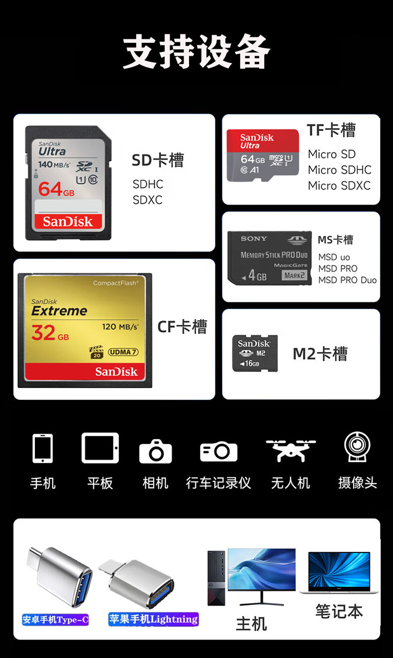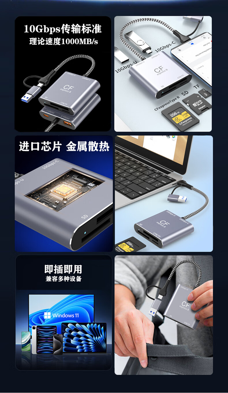 Fengbiao (FB) camera multi-function card reader all-in-one sd card tf cf mobile phone high-speed 5.0 card reader Apple type-c 5-in-1 multi-function metal card reader