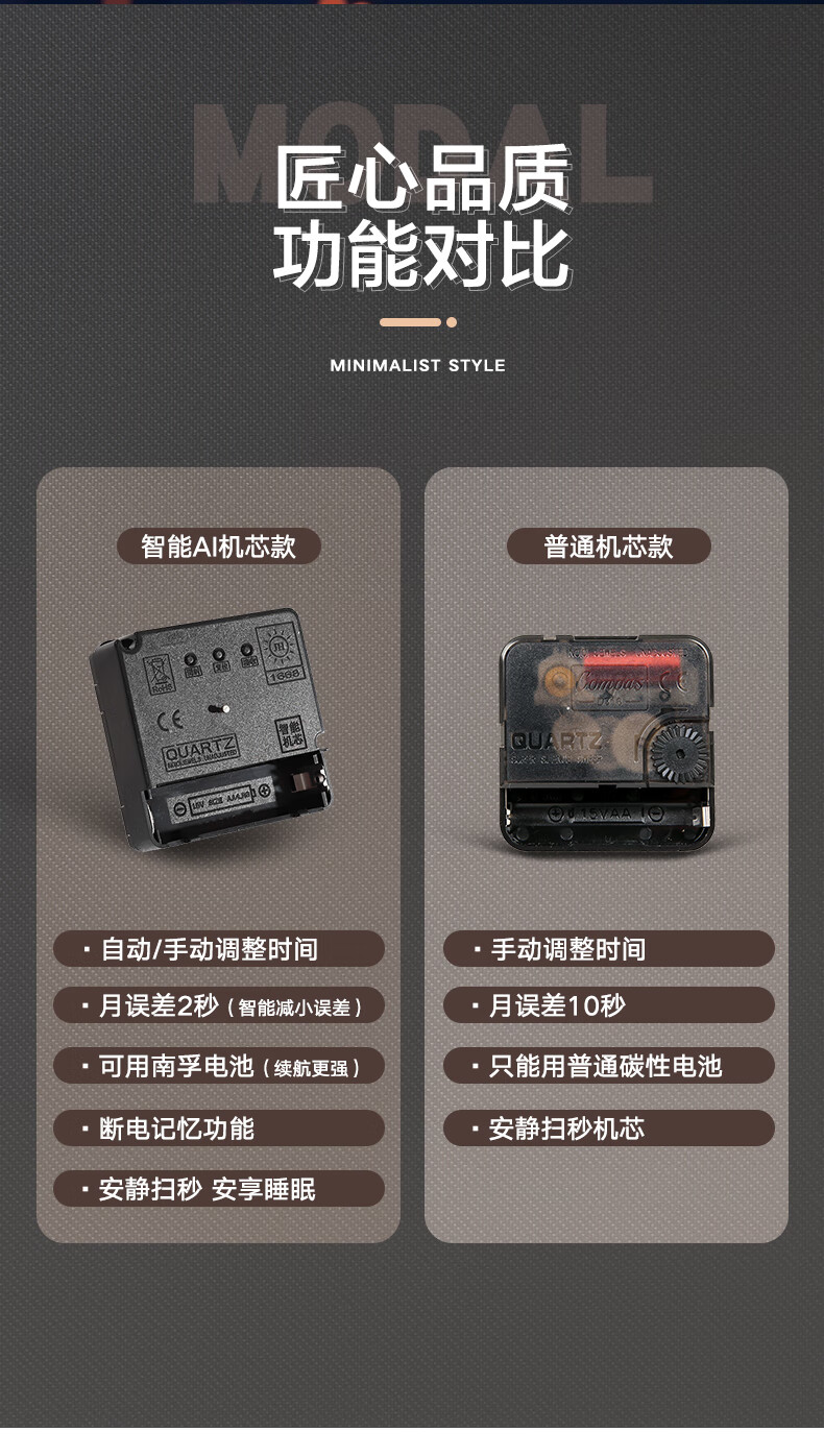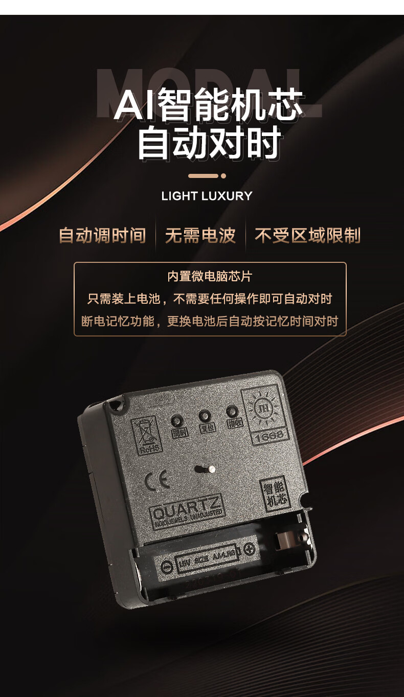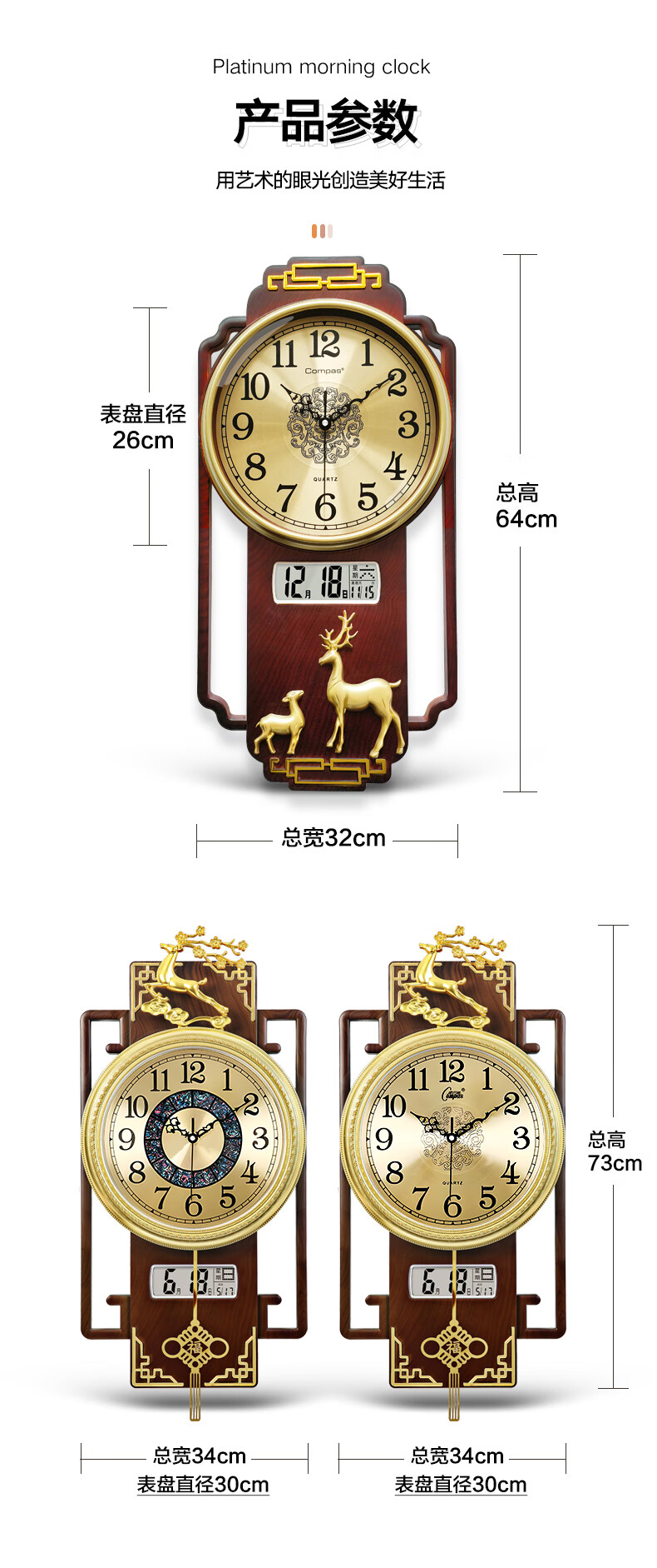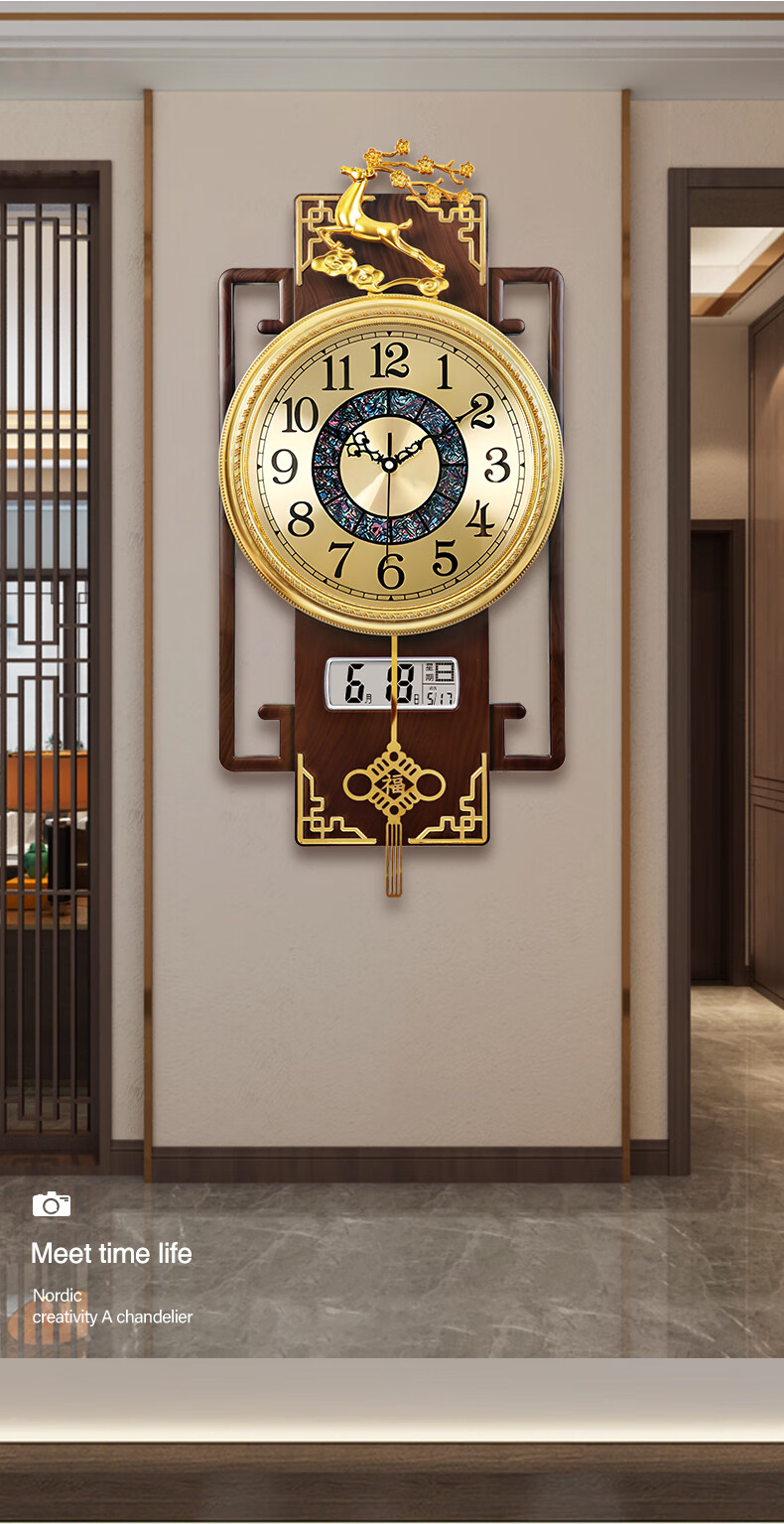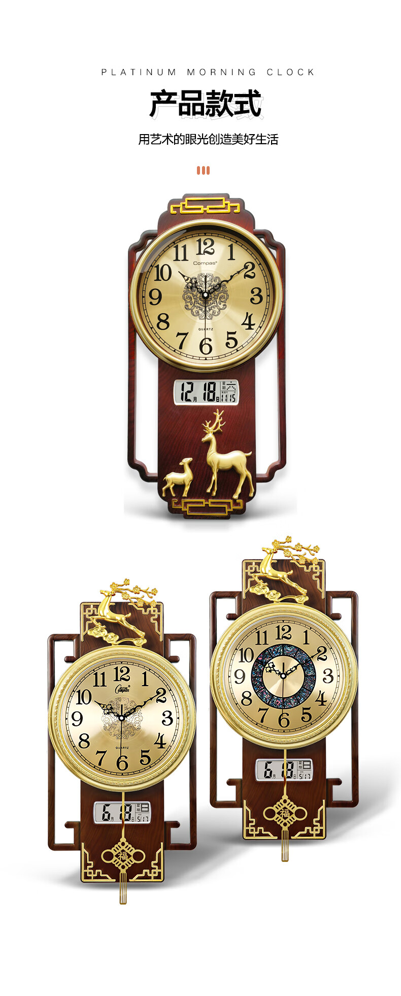 Compas new Chinese style light luxury calendar wall clock 2025 new home fashion clock living room clock wall hanging high-end atmosphere Fulu red wood grain (AI intelligent automatic time setting)