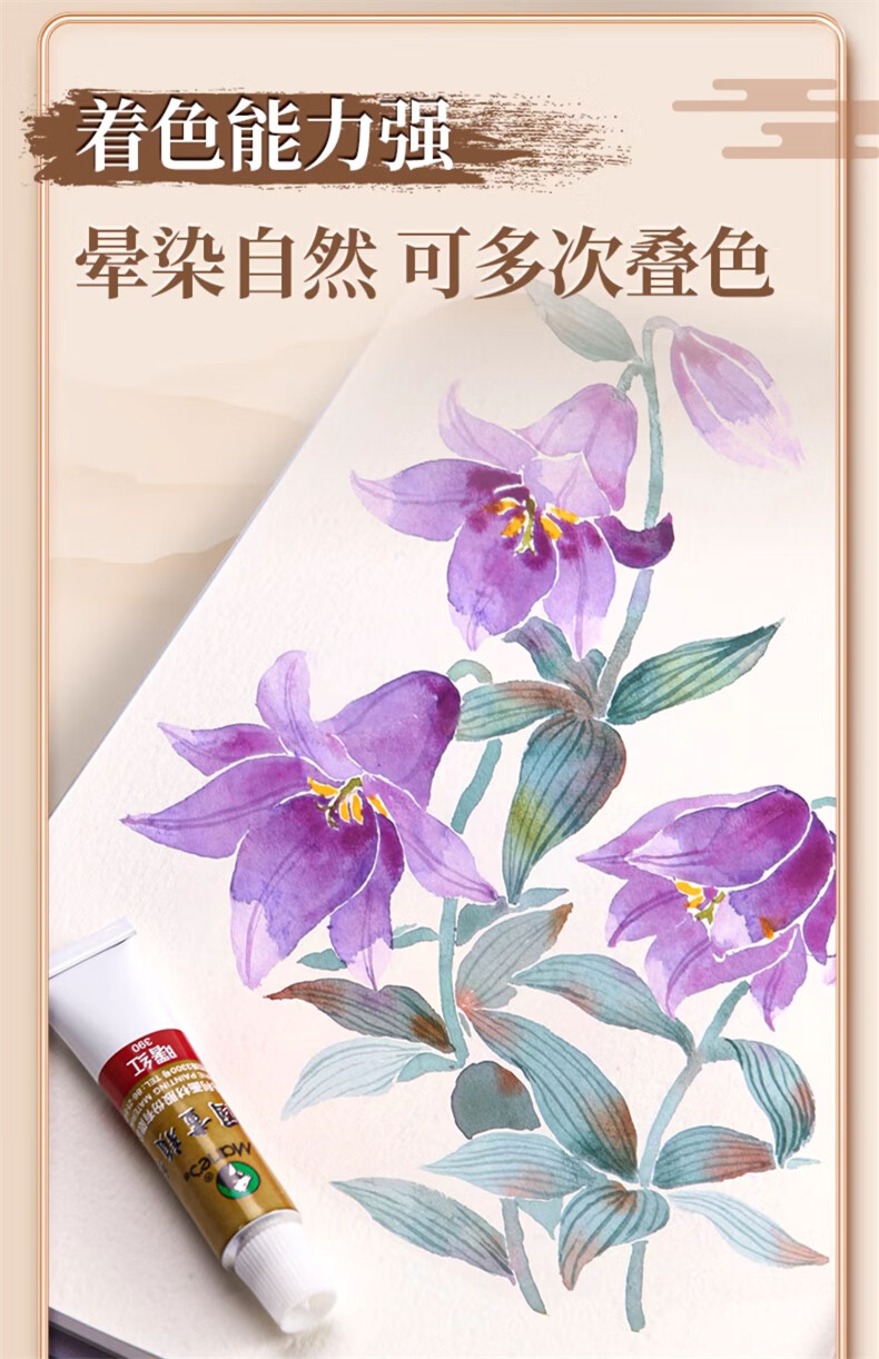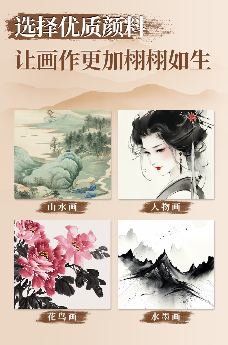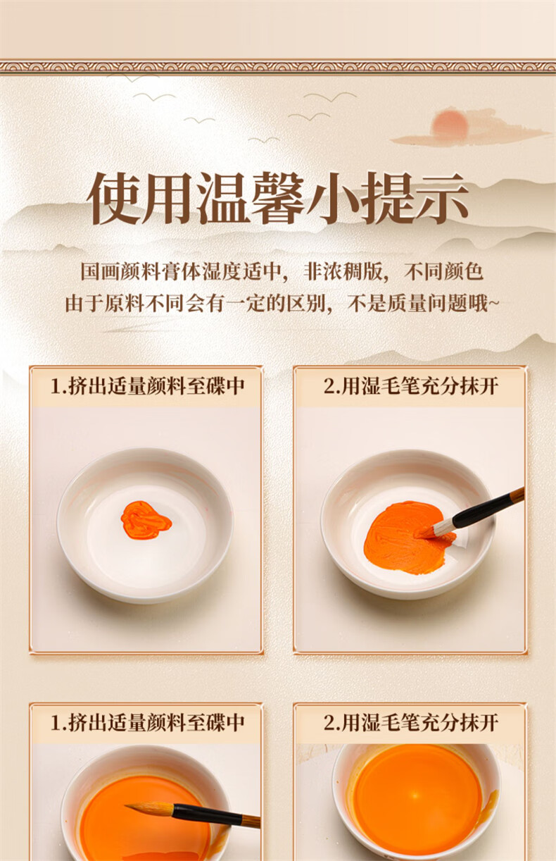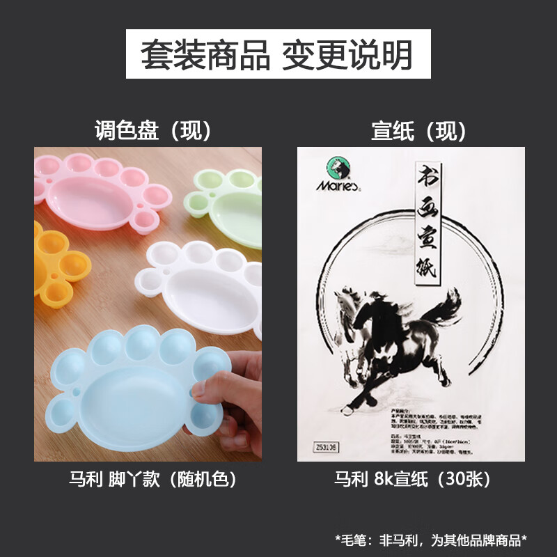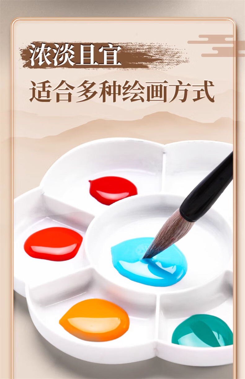 Marie s Chinese painting pigments, 24 colors of Chinese painting pigments for ink painting, introductory brush set for beginners, brush, rice paper and ink entry-level painting art tool set, 12 colors, 5ml, single box of paint + 1 brush, official standard configuration