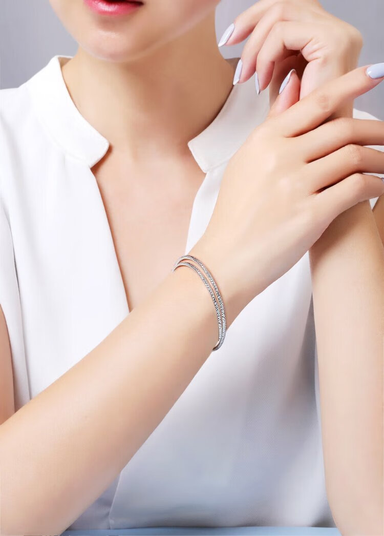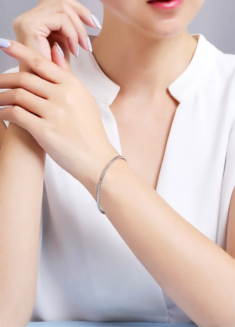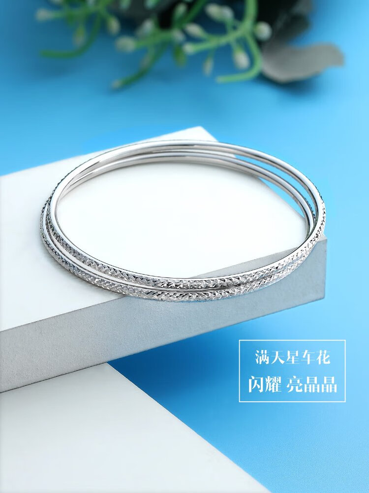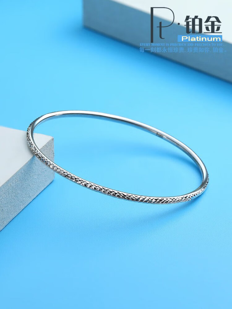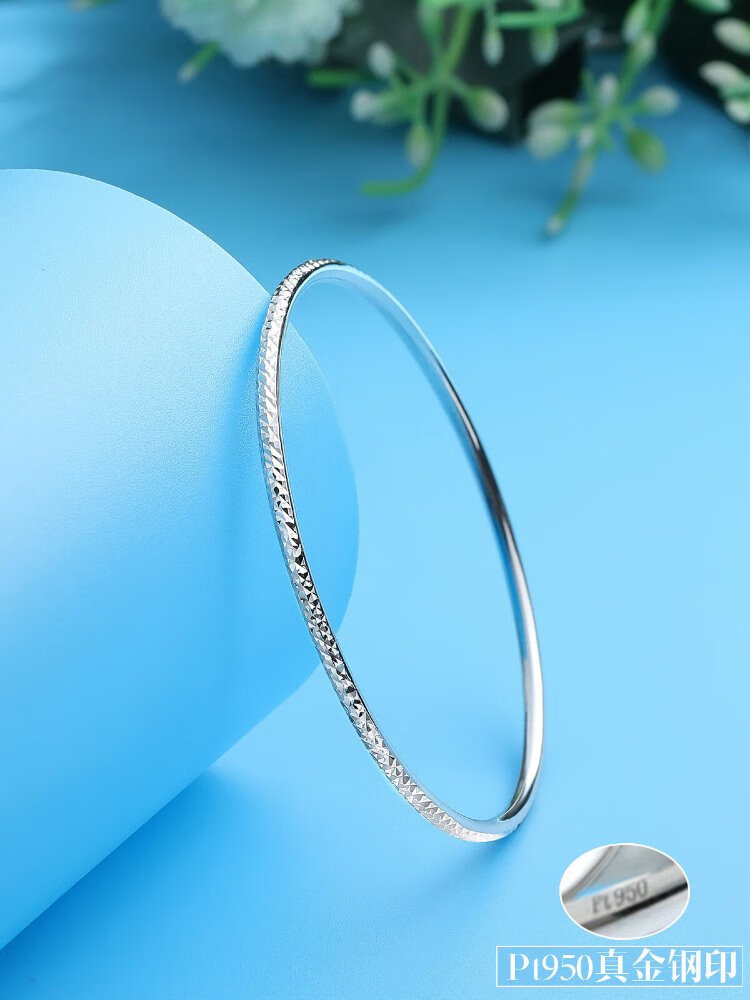 Heye Jewelry Exploding Gypsophila Platinum Round Bracelet Solid Women's Pt950 Platinum Women's Wire Bracelet Platinum Pt950 Bracelet 5.78g No. 57 Width 2.0mm Perfect Round Solid.