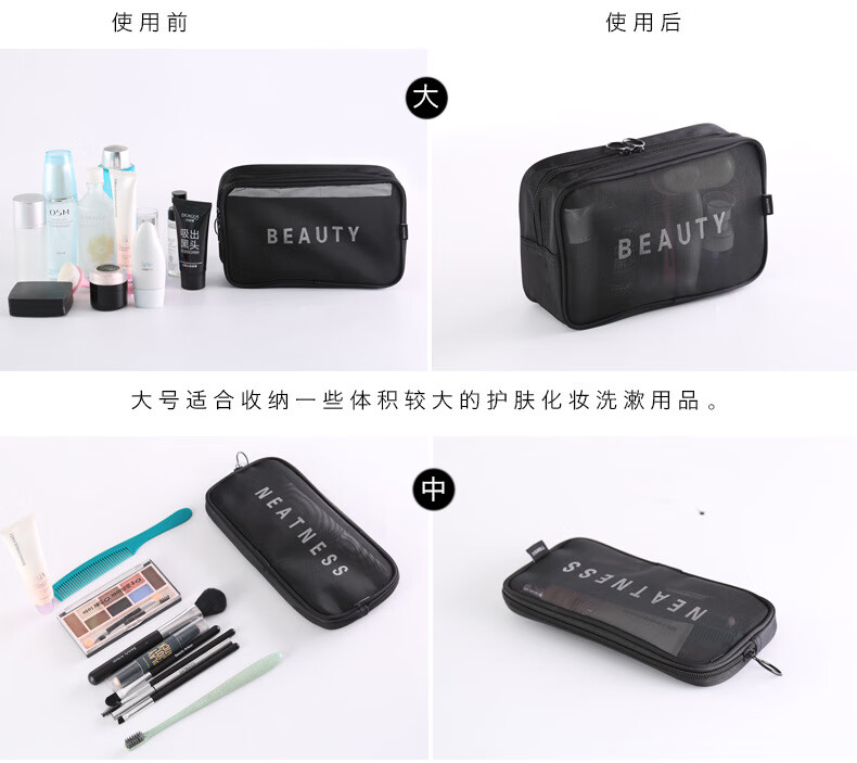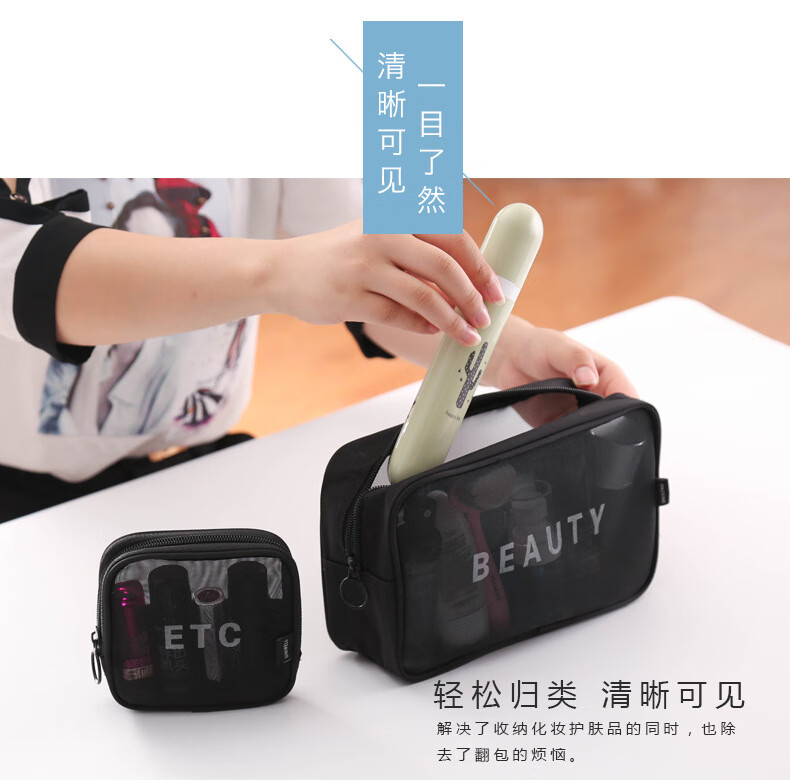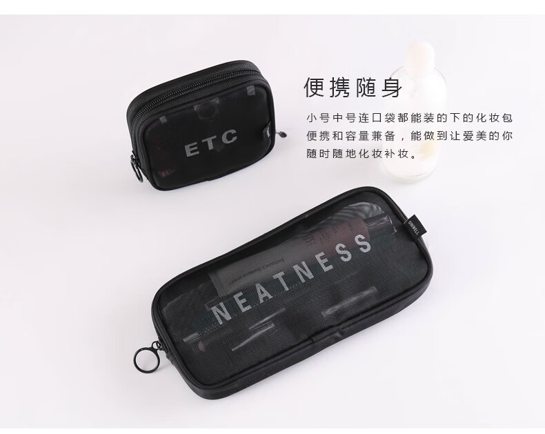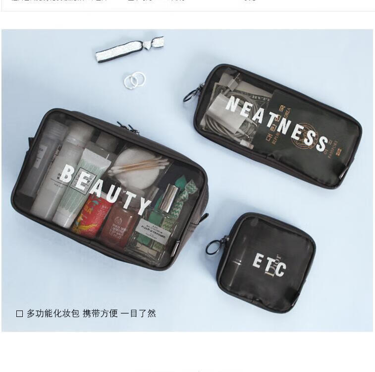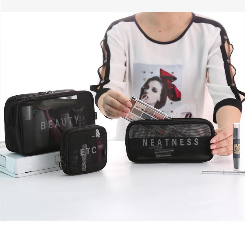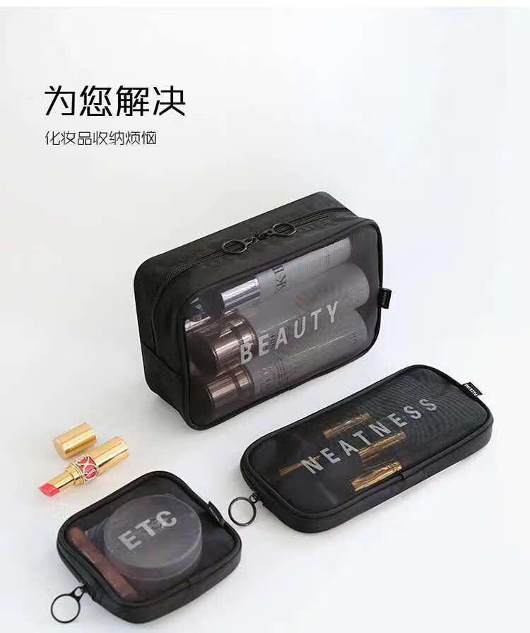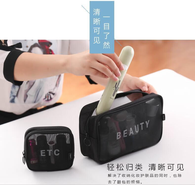 Zichen transparent portable travel toiletry bag cosmetics storage bag business trip toiletry bag foundation lipstick cosmetic bag black medium size