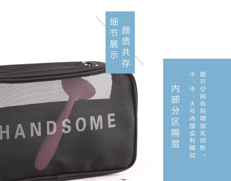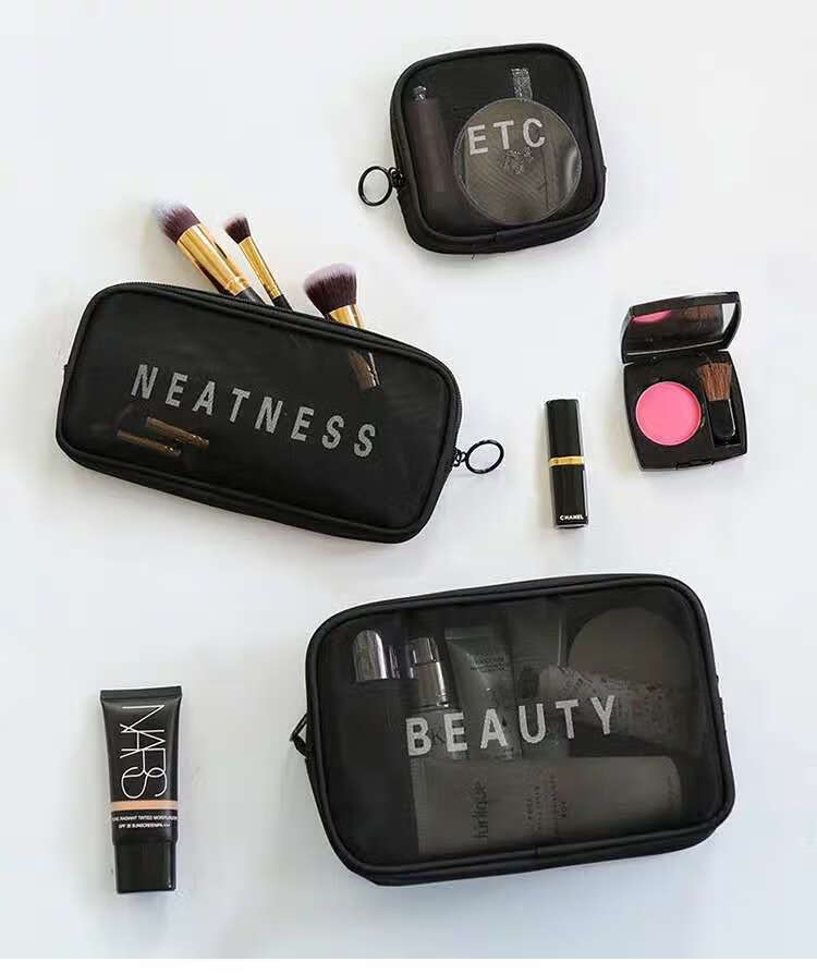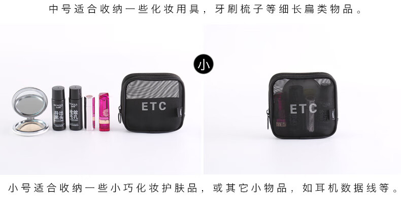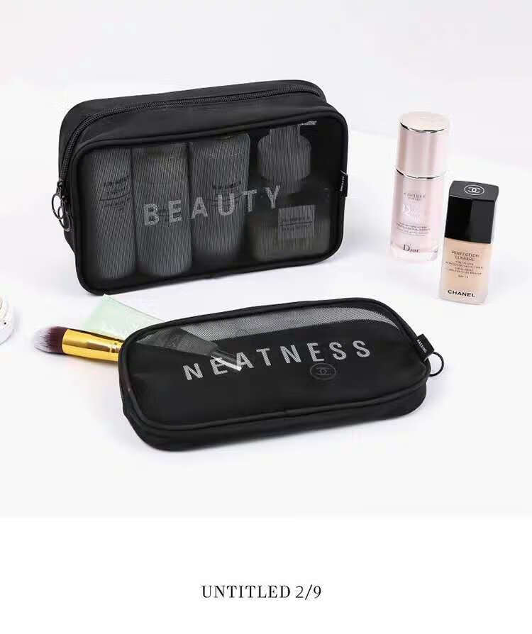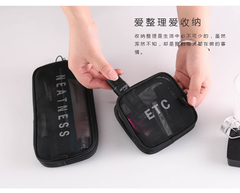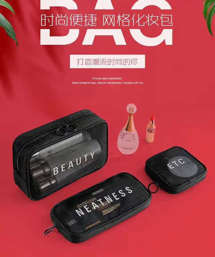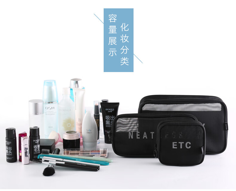 Zichen transparent portable travel toiletry bag cosmetics storage bag business trip toiletry bag foundation lipstick cosmetic bag black medium size