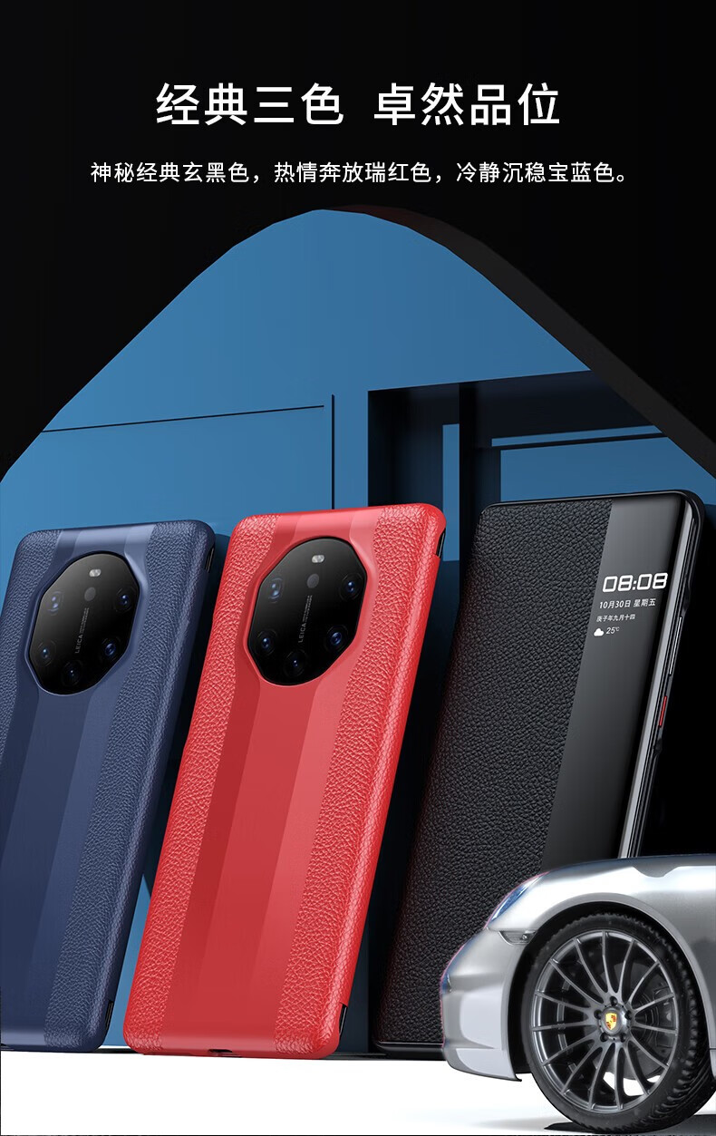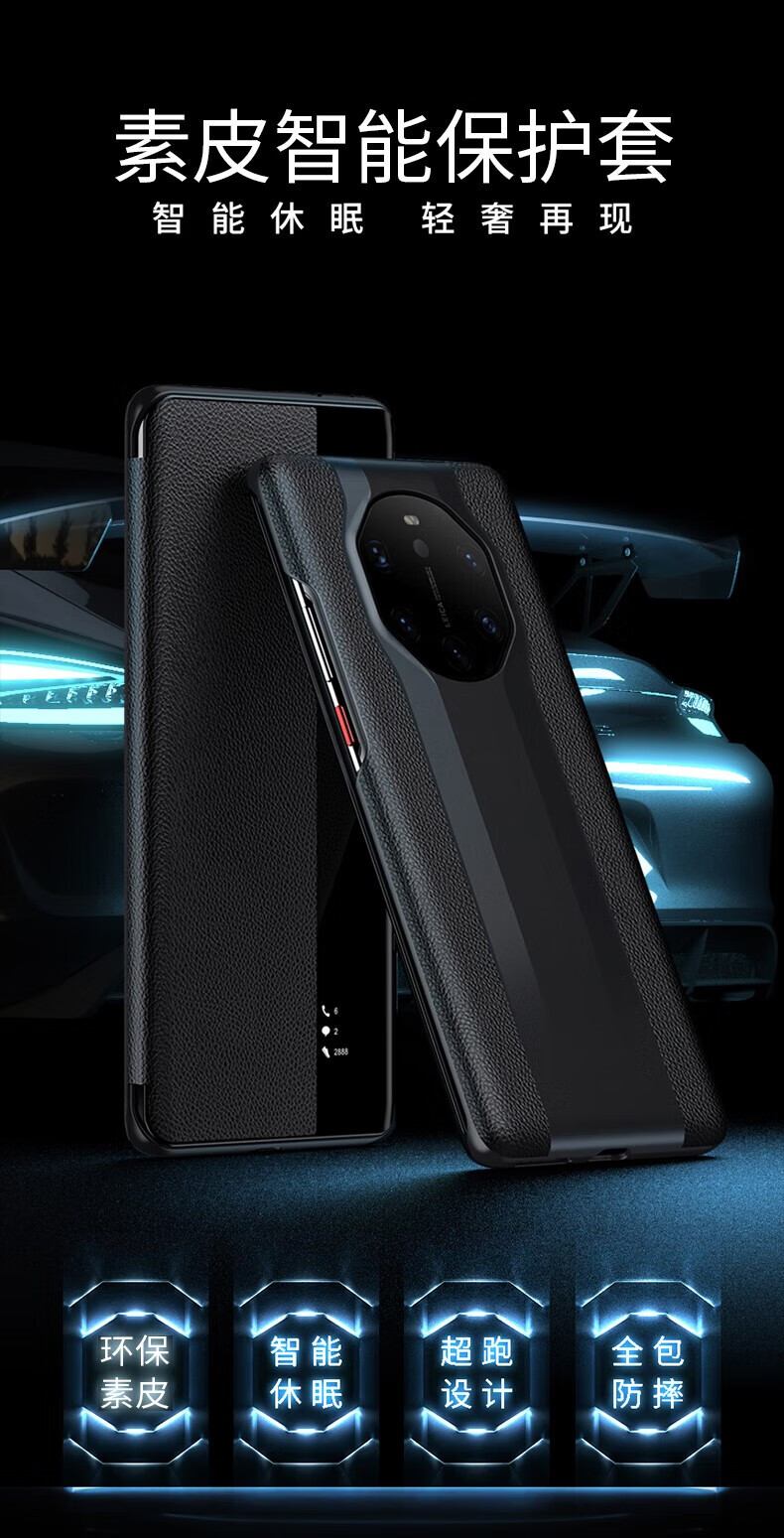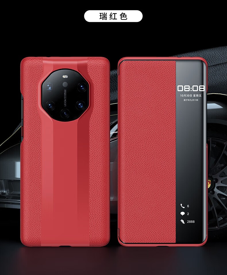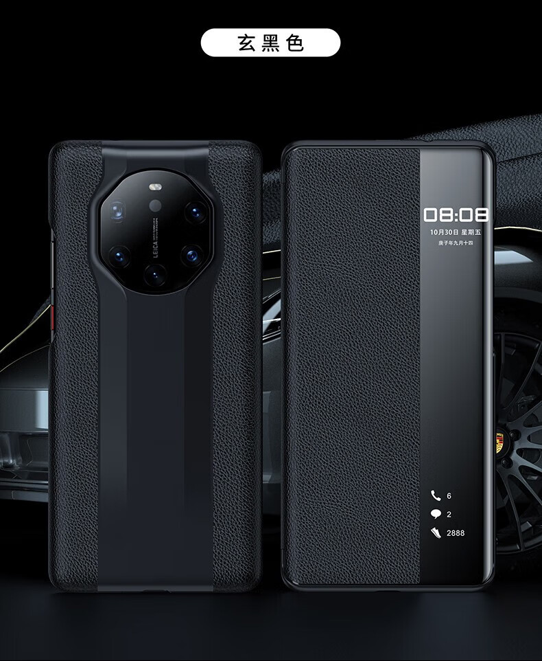 Genuine Huawei mate50rs Porsche mobile phone case protective cover MATE50RS flip smart window genuine plain leather all-inclusive anti-fall high-end business men's leather case mate50rs Porsche - black