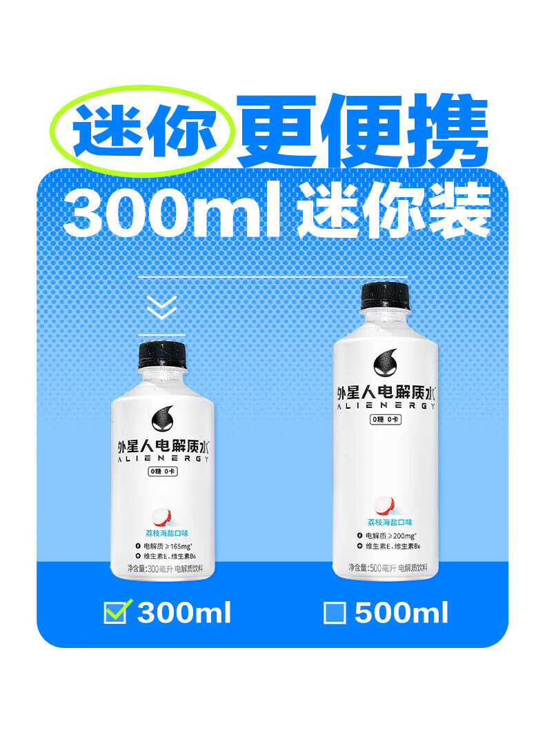 Alien electrolyte water drink 500ml*15 bottles in a box 0 sugar 0 calorie electrolyte water drink sports hydration white grape aloe vera flavor 500ml*15 bottles/box
