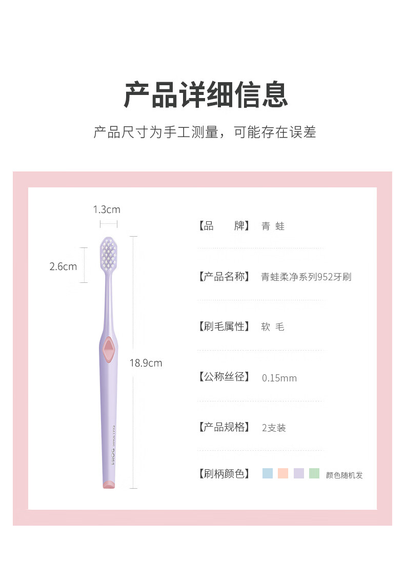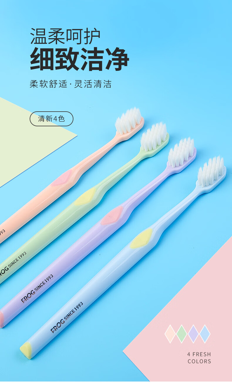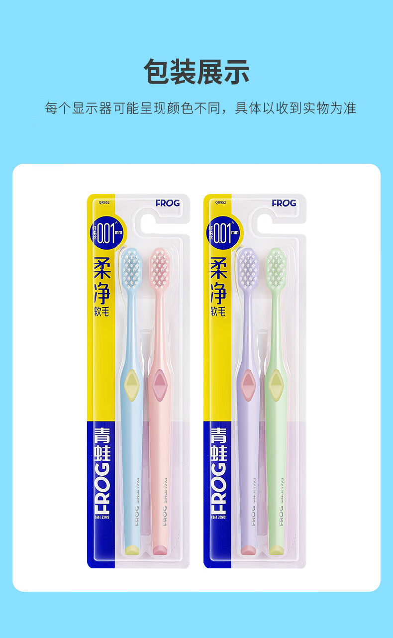 Frog soft-bristled adult toothbrush with fine soft bristles, deep tooth cleaning for couples, adult family set 952 series, soft bristles, 2 pieces