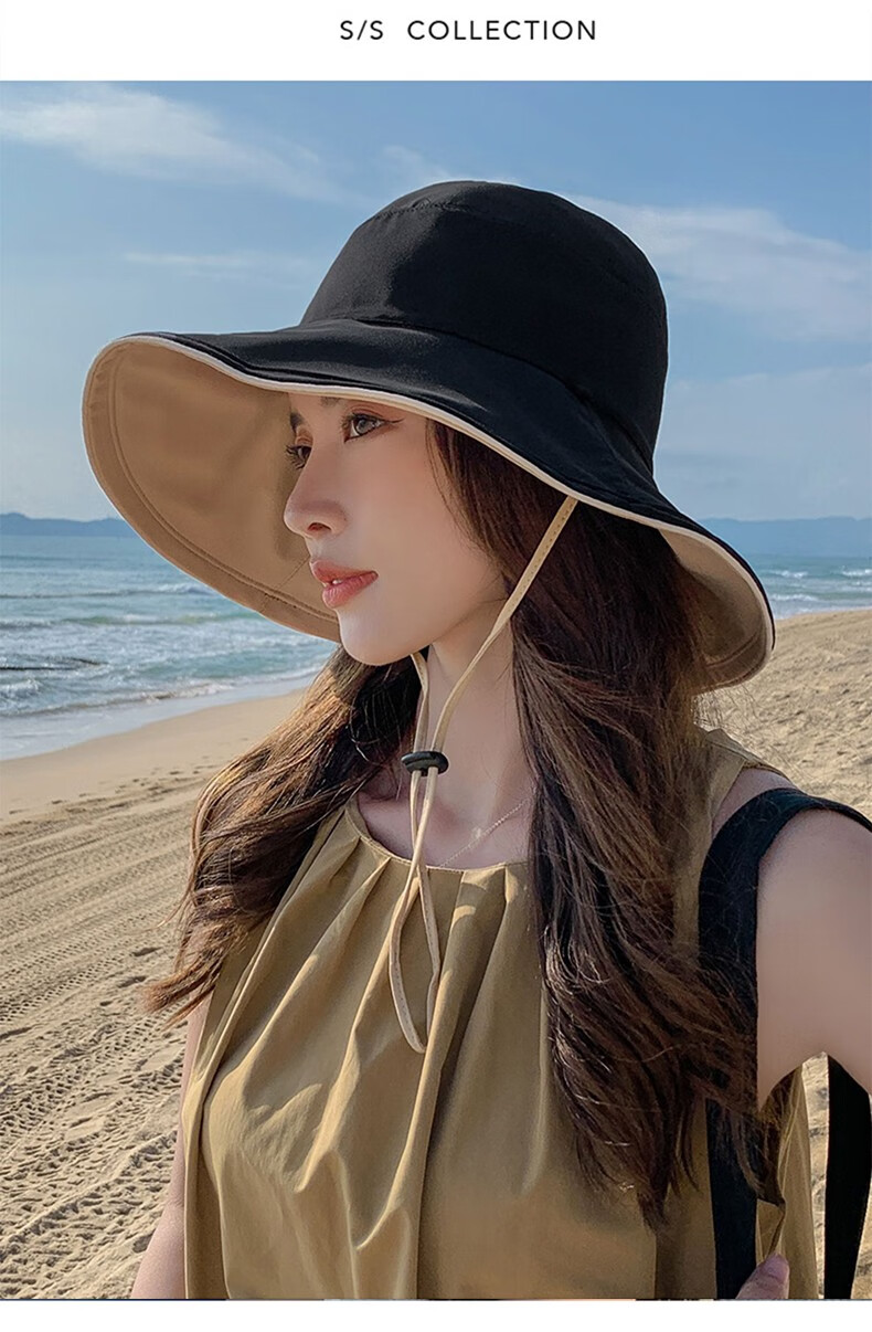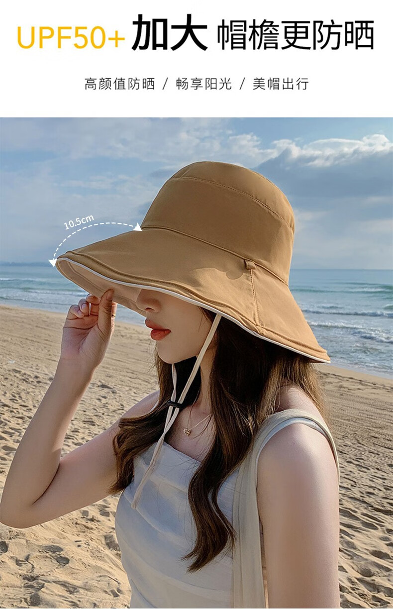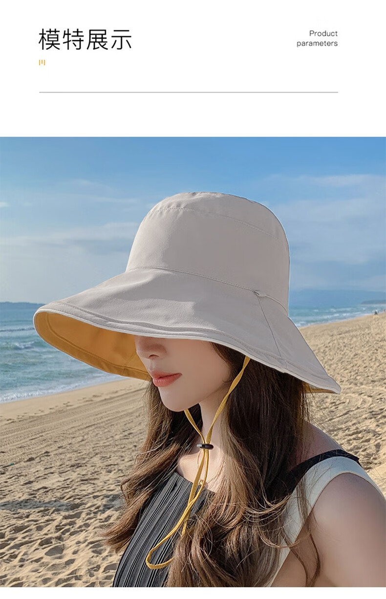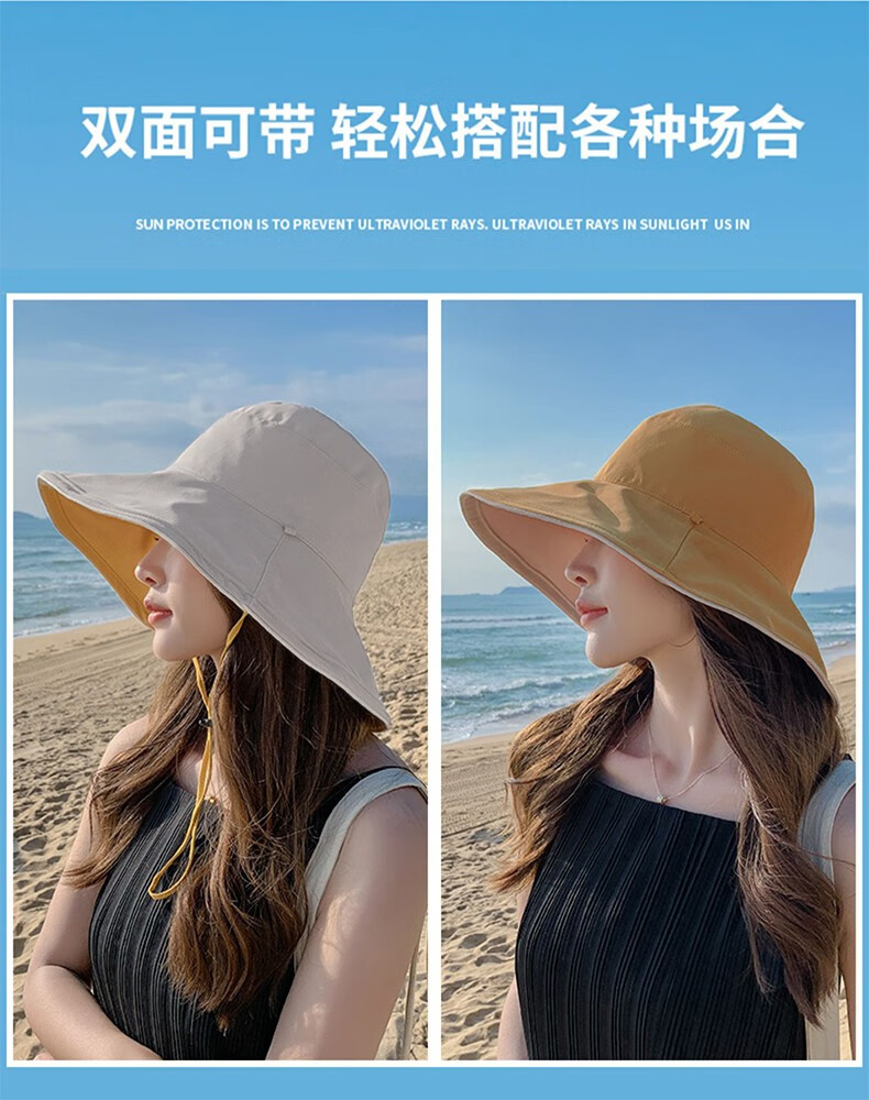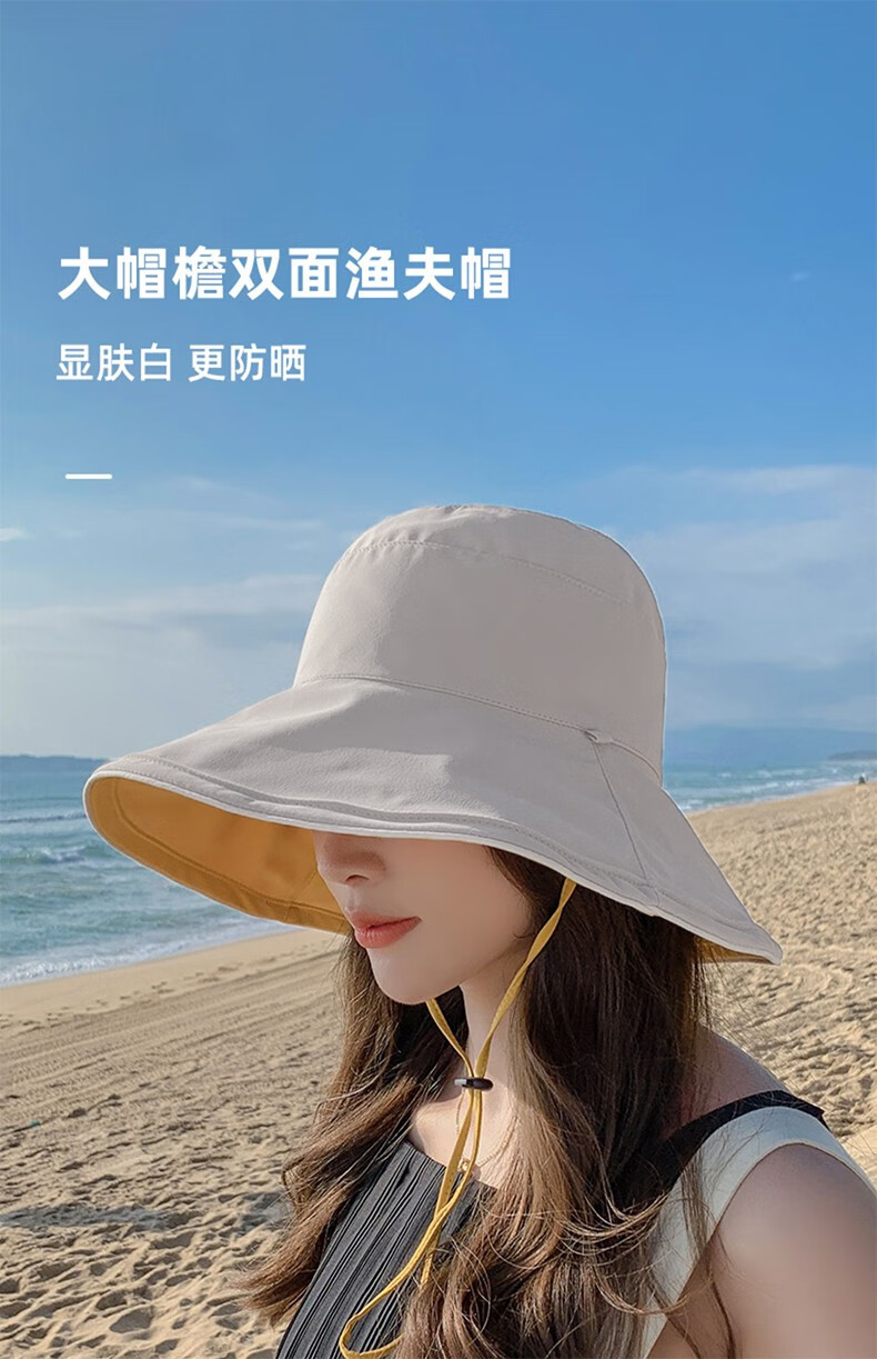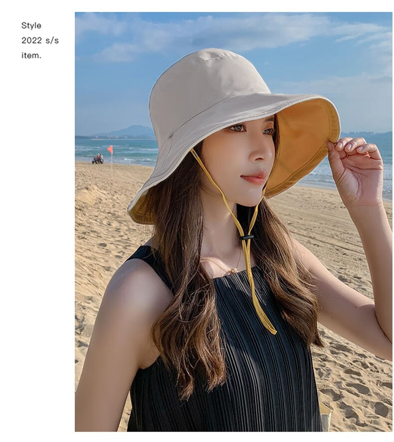 Red Dragonfly (RED DRAGONFLY) Hat Women's Summer Korean Style Sun Protection Sun Hat Seaside Travel Anti-UV Fashion Face Covering Beach Travel Hat Reversible Beige + Yellow