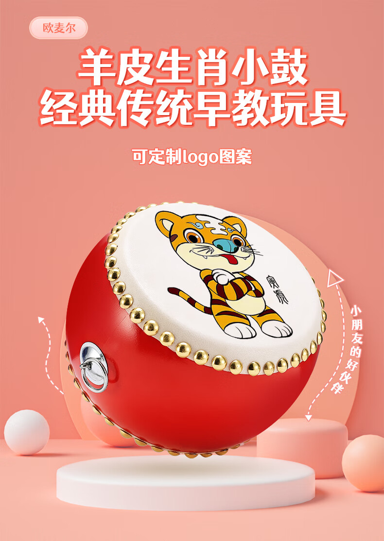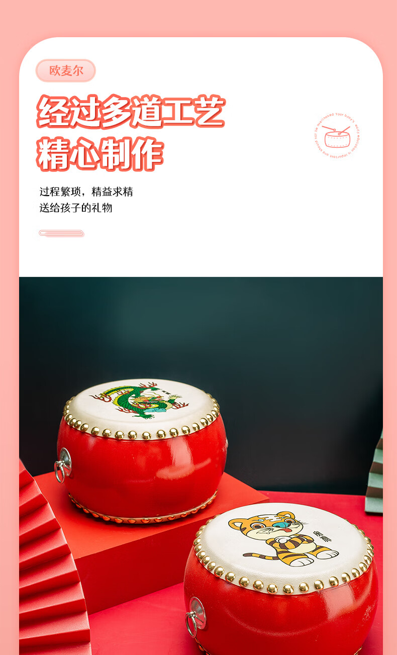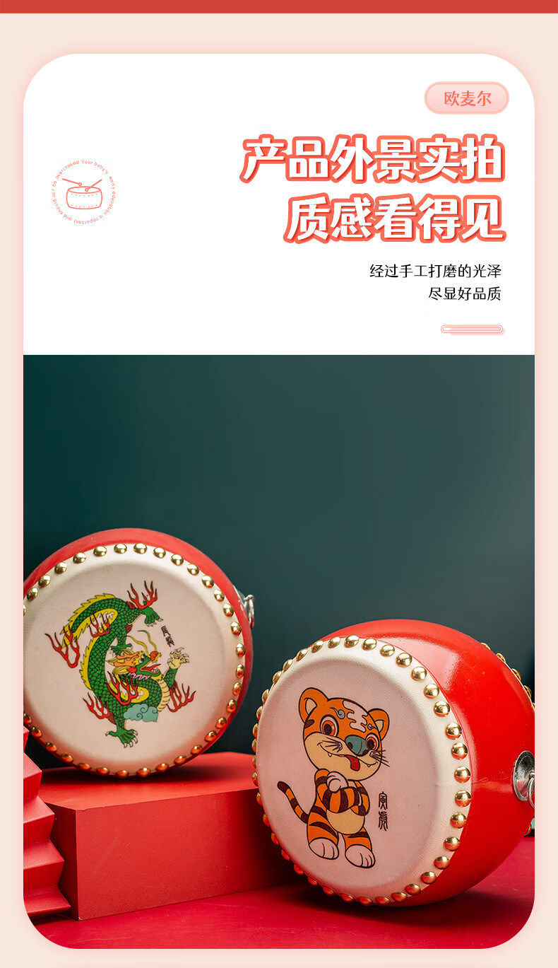 Omer drum children's toy cowhide drum baby zodiac small drum musical instrument kindergarten hand drum child rhythm drumming dragon