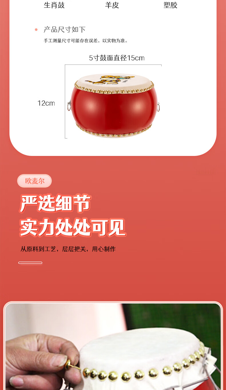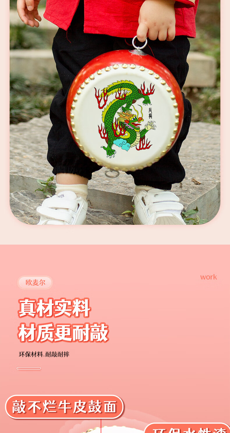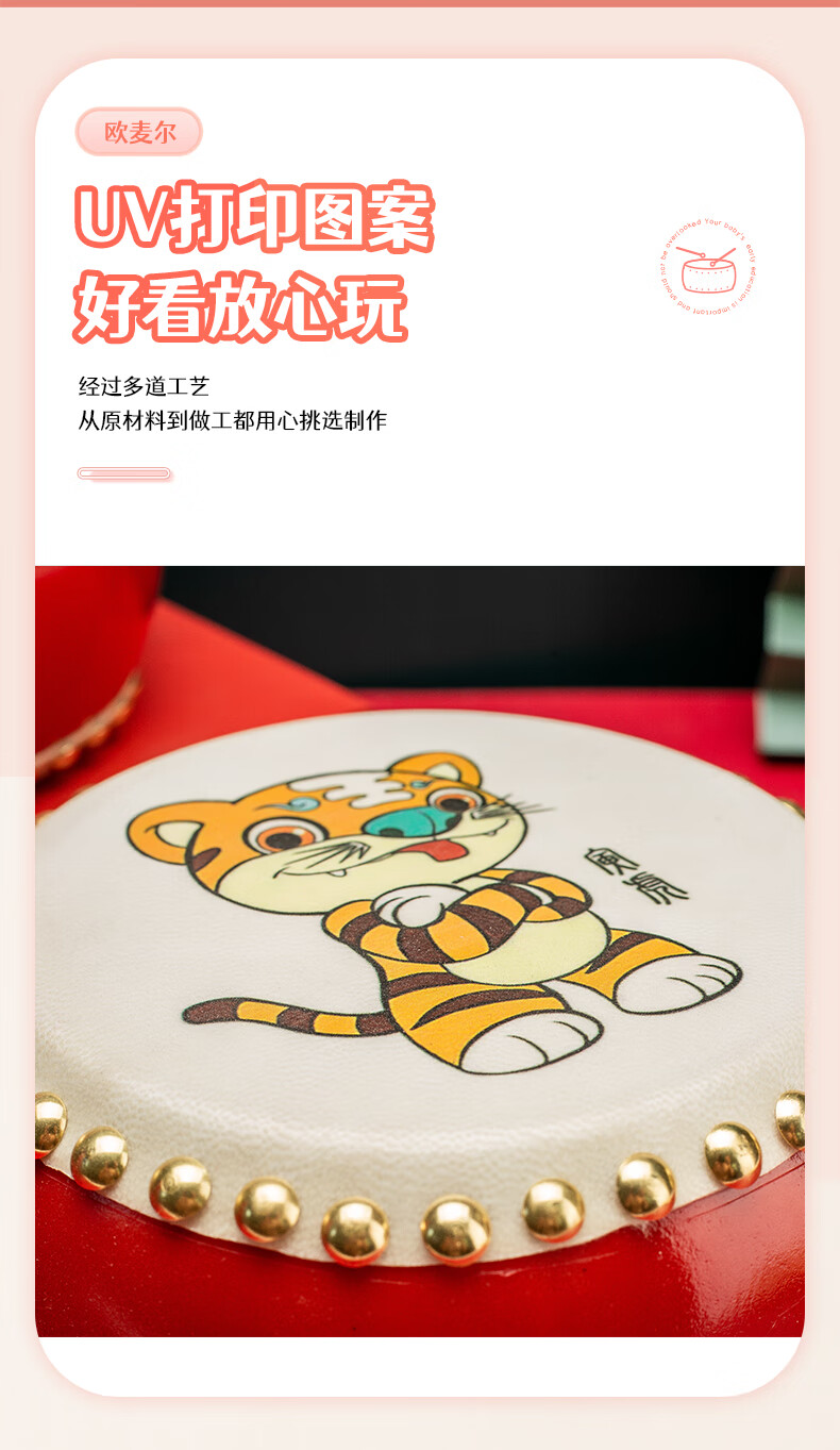 Omer drum children's toy cowhide drum baby zodiac small drum musical instrument kindergarten hand drum child rhythm drumming dragon