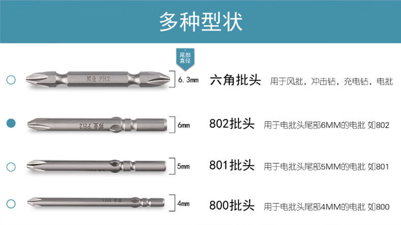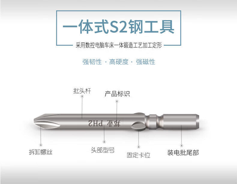 Bangyuan S2 steel electric screwdriver head 802 screwdriver head M6/60-200MM cross rechargeable drill electric bit tip plus hard magnetic 6X80X4X50XPH2 (10 pieces) 802M6 cross-shaped