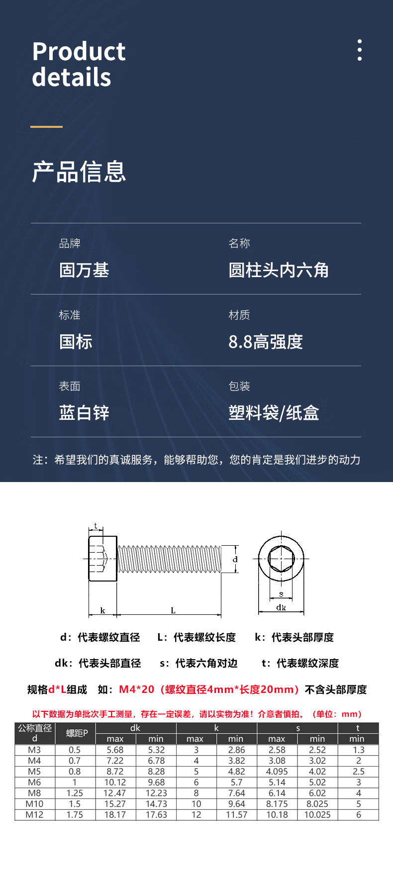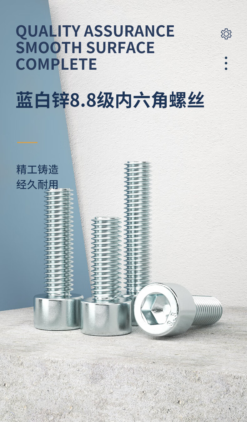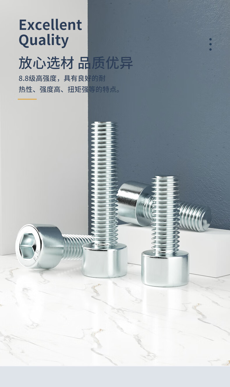 Guwanji (GUWANJI) 8.8 grade galvanized hexagon socket screws high strength cylindrical head bolt set extended cup head screws m4m5M20 M8*20 20 pieces