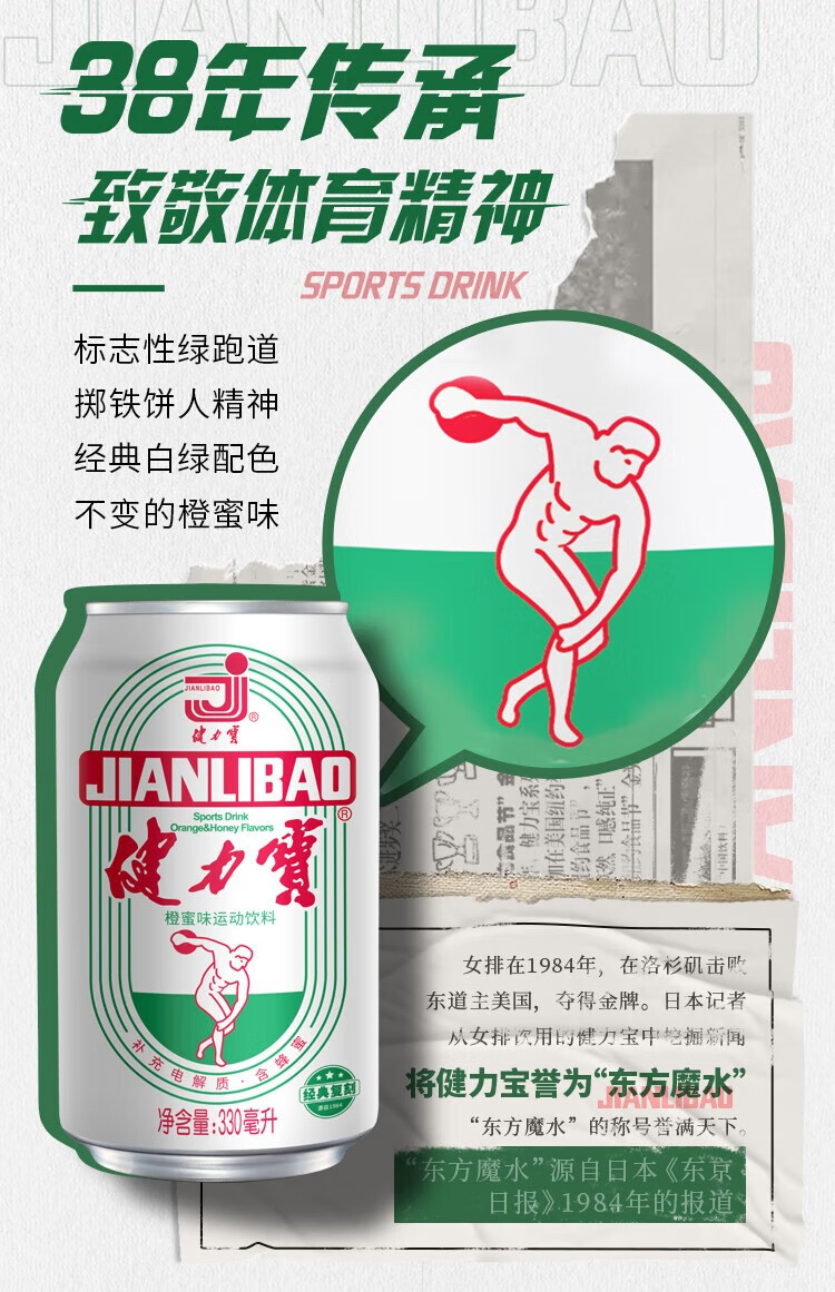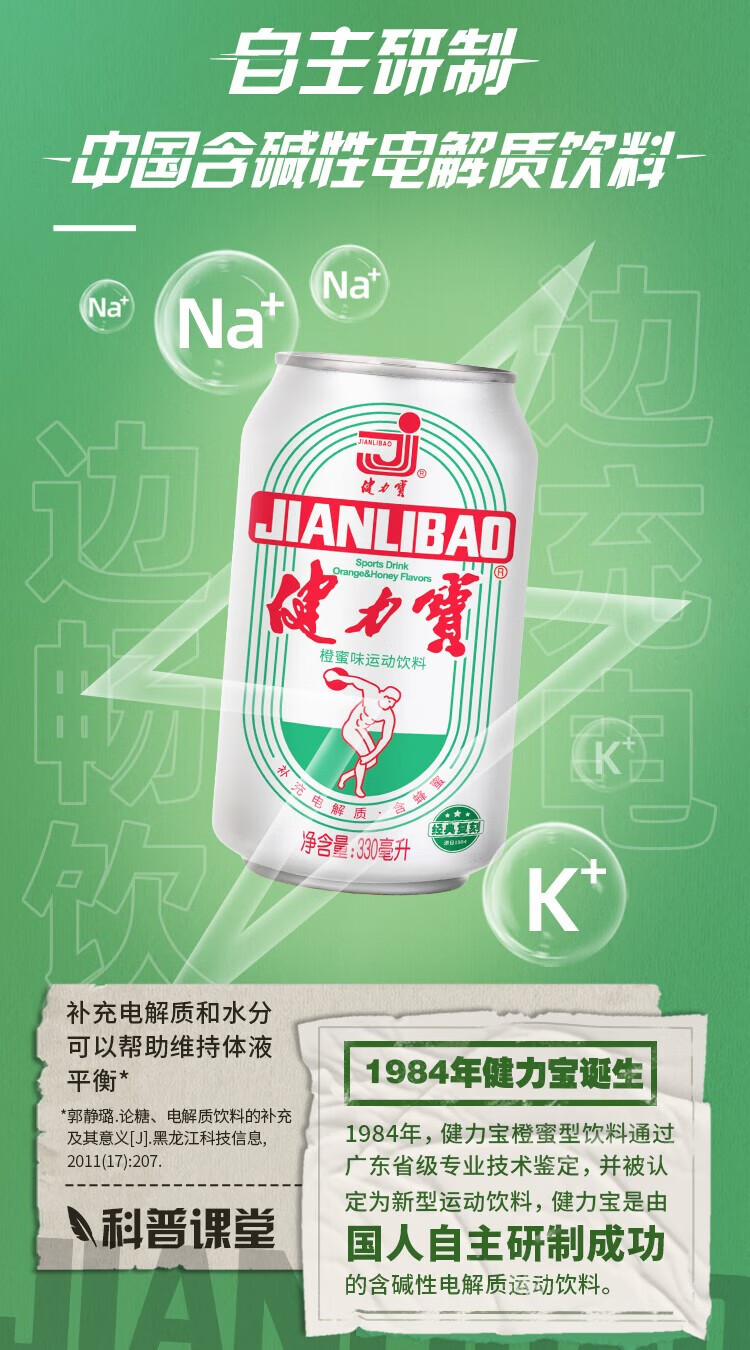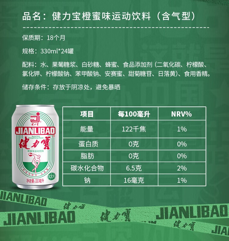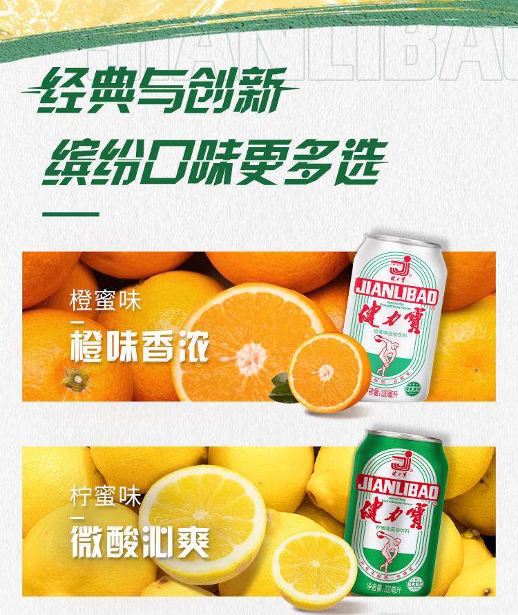 JIANLIBAO orange honey flavor electrolyte sports carbonated honey drink 330ml*24 cans packed in full box foam box delivery mixed flavors 330ml*24 cans