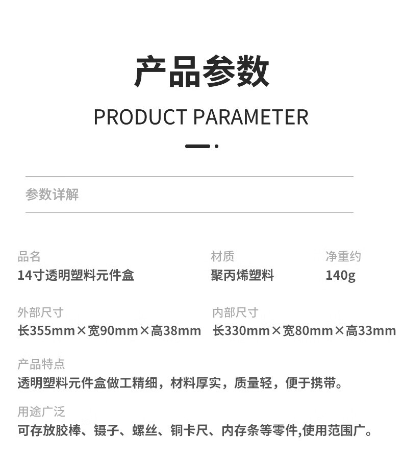 MYTEC 14-inch long transparent parts box, component box, extended tool box, PP transparent box, tool storage box