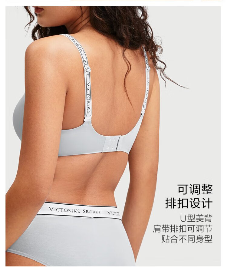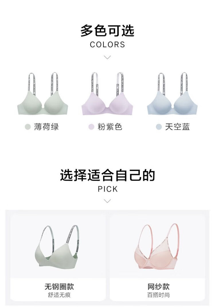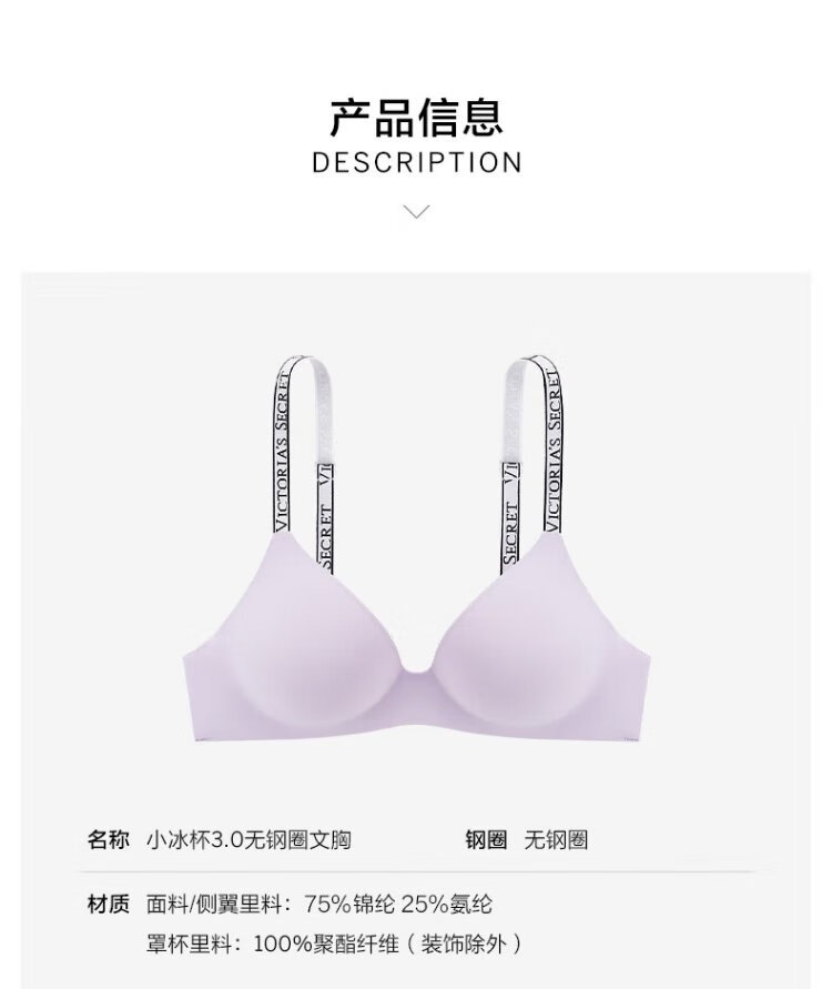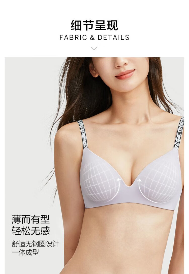 Victoria's Secret has been removed from the shelves. The font has not been changed. Soft and breathable logo letter shoulder straps without wires for women's bra and underwear 08P7 pink and purple 11227504 34B