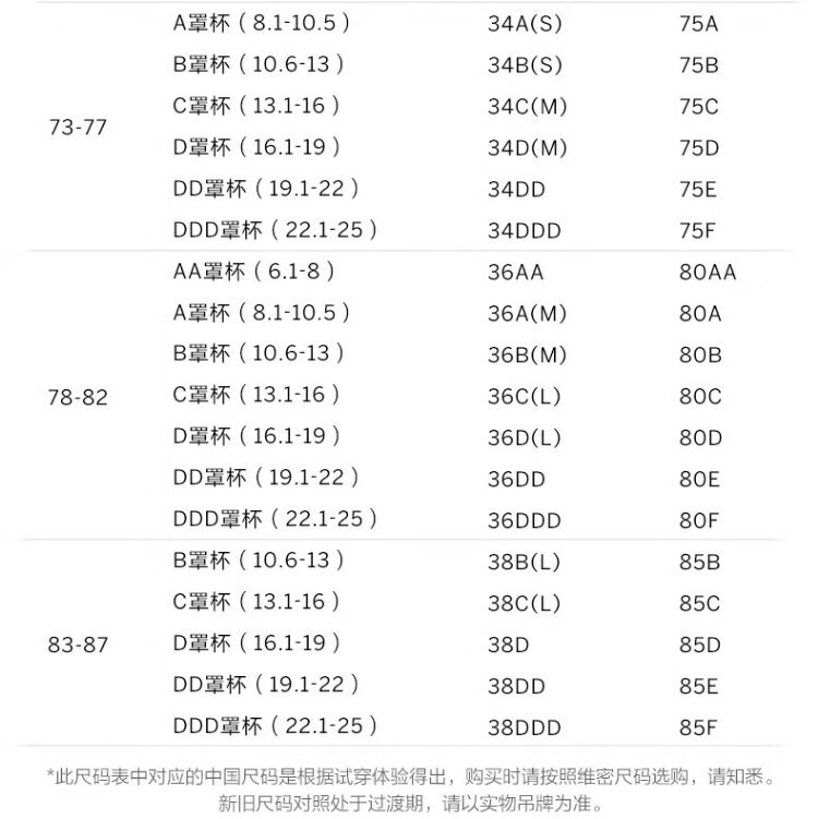 China (cm) 160-165/84-86 165-170 / 88-90 167-172 / 92-96 168-173 / 98-102 170-176 / 106-110