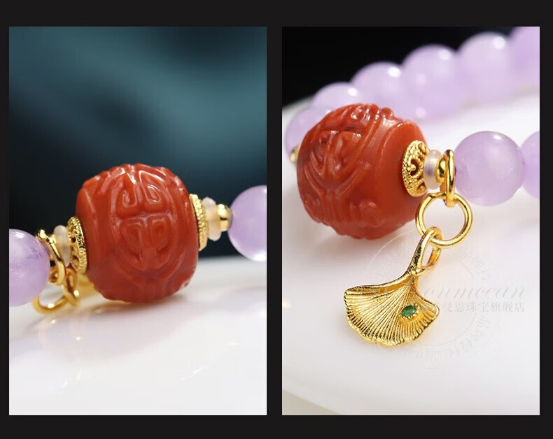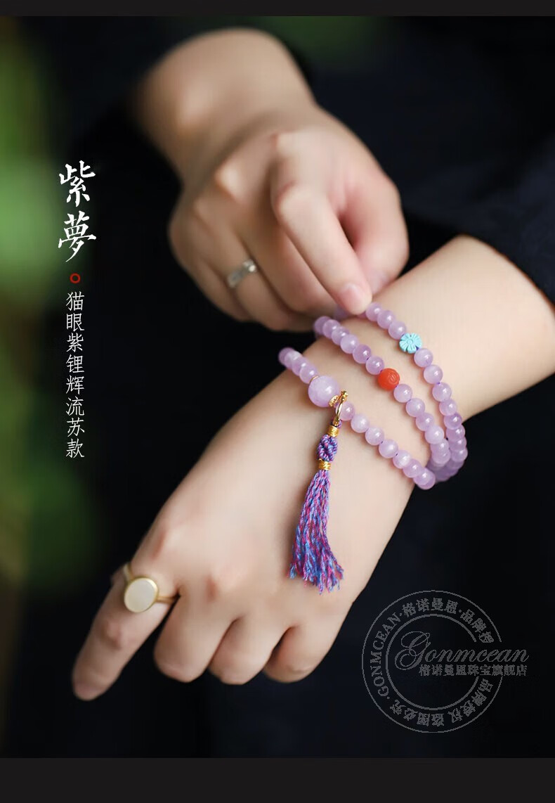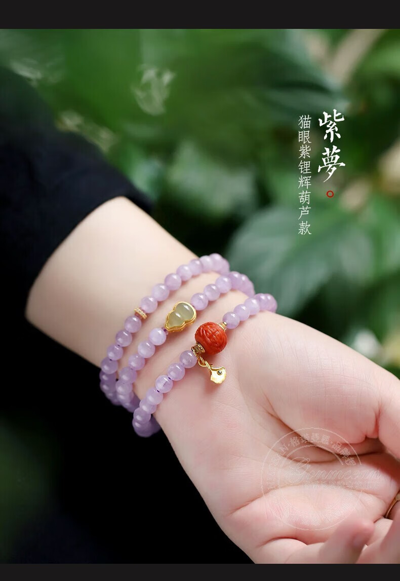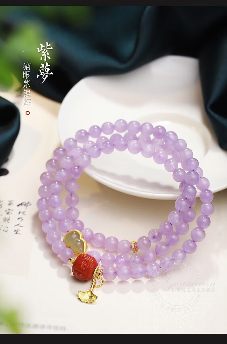 GONMCEAN Purple Dream Kunzite Bracelet Women's 108 Cat's Eye Lavender Crystal Bracelet Purple Birthday Cat's Eye Kunzite Gourd Style 6mm