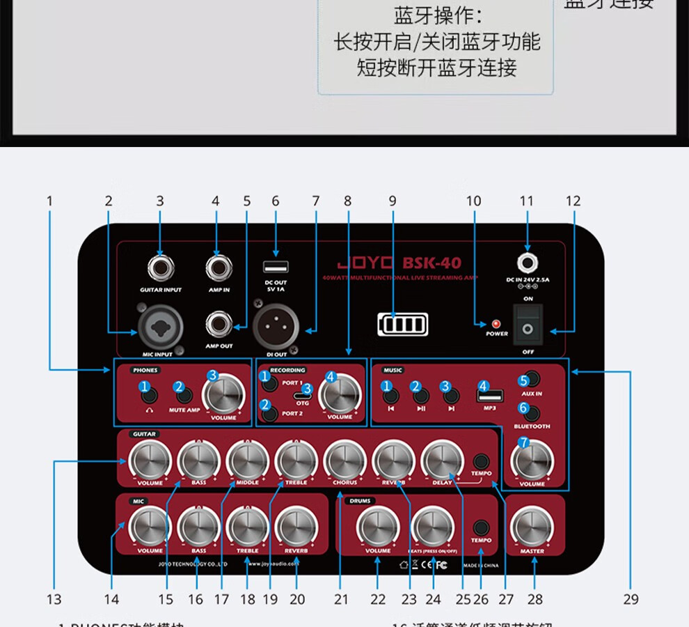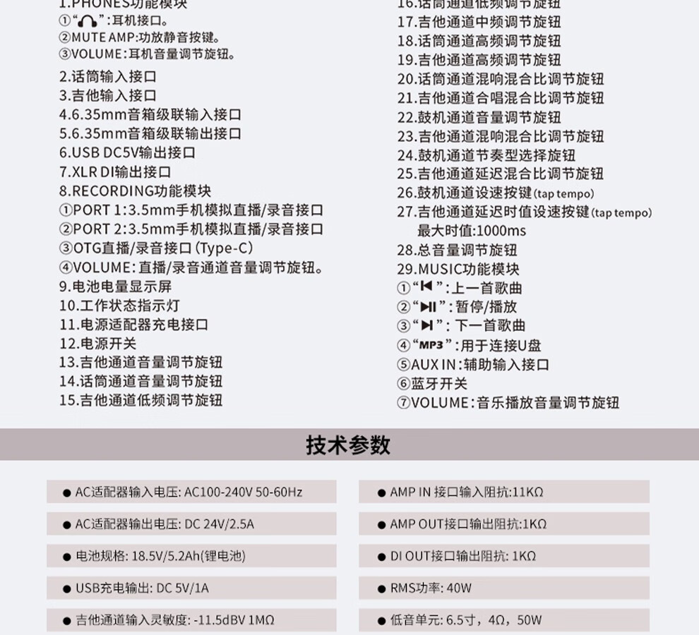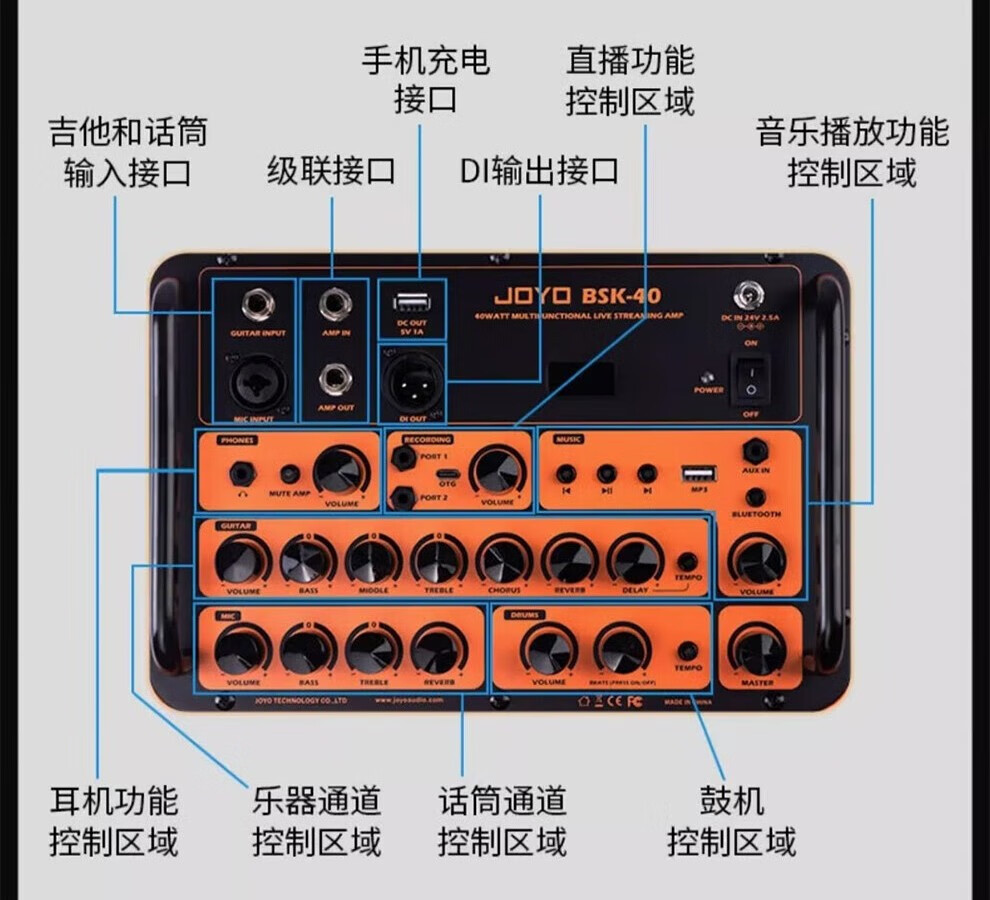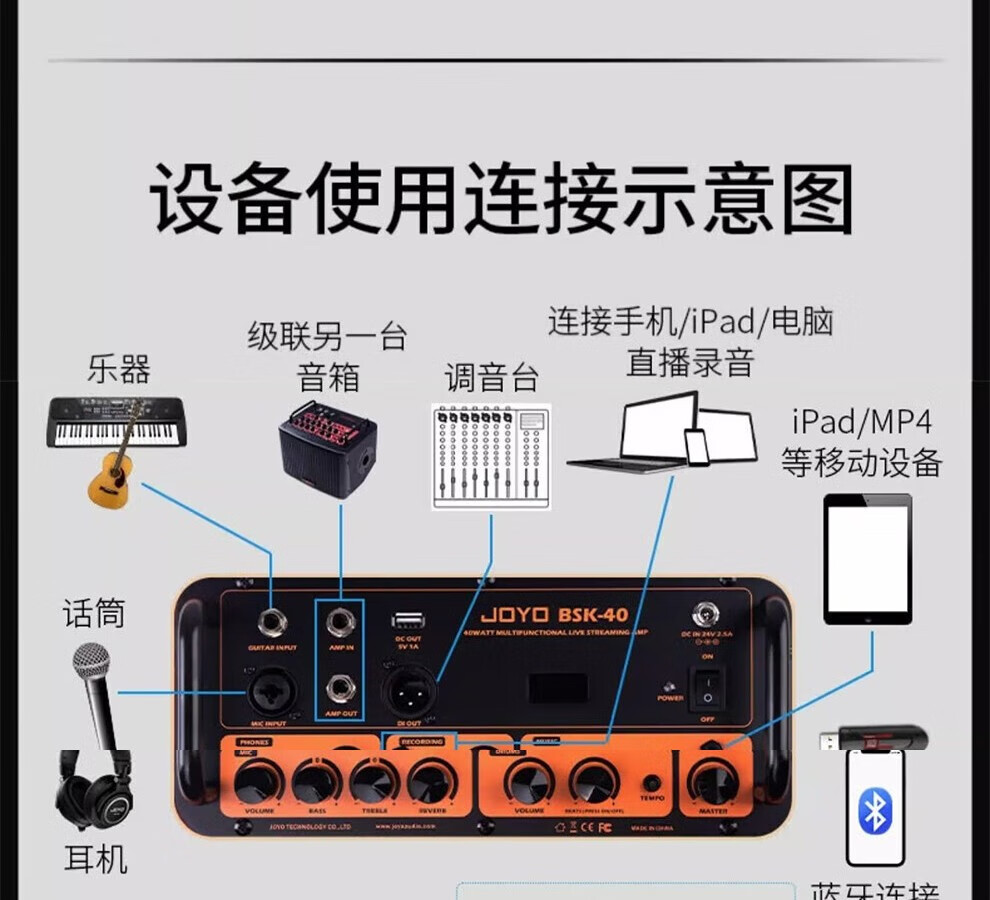 JOYO guitar speaker, electric blowpipe audio, folk rechargeable Bluetooth drum machine, live recording, outdoor singing, new BSK-40 beige