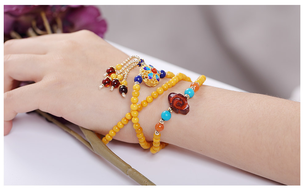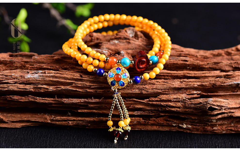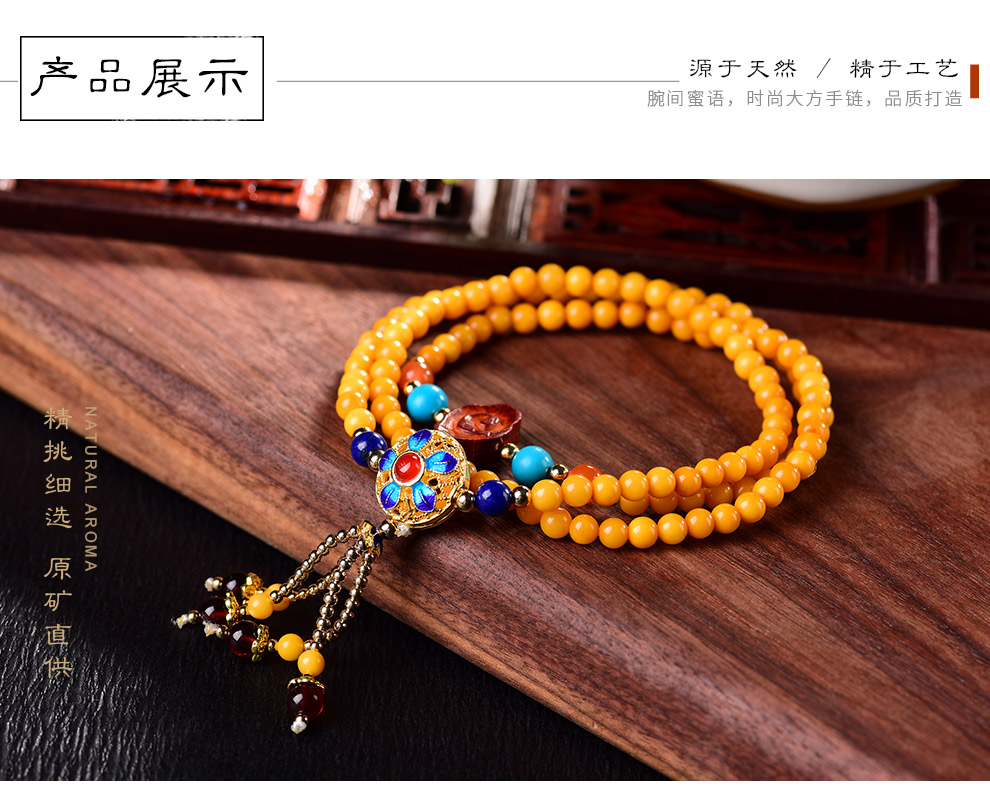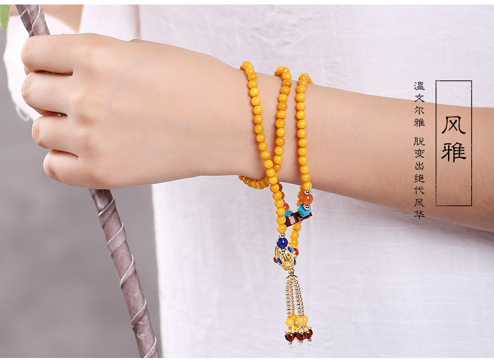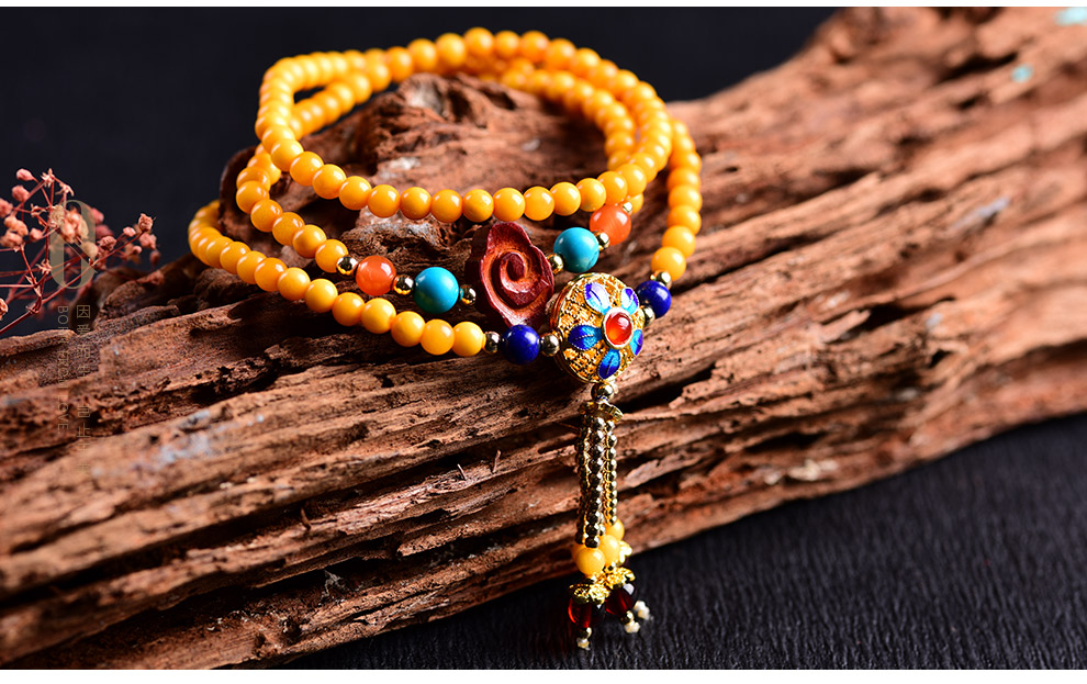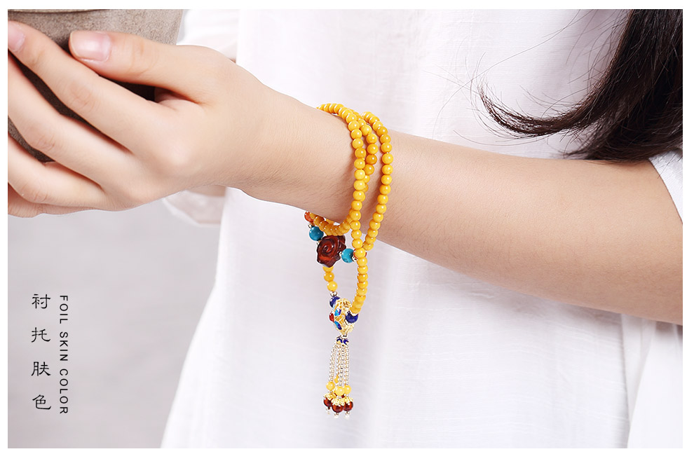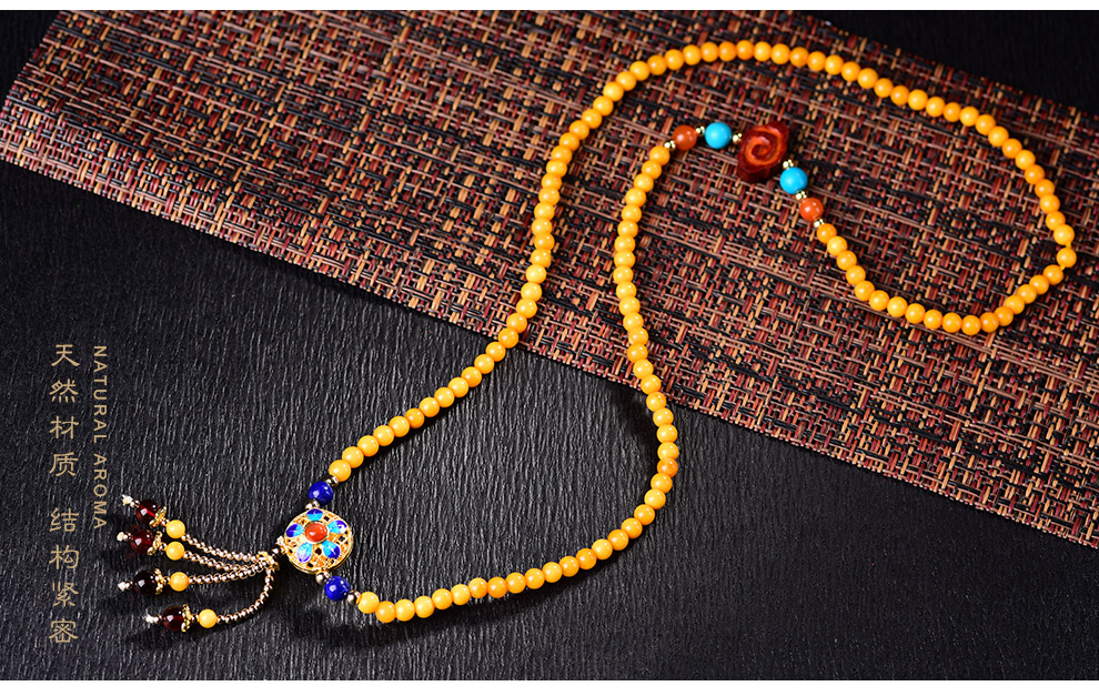Ouchini Beeswax Bracelet Sweater Chain Cloisonné Enamel Palace Craftsmanship Chicken Oil Yellow Old Wax 108 Pieces