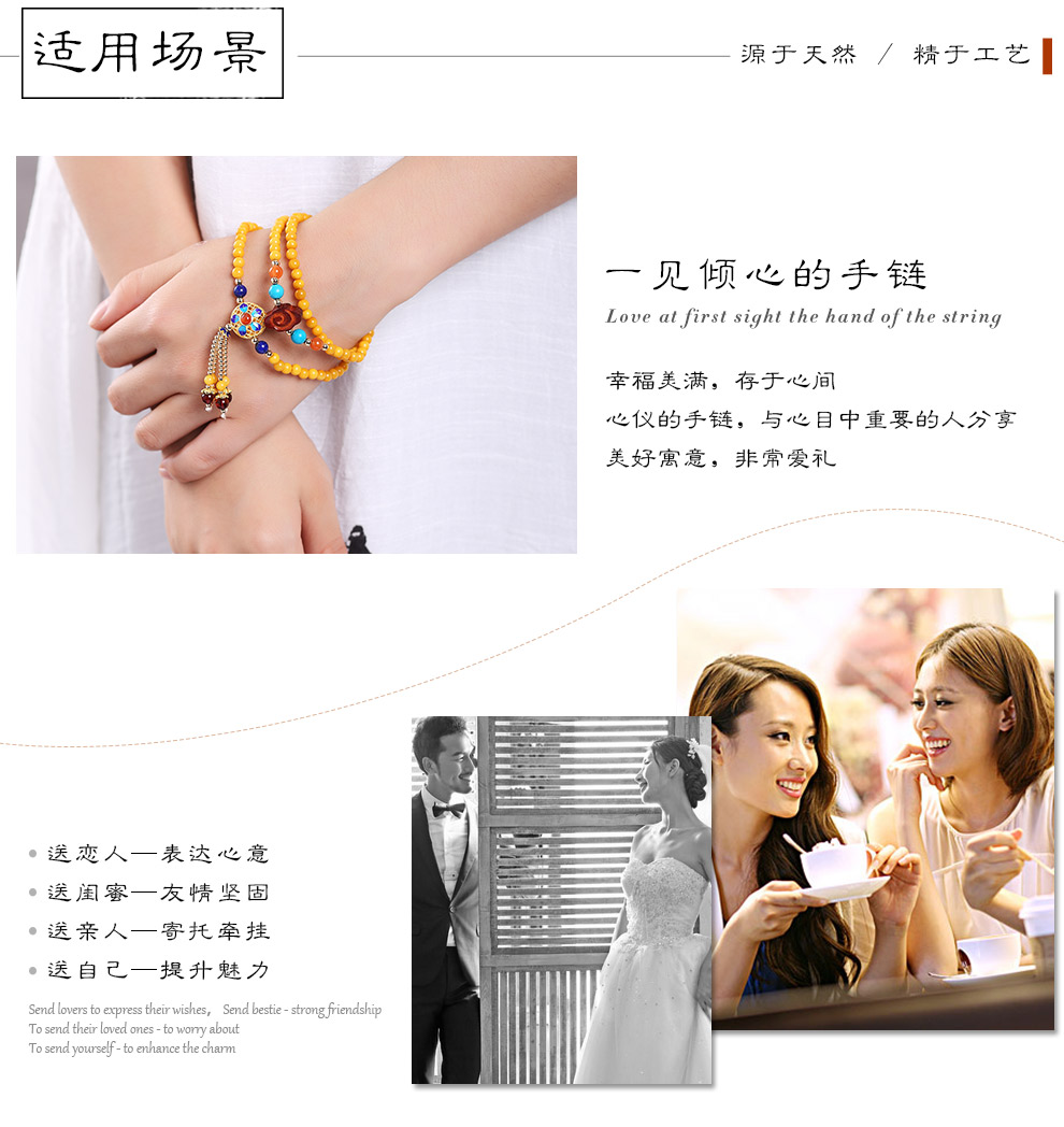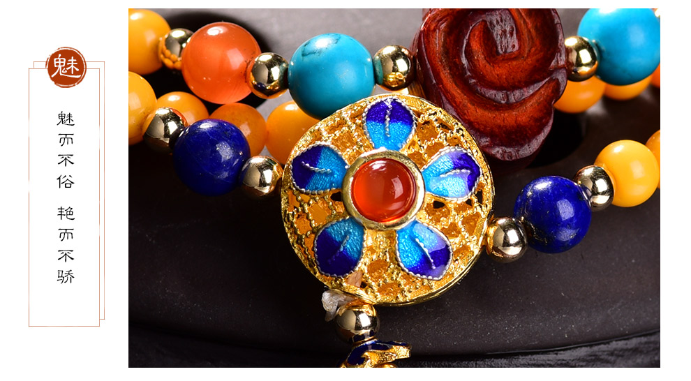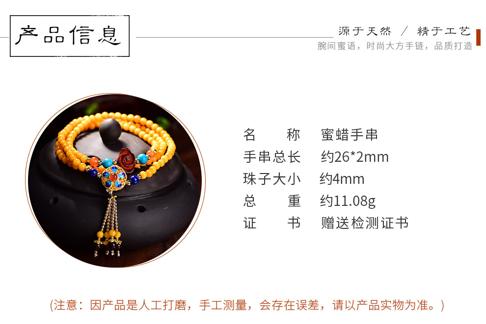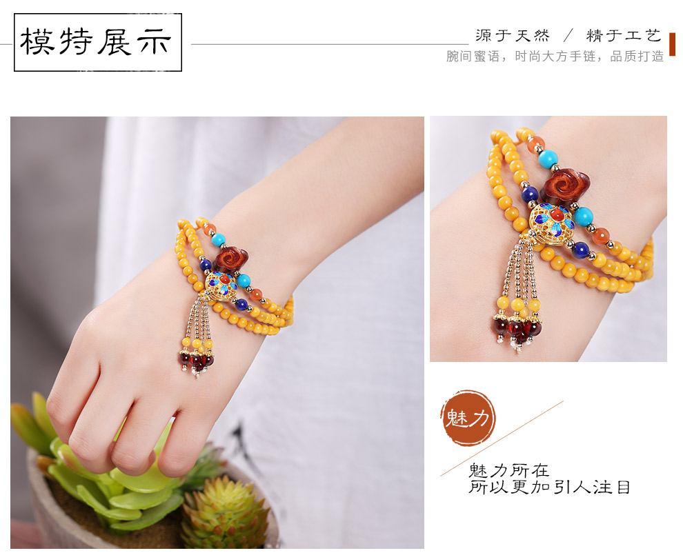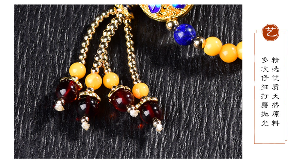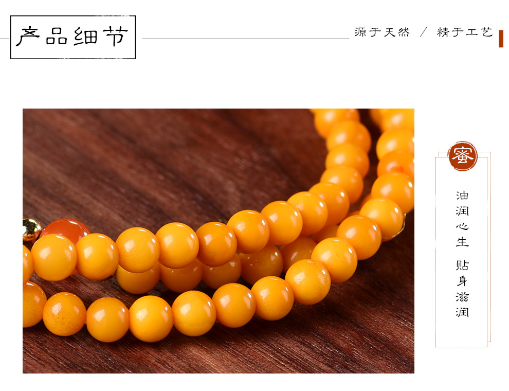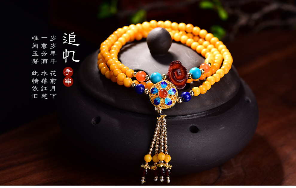 Ouchini Beeswax Bracelet Sweater Chain Cloisonné Enamel Palace Craftsmanship Chicken Oil Yellow Old Wax 108 Pieces