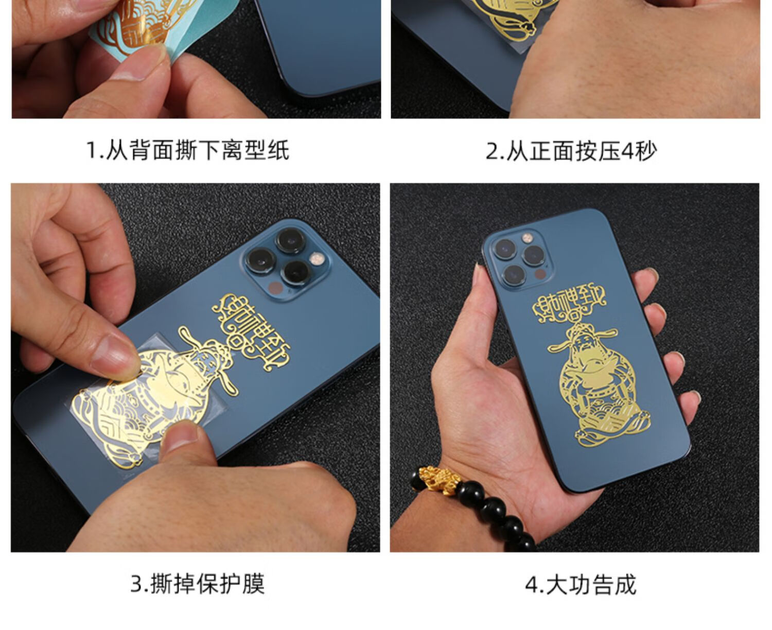 Musong mobile phone stickers, personality, fortune and luck, metal film, computer network buzzwords, mobile phone case decoration stickers, 92 physical cat (gold)