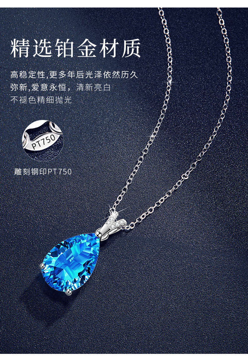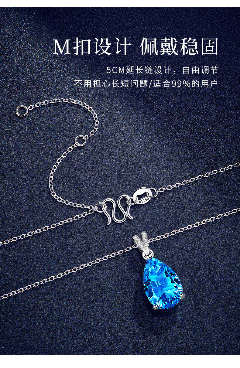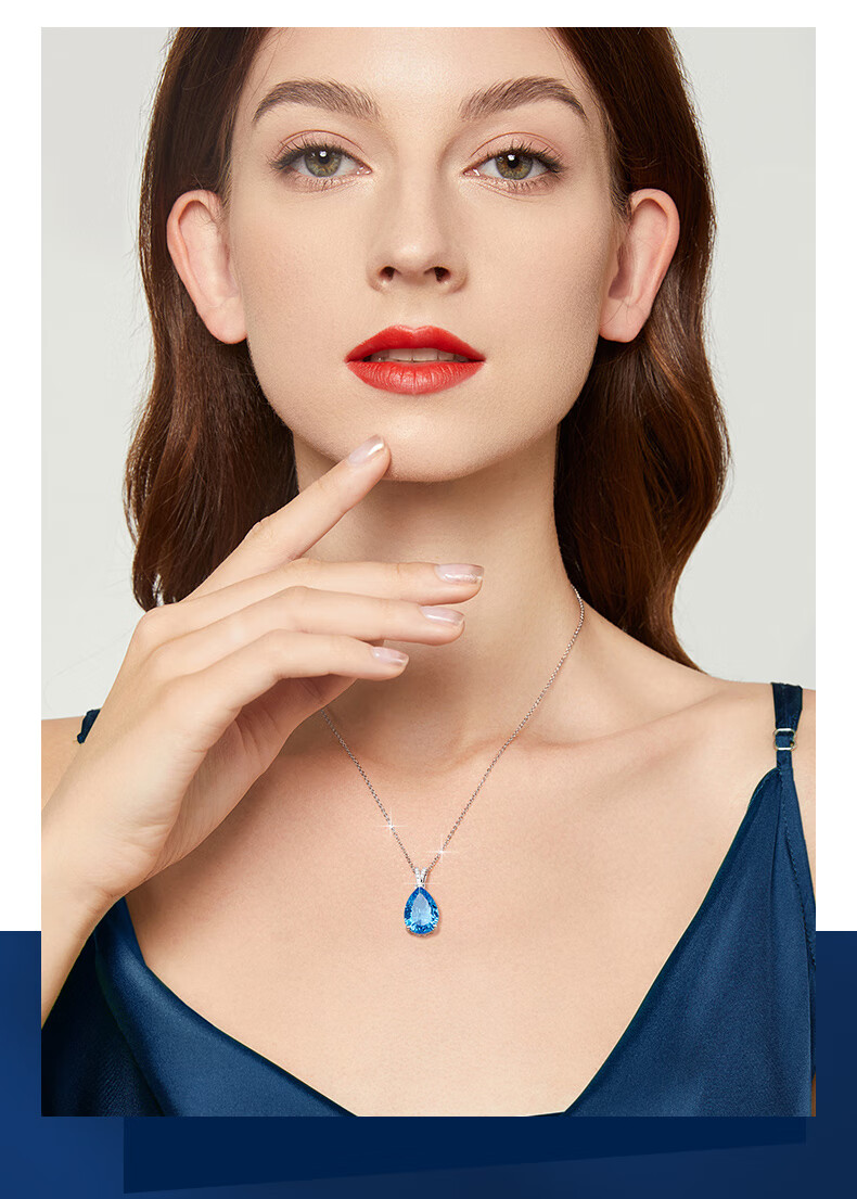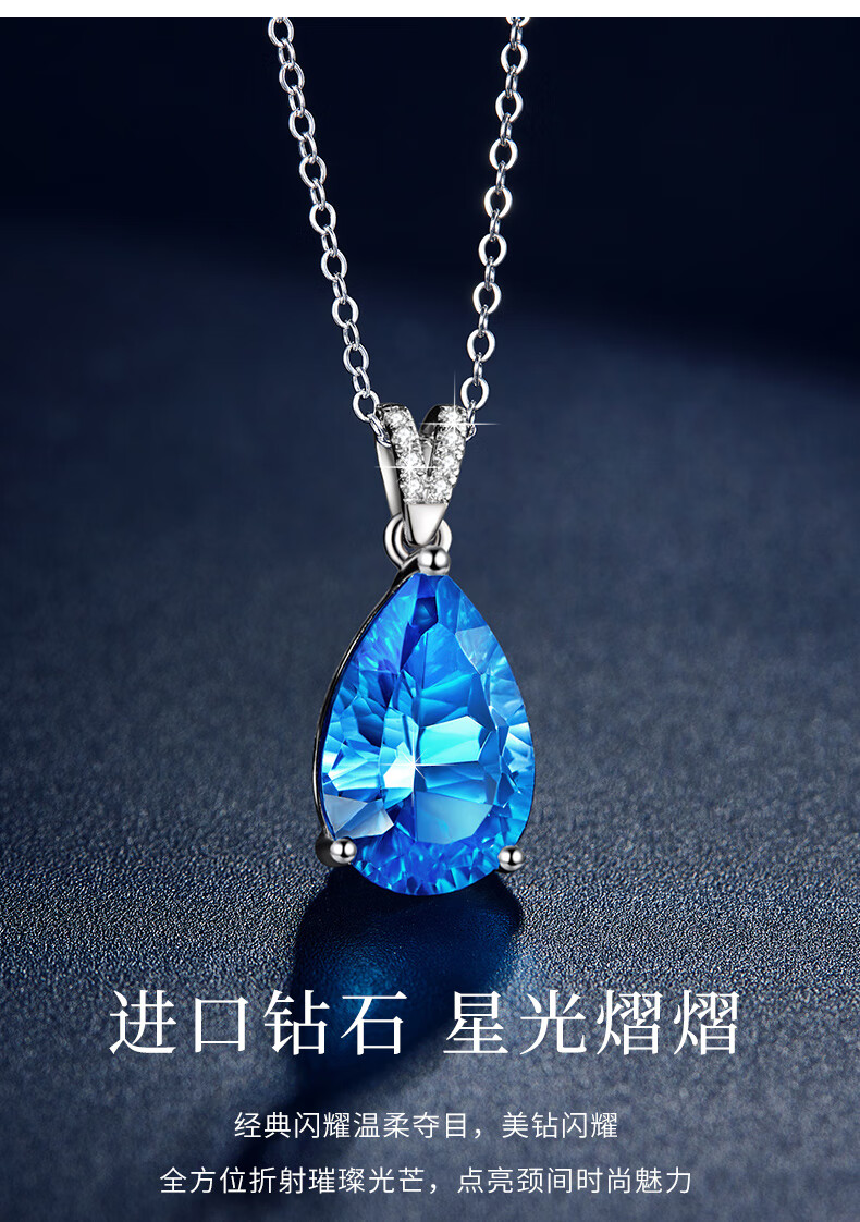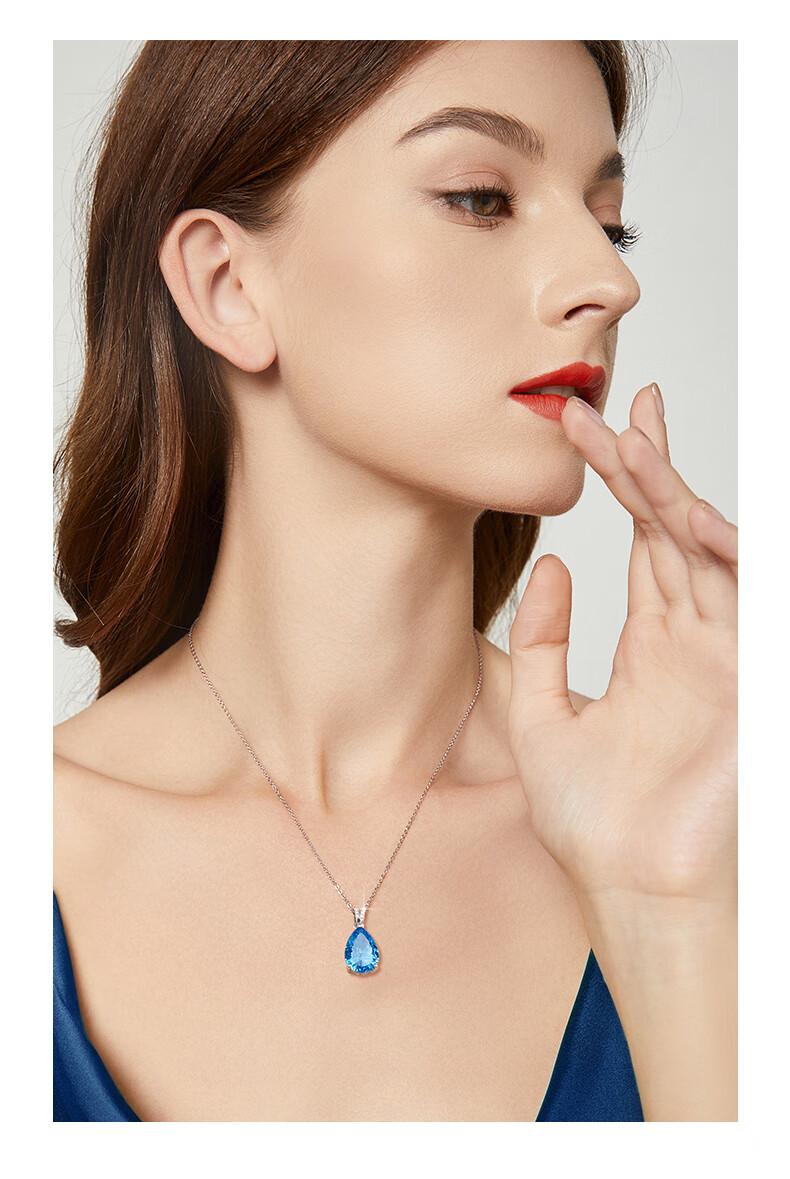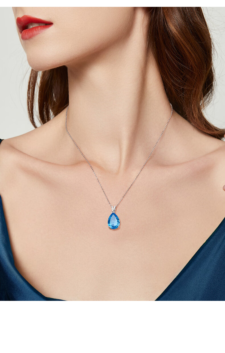 Lirokini necklace for women topaz water drop blue gemstone pendant high-end luxury jewelry birthday gift for women topaz water drop pendant