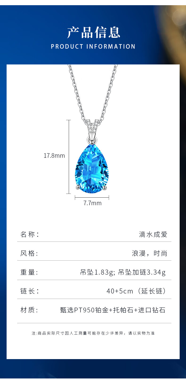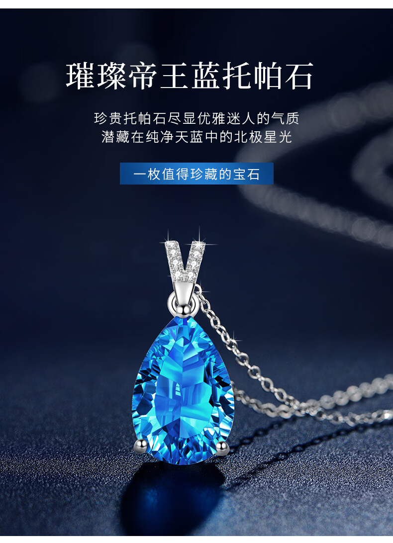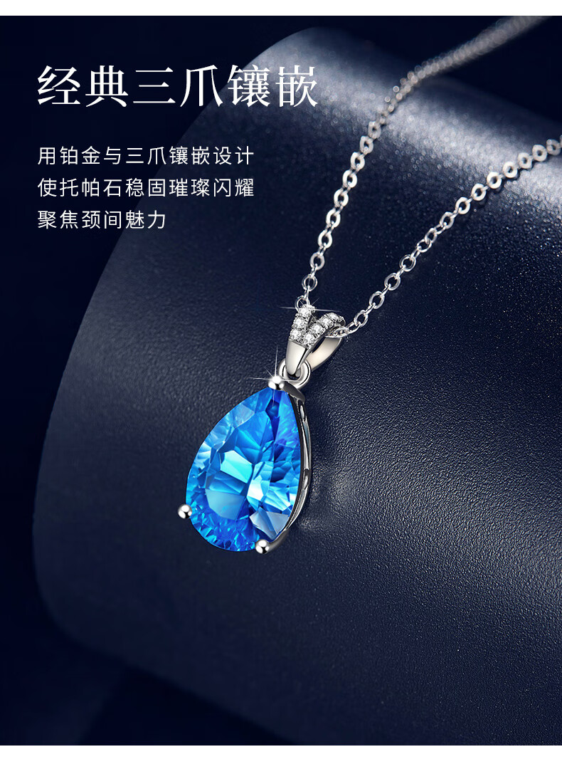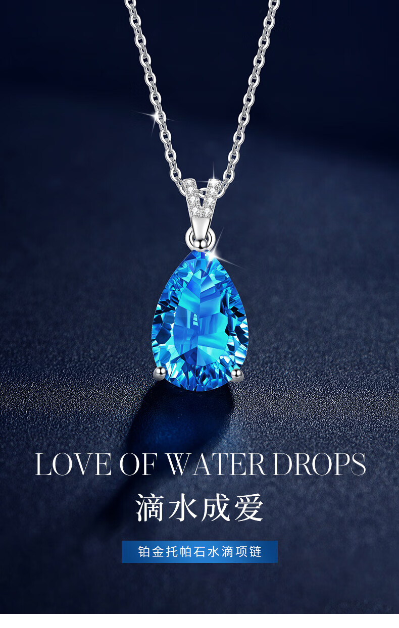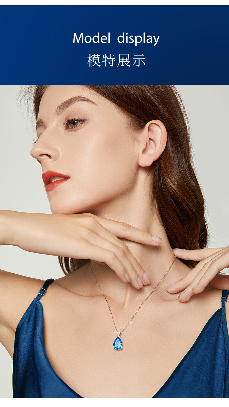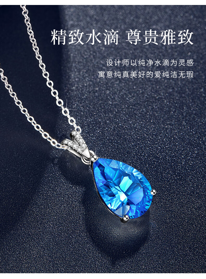 Lirokini necklace for women topaz water drop blue gemstone pendant high-end luxury jewelry birthday gift for women topaz water drop pendant
