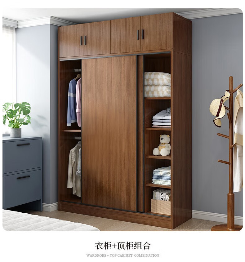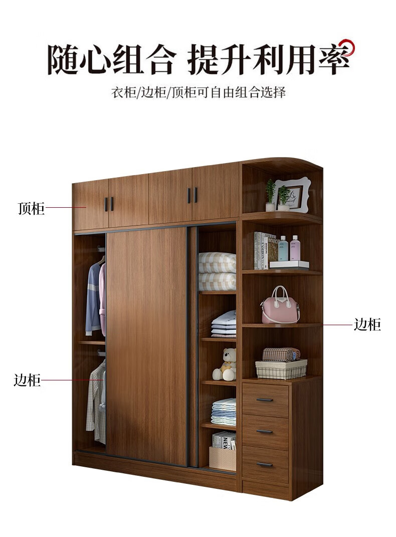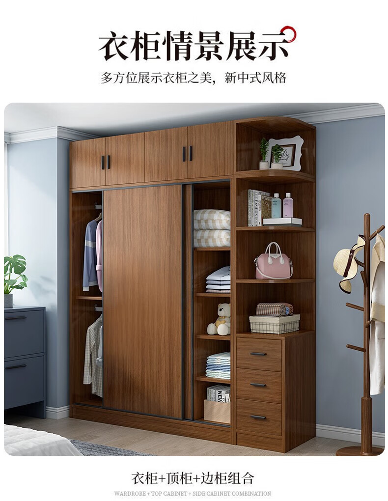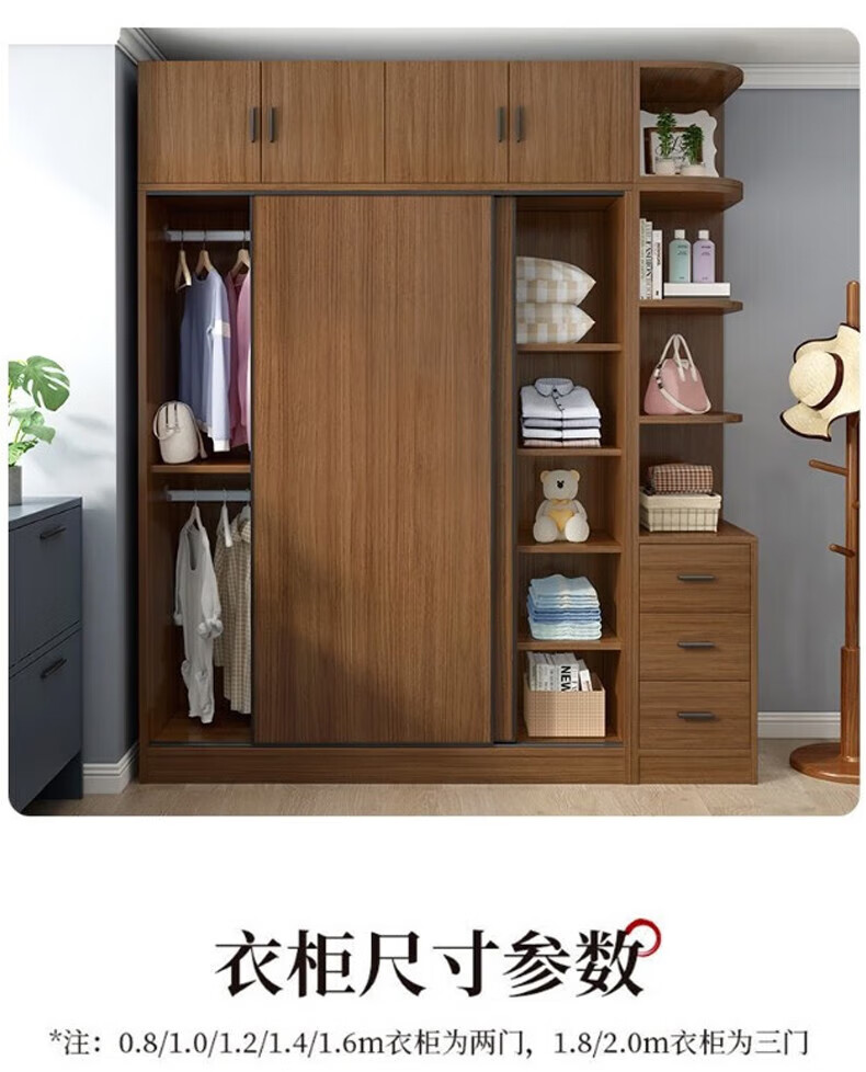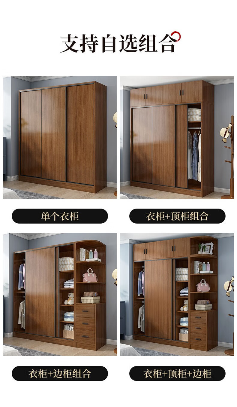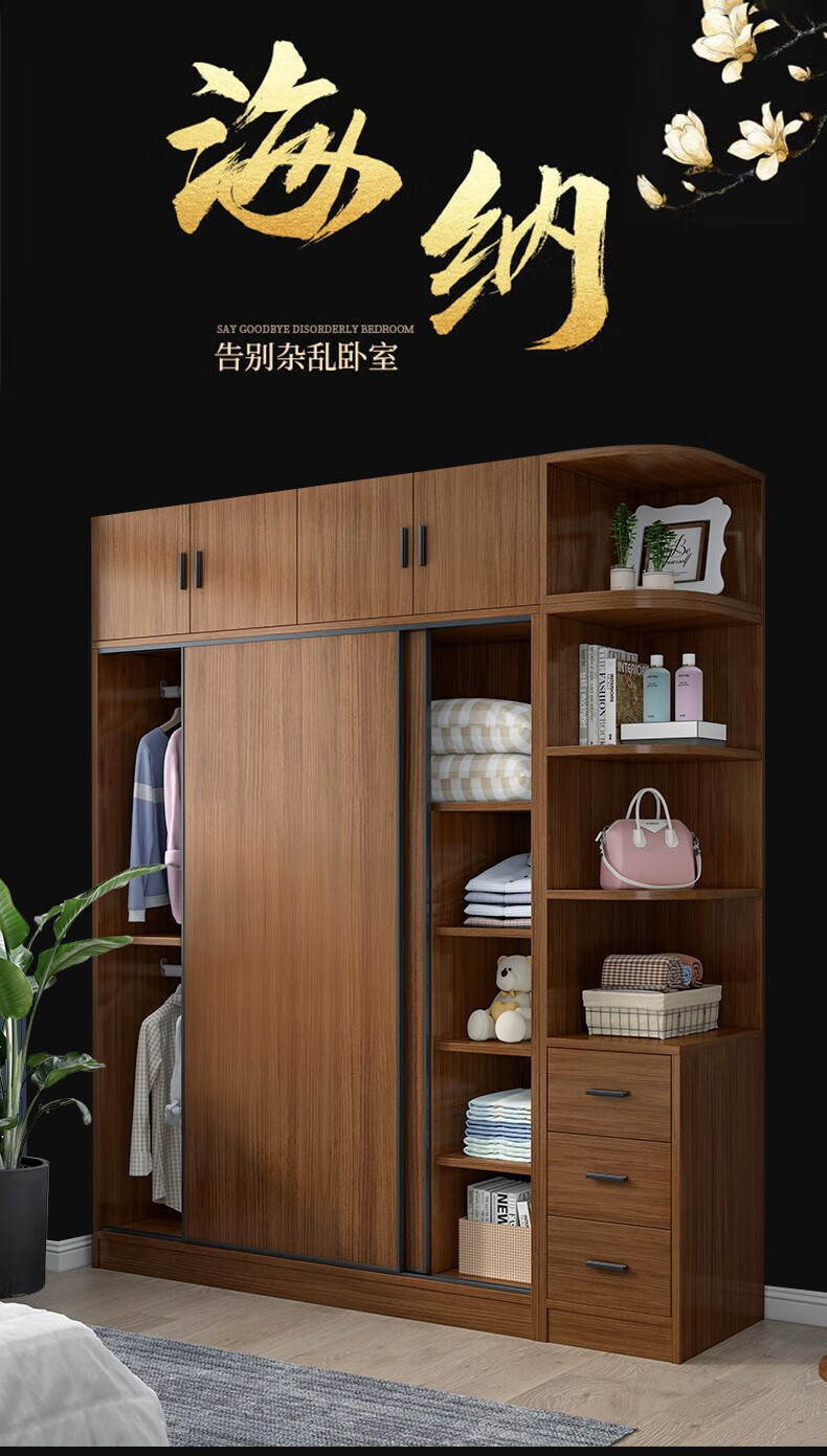 Baili Weiyi new Chinese style wardrobe home bedroom wooden combination wardrobe simple sliding door storage large wardrobe 1.8 meters main cabinet