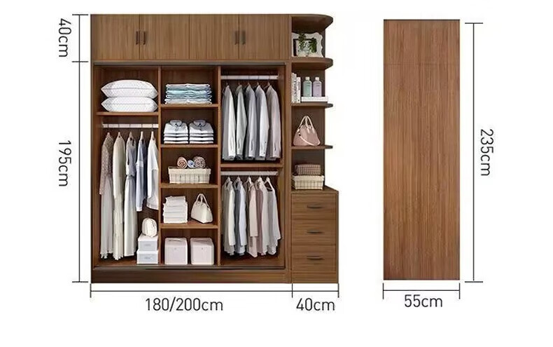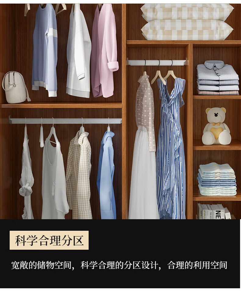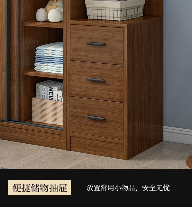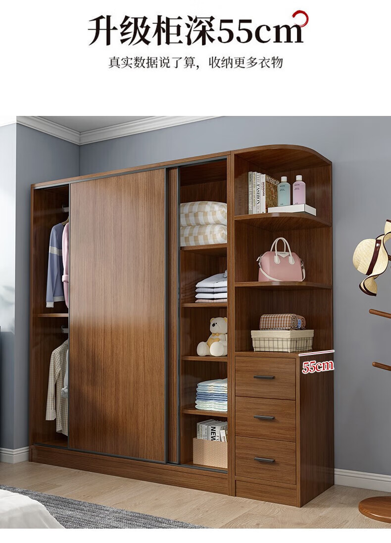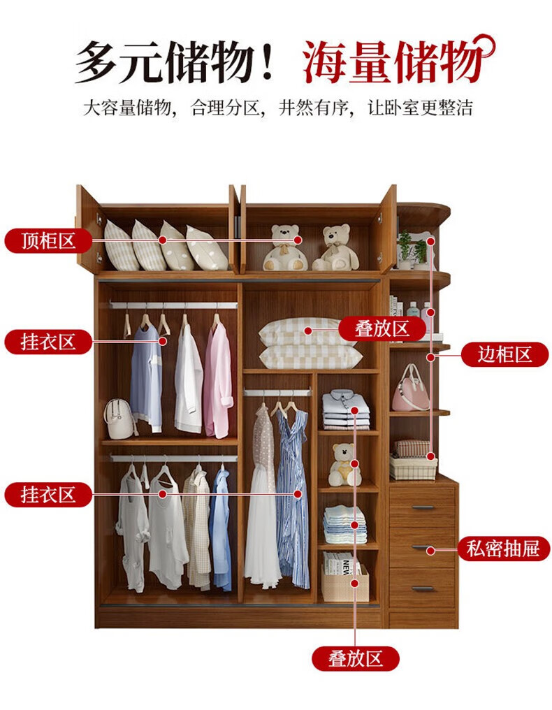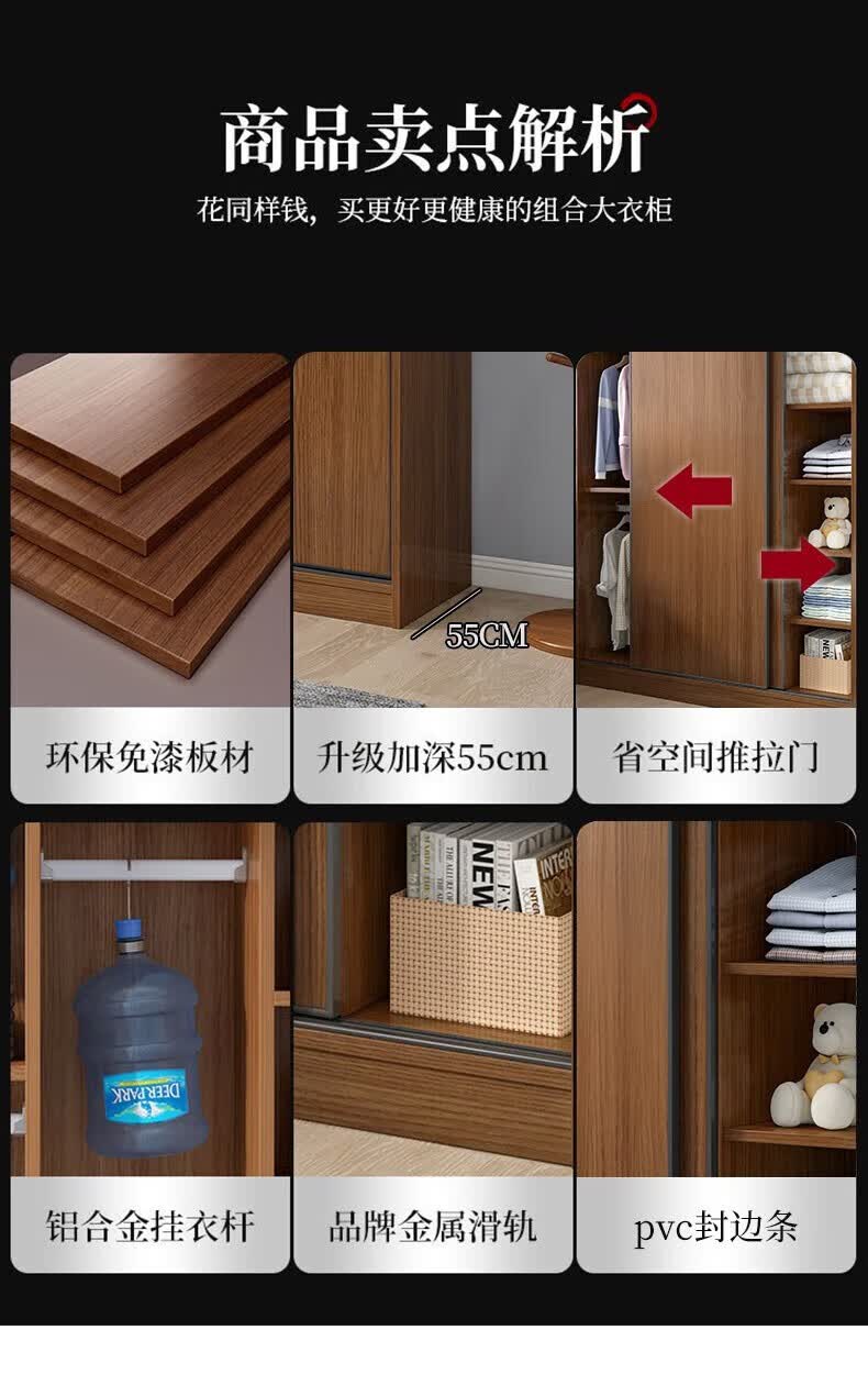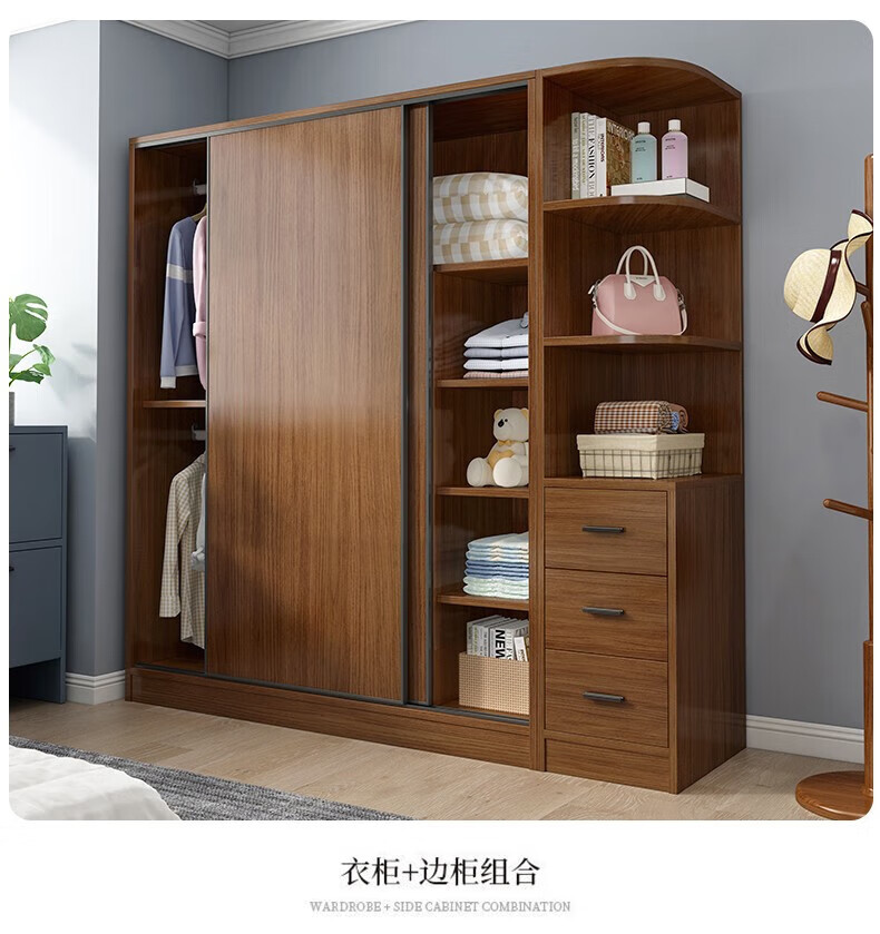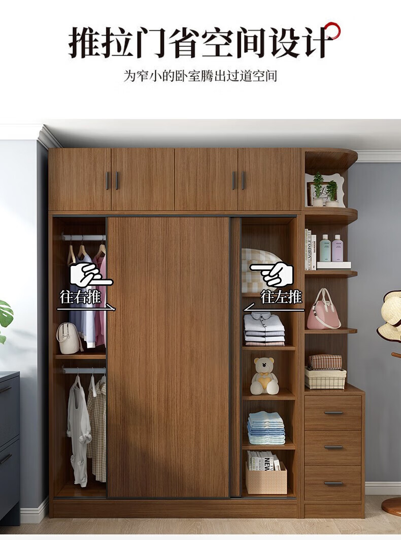 Baili Weiyi new Chinese style wardrobe home bedroom wooden combination wardrobe simple sliding door storage large wardrobe 1.8 meters main cabinet