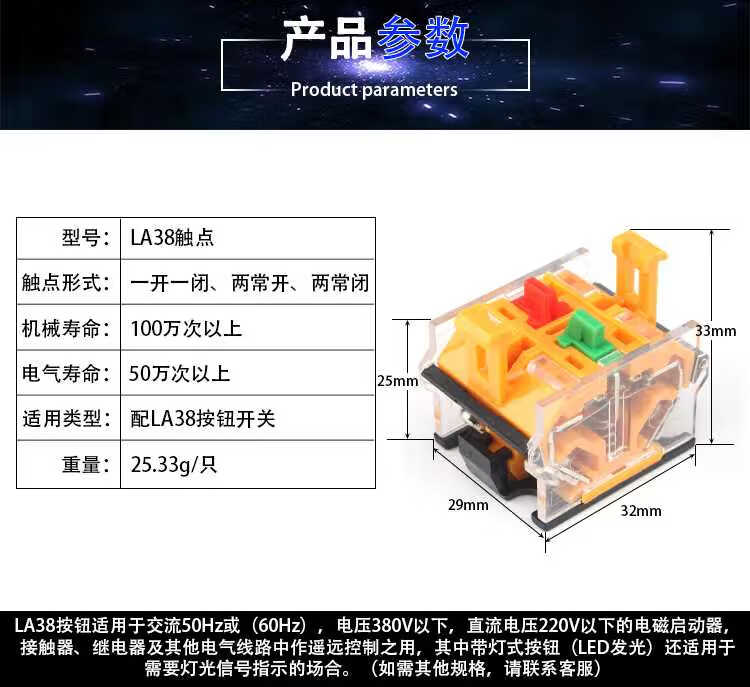 LA38203 209B push button switch LA38 contact 1 open 1 closed 1a1b two normally open lower base two normally closed base one open one closed