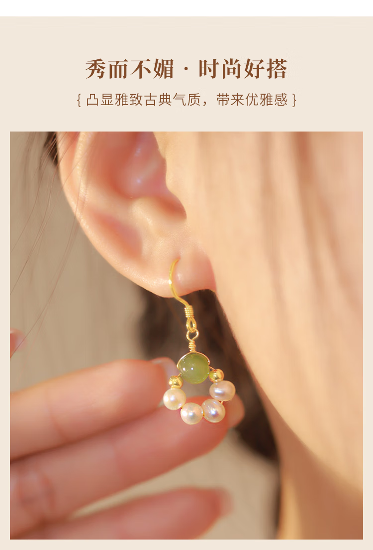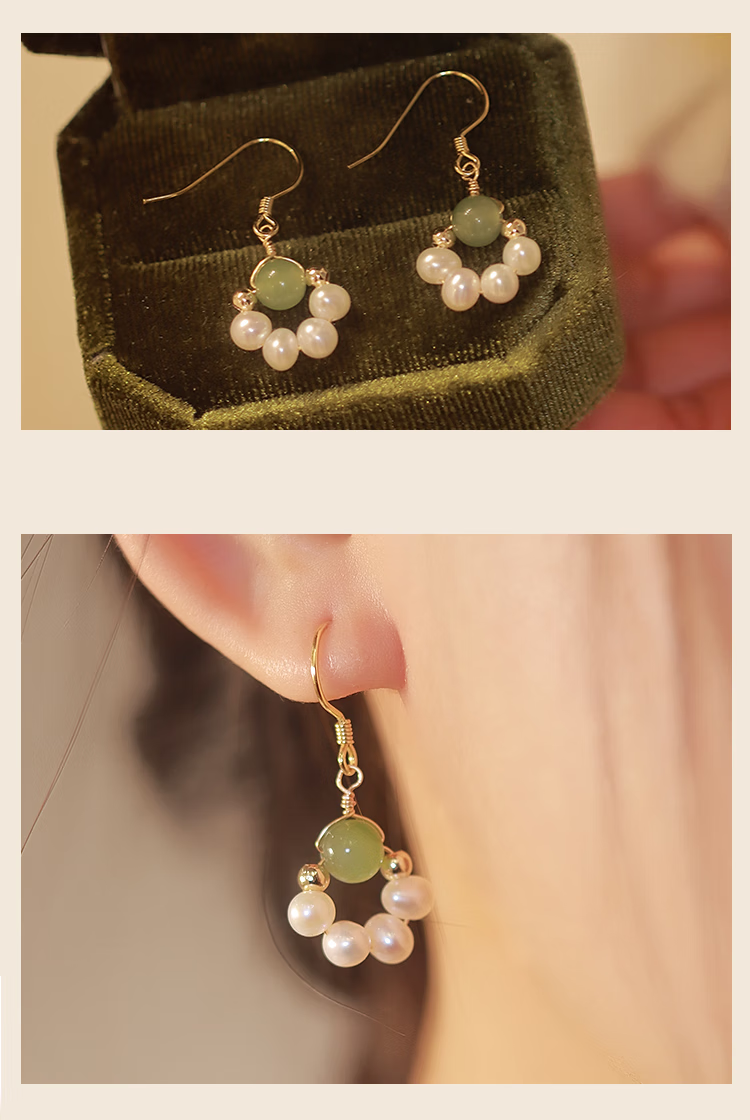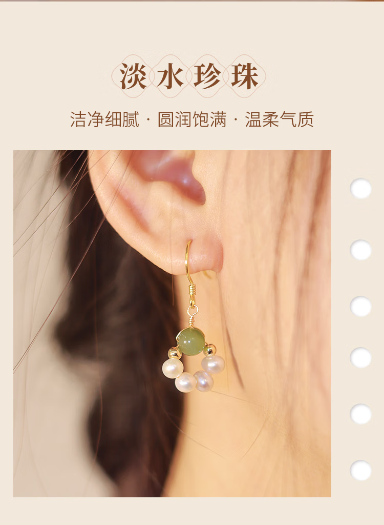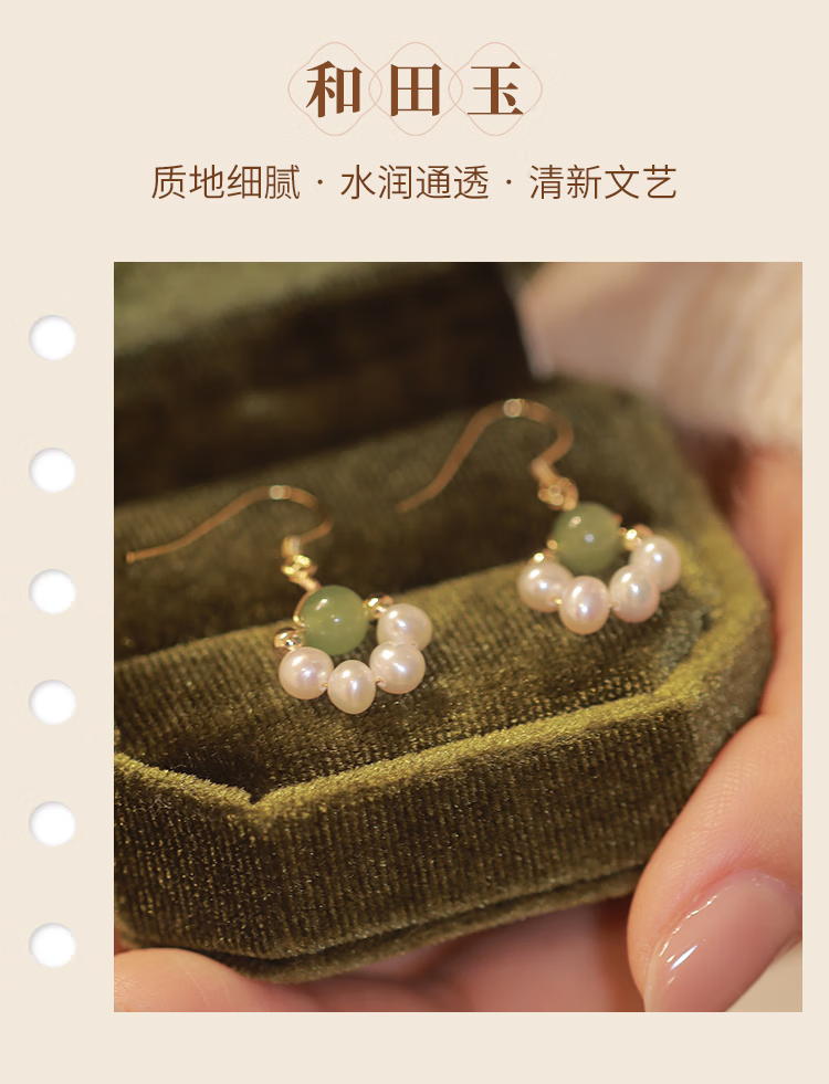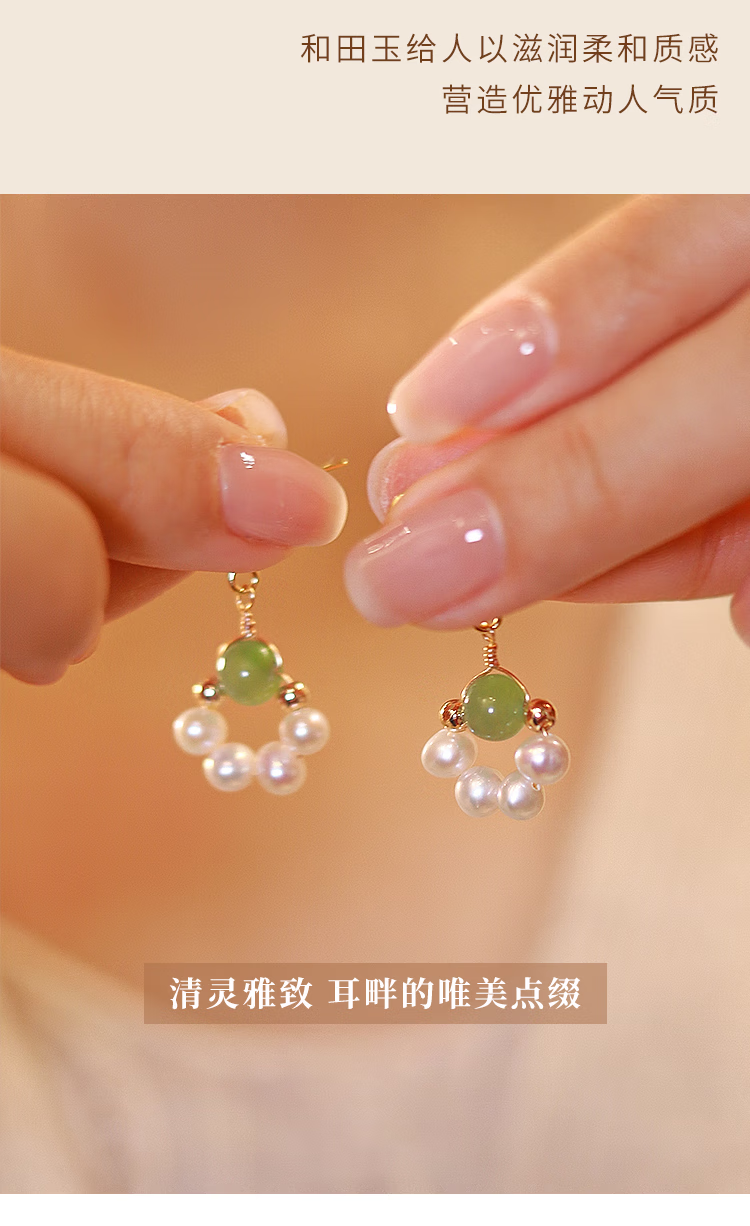 JALLOO Freshwater Pearl Earrings Women's Hotan Jade Earrings Light Luxury Niche High-end Earrings Birthday Gift for Girlfriend Freshwater Pearl Hotan Jade Earrings (Certificate)