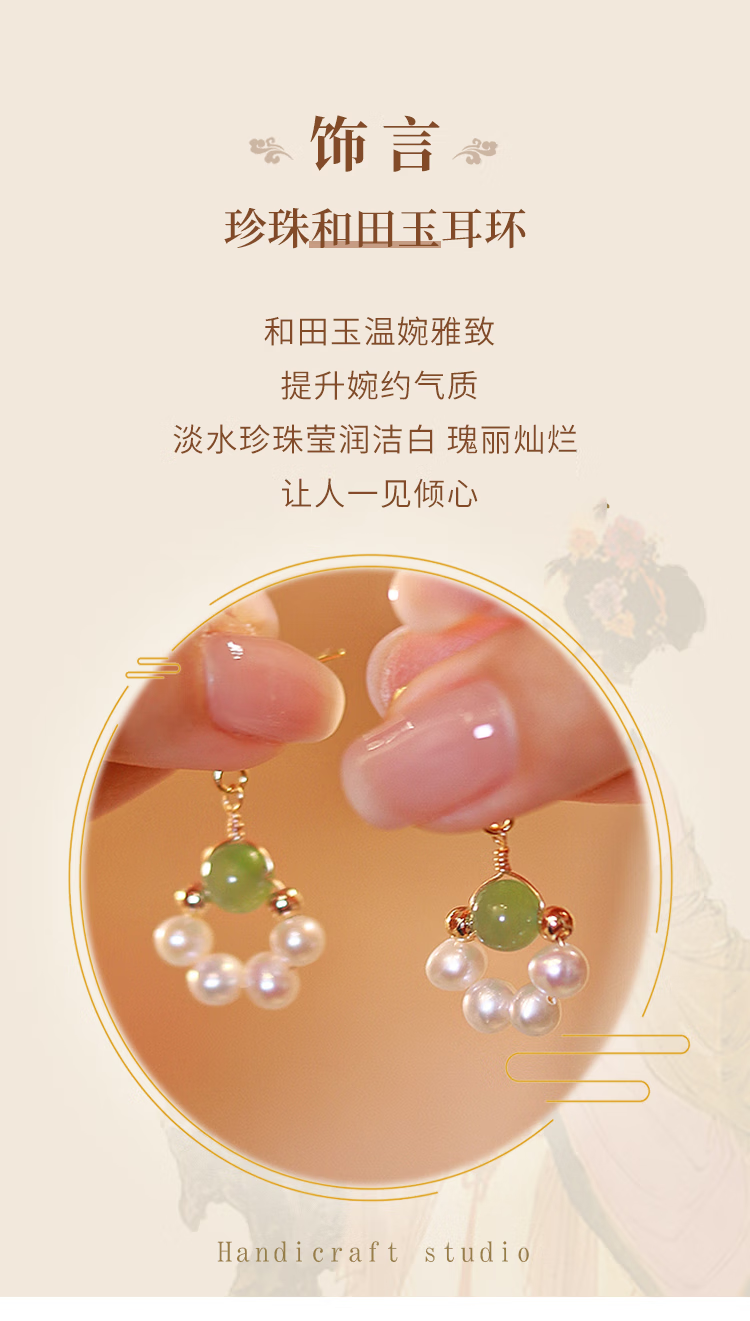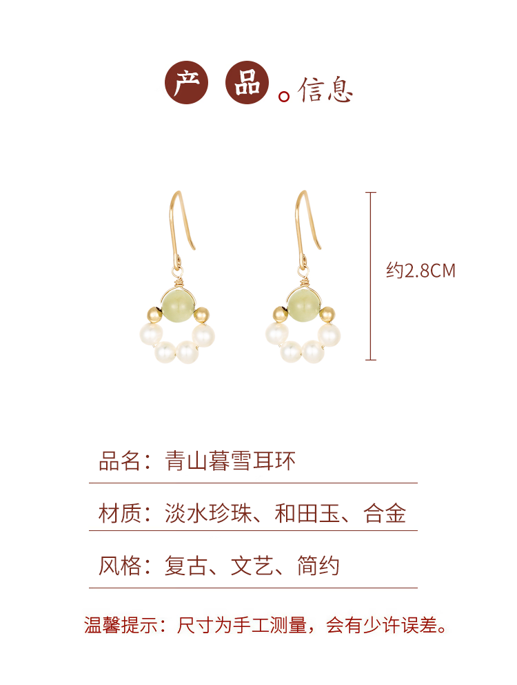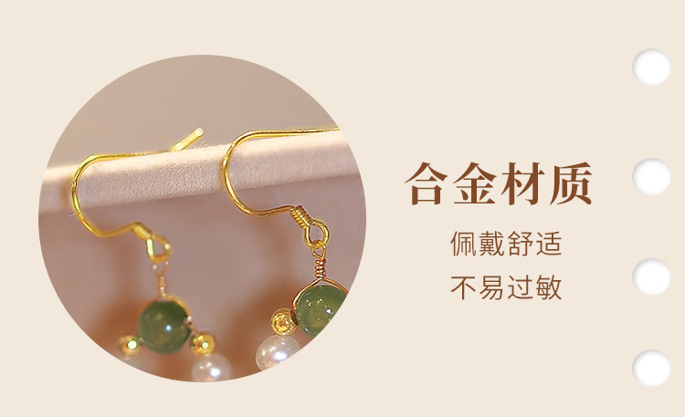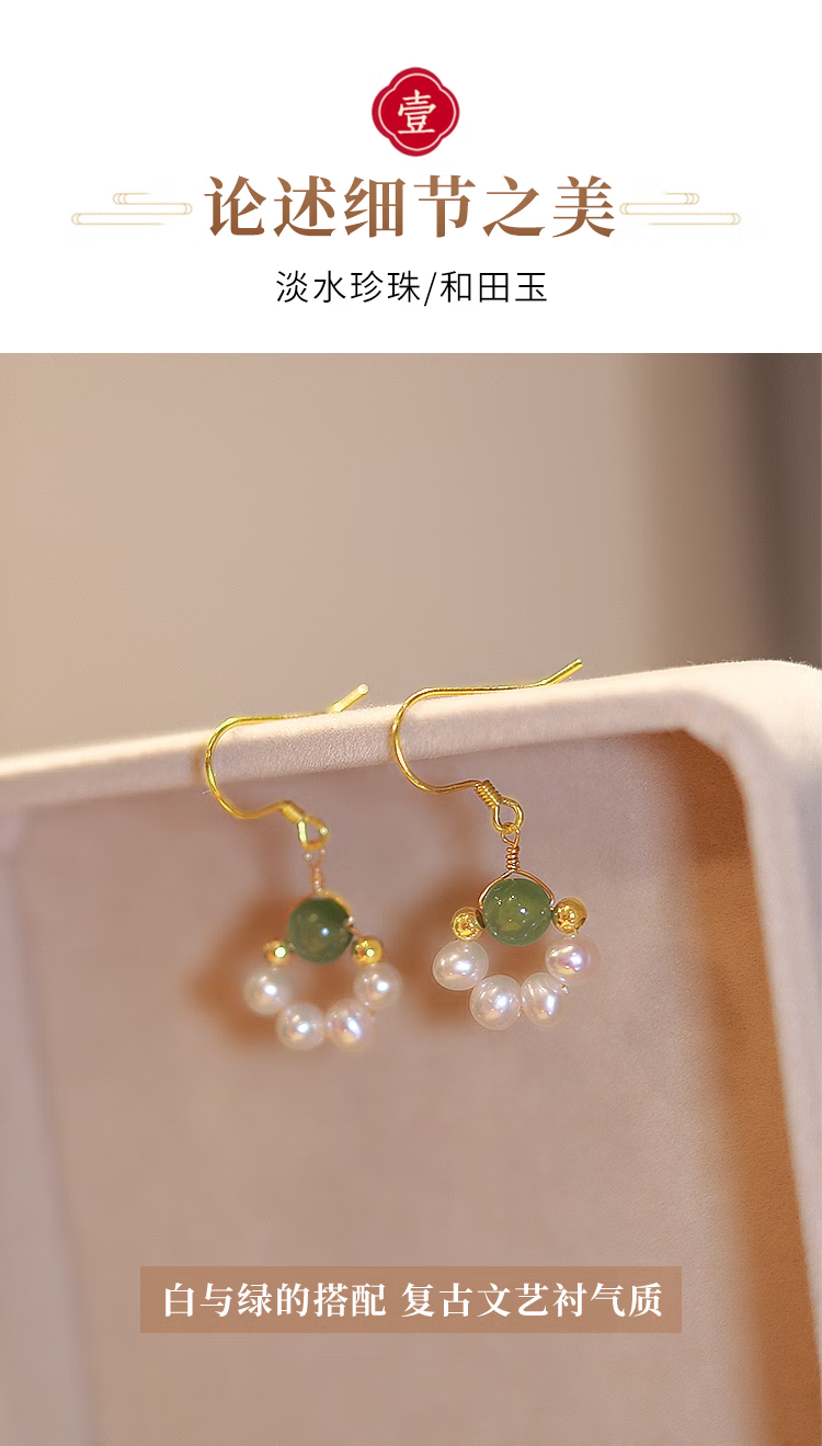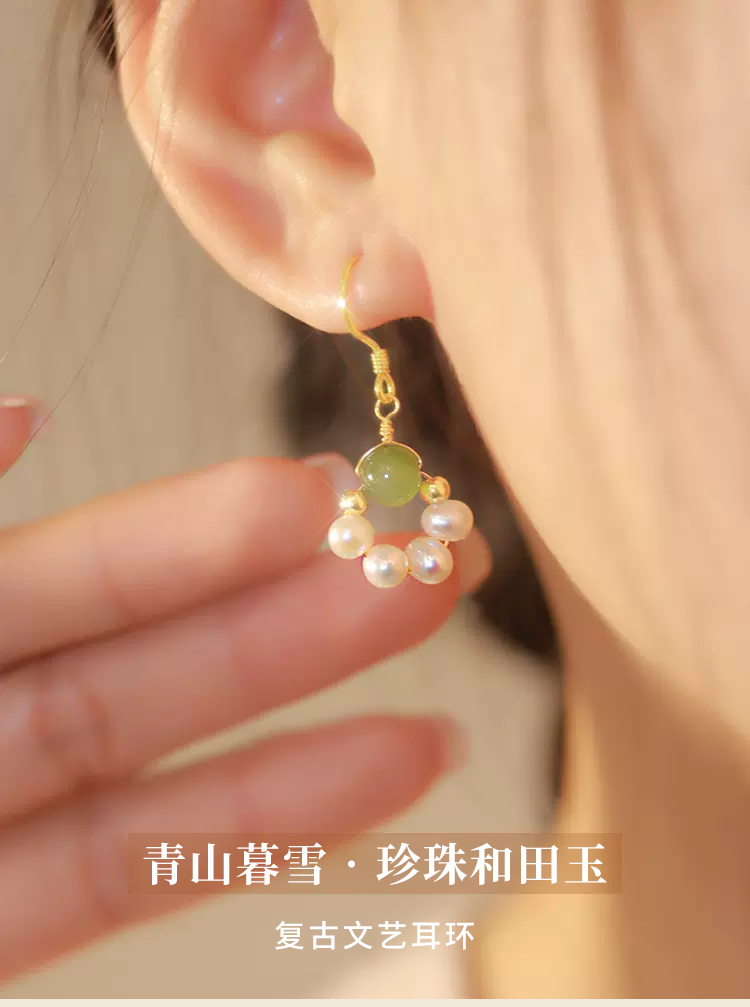 JALLOO Freshwater Pearl Earrings Women's Hotan Jade Earrings Light Luxury Niche High-end Earrings Birthday Gift for Girlfriend Freshwater Pearl Hotan Jade Earrings (Certificate)