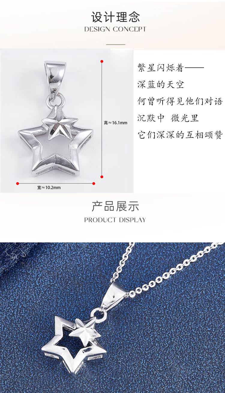 Jibaolou PT950 platinum necklace for women, platinum necklace, hollow star pendant, New Year's Day gift, single pendant, about 1.26 grams