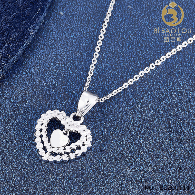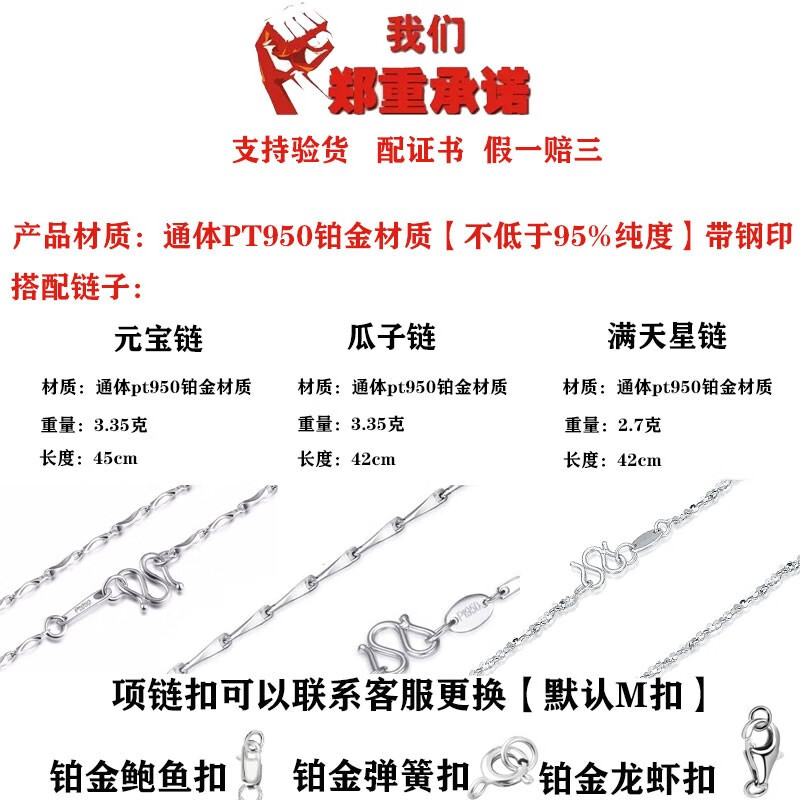 Jibaolou PT950 platinum necklace for women, platinum clavicle chain, imitation diamond heart-shaped love pendant set chain, New Year's Day gift, single pendant about 1.5 grams