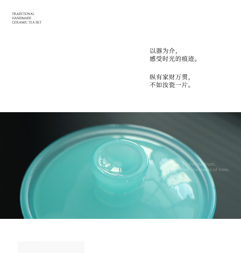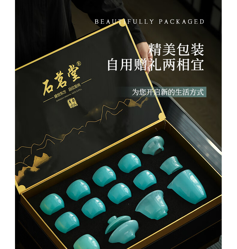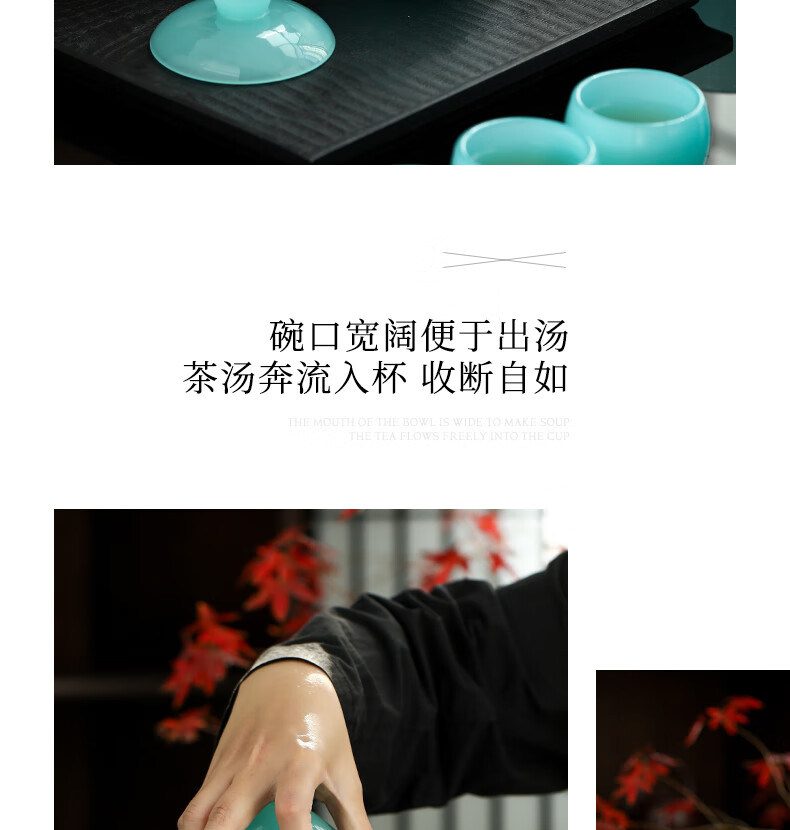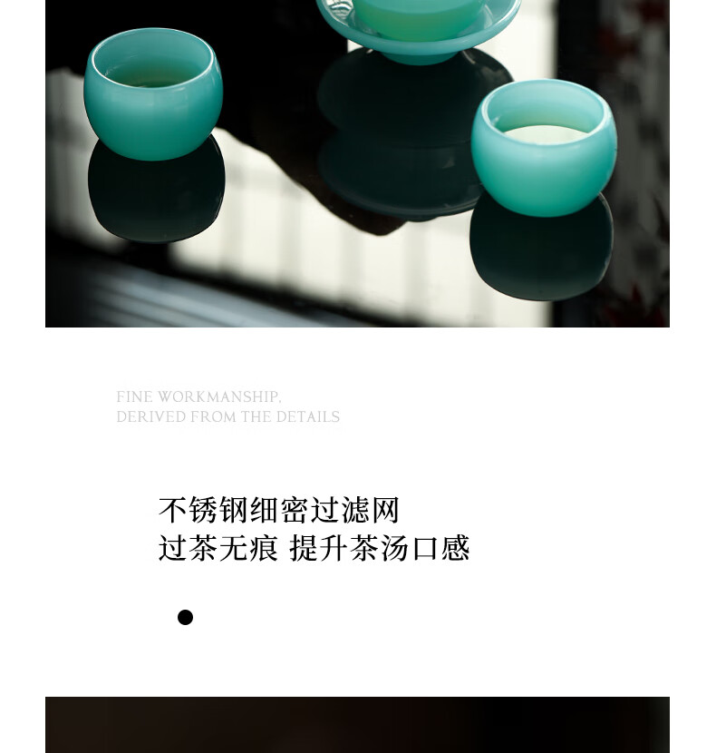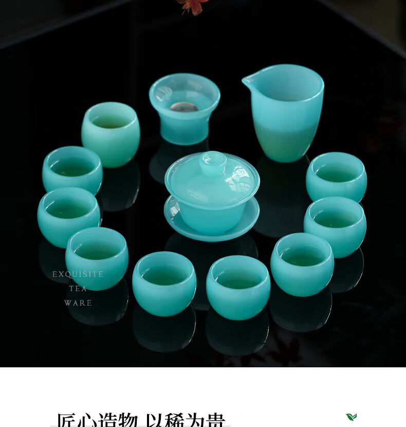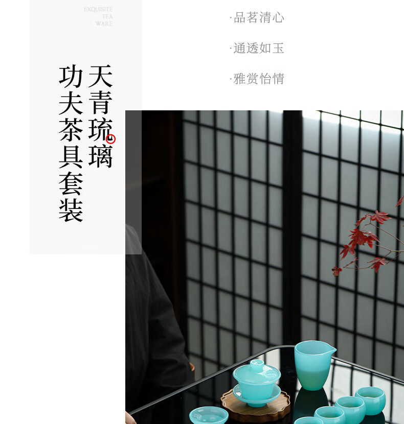 Shimingtang Glazed Kung Fu Tea Set High-end Ice Jade Porcelain Teapot Teacup Sancai Covered Bowl Home Light Luxury Gift Box Pack Pomelo Jade Clear Green-10 Piece Set Gift Box Pack