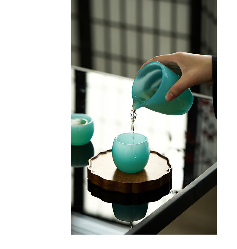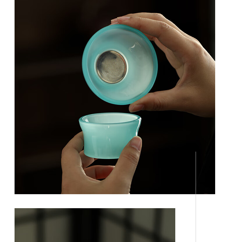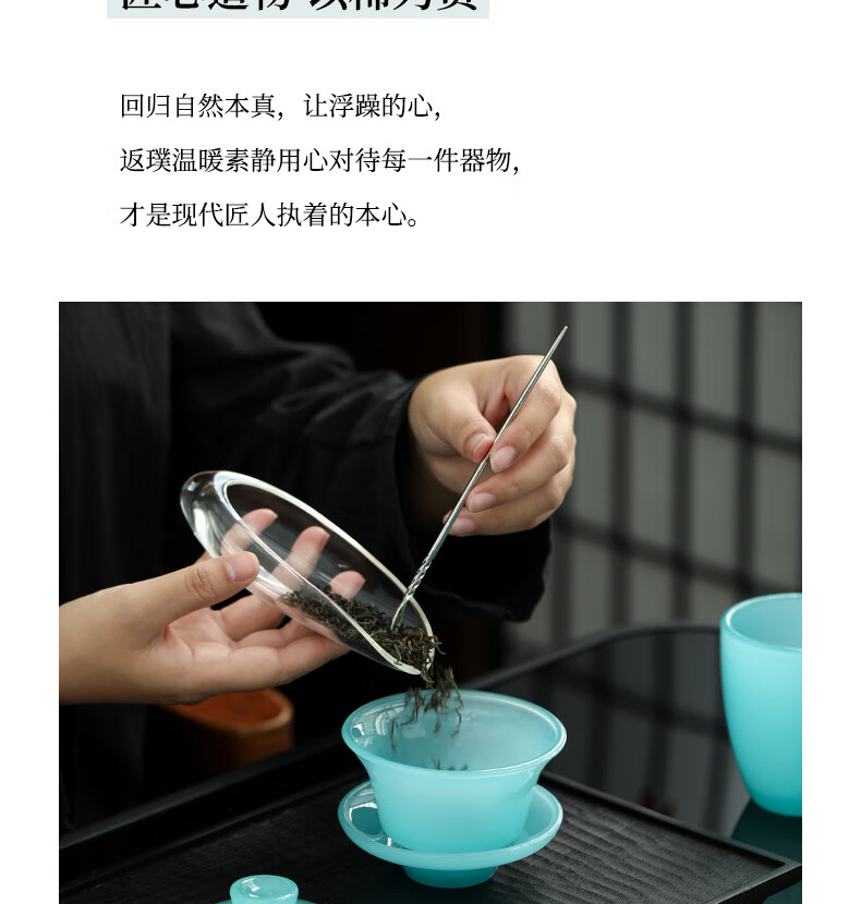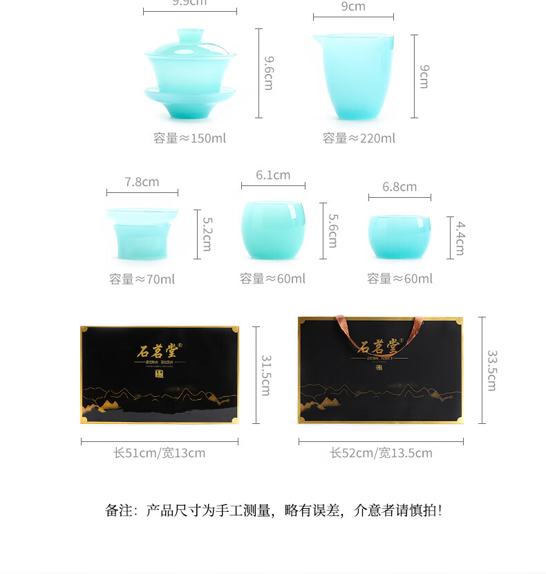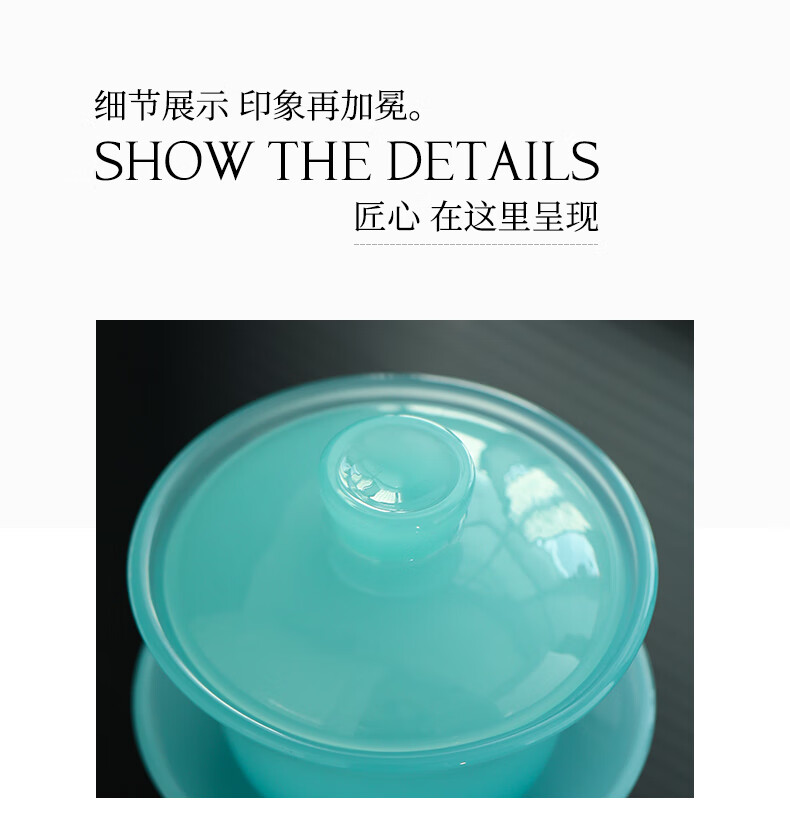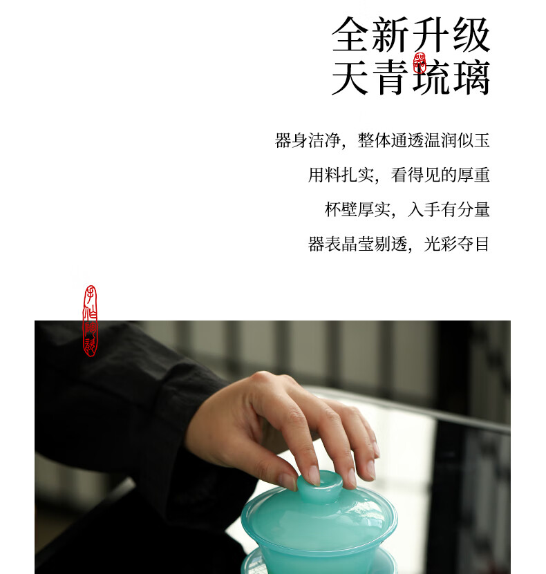 Shimingtang Glazed Kung Fu Tea Set High-end Ice Jade Porcelain Teapot Teacup Sancai Covered Bowl Home Light Luxury Gift Box Pack Pomelo Jade Clear Green-10 Piece Set Gift Box Pack