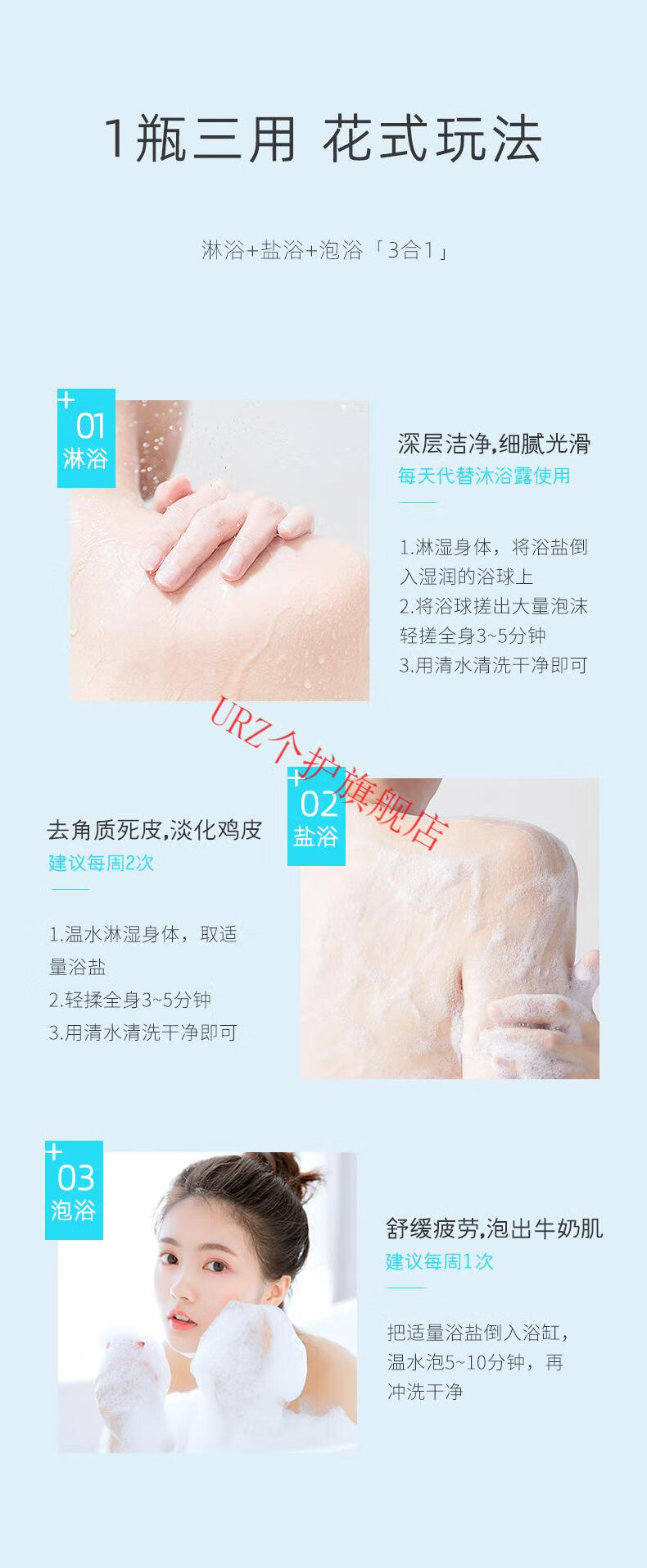 MRYU Water Muscle Milk Scrub Bath Salt Sterilizes and Relieves Itching Women's and Men's Special Body Sea Salt Wash and Scrub 2 Pack