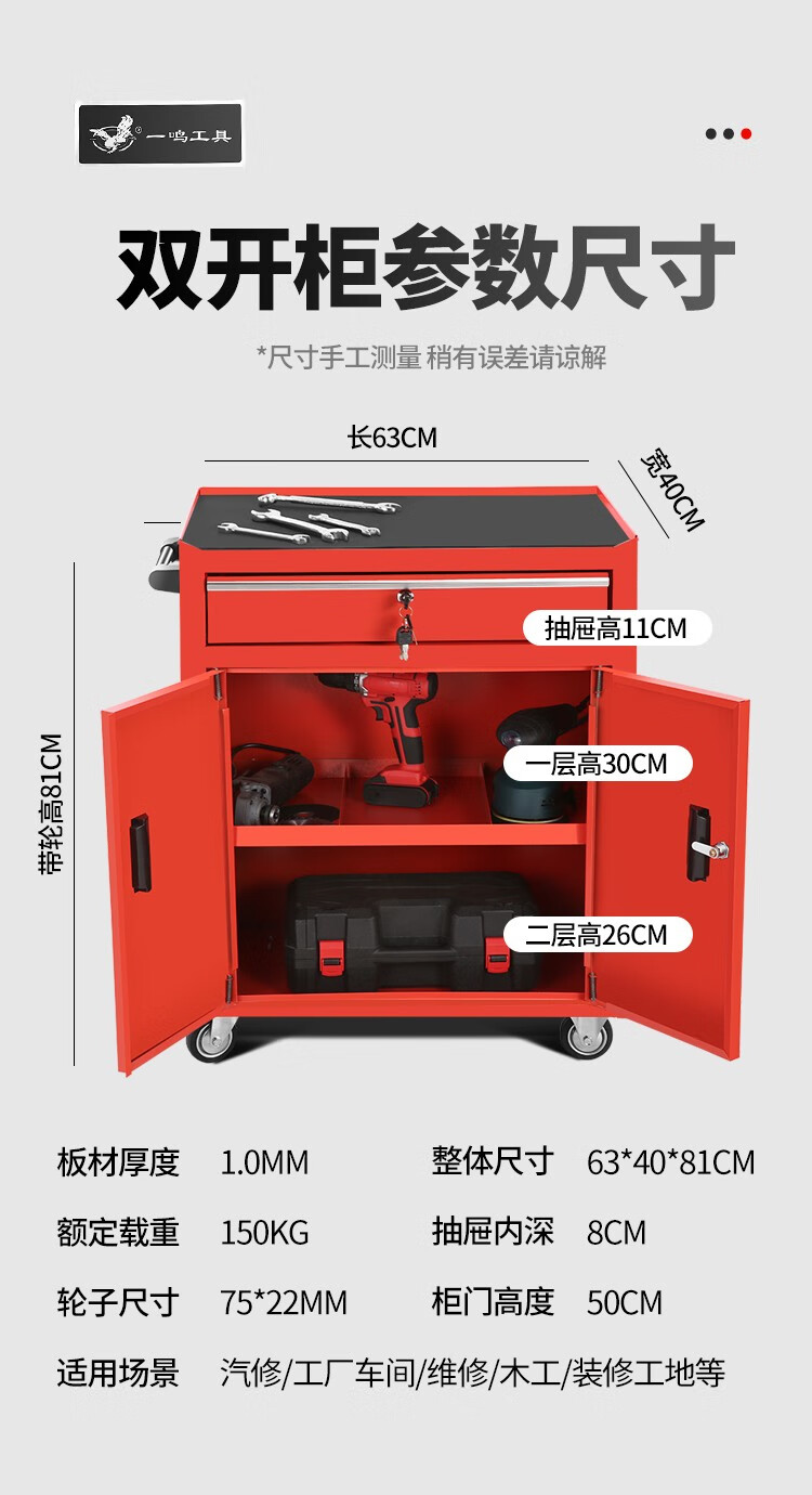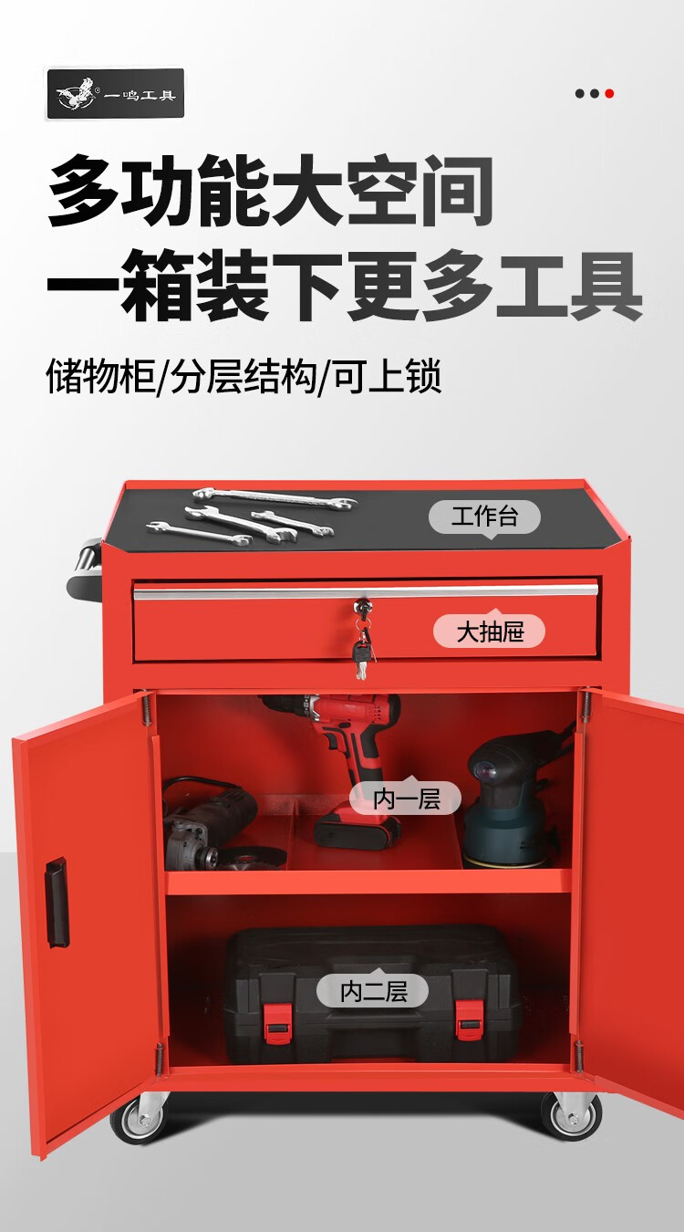 Yiming Hardware Tools Tin Cabinet Workshop Accessories Storage Rack Drawer Parts Box Multifunctional Thickened Repair Turnover Box Red Single Drawer Tool Cabinet (Casters with Lock)