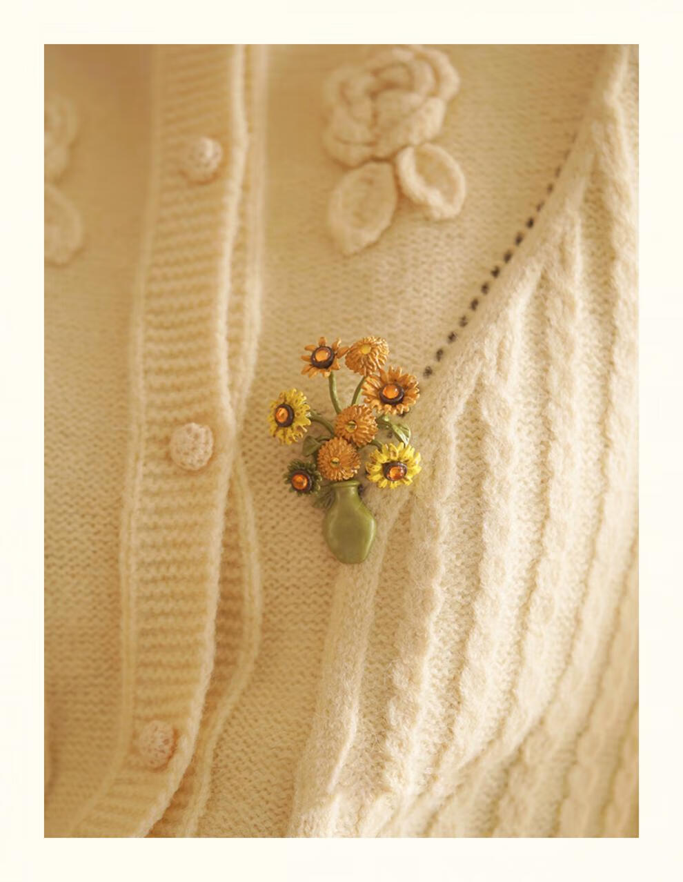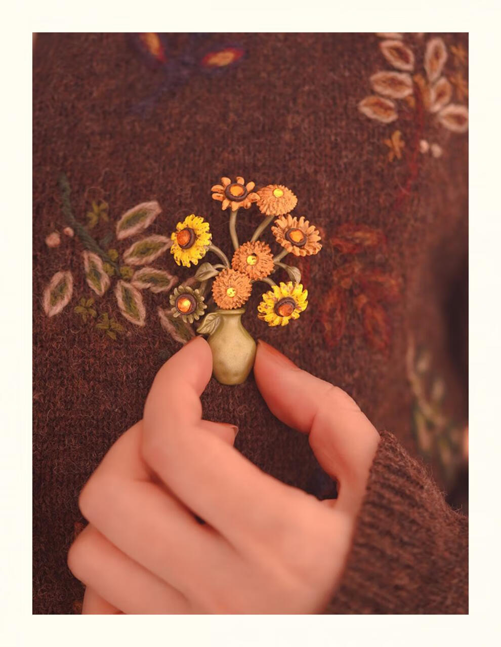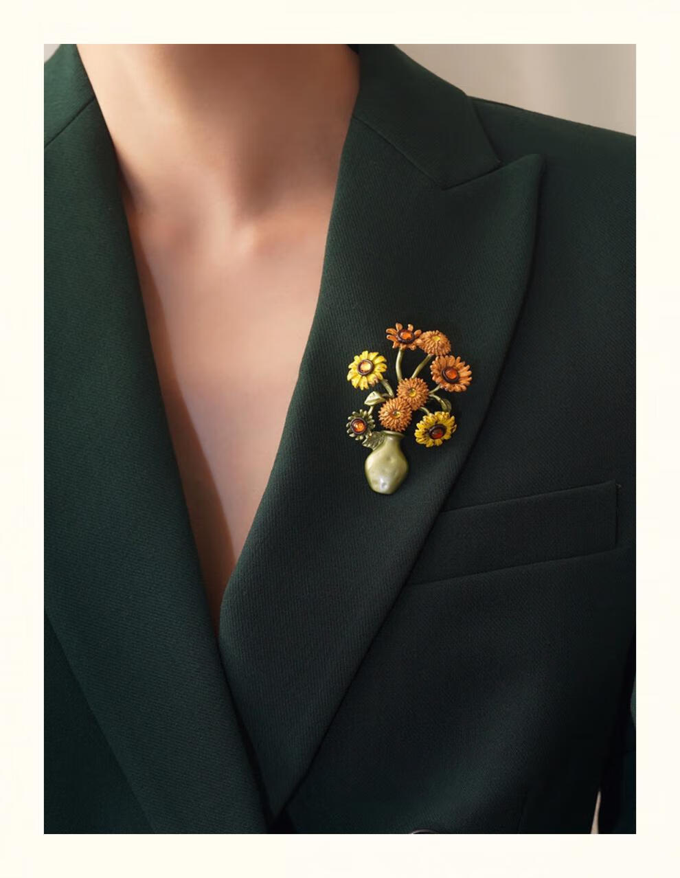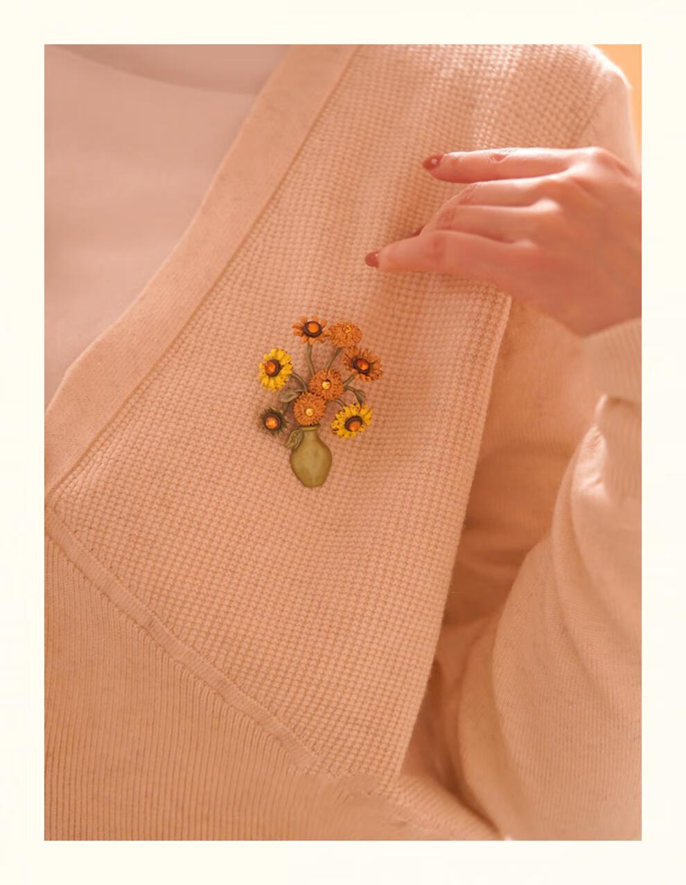 LEMIAO Van Gogh sunflower brooch oil painting feeling forest retro plant collar pin gift new niche design autumn 8 flower style A26-308