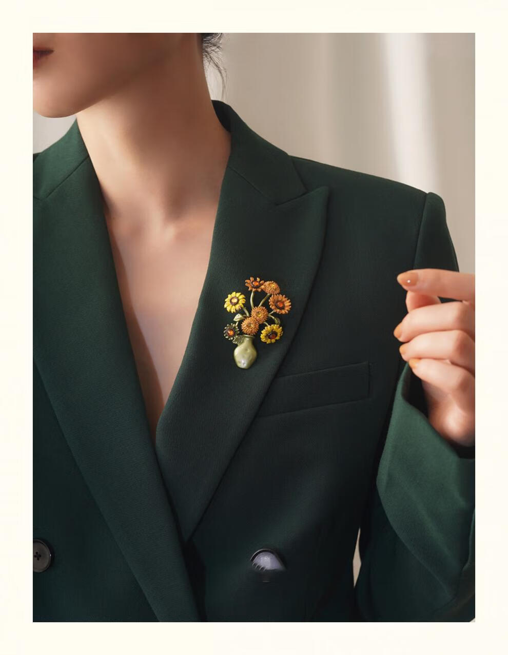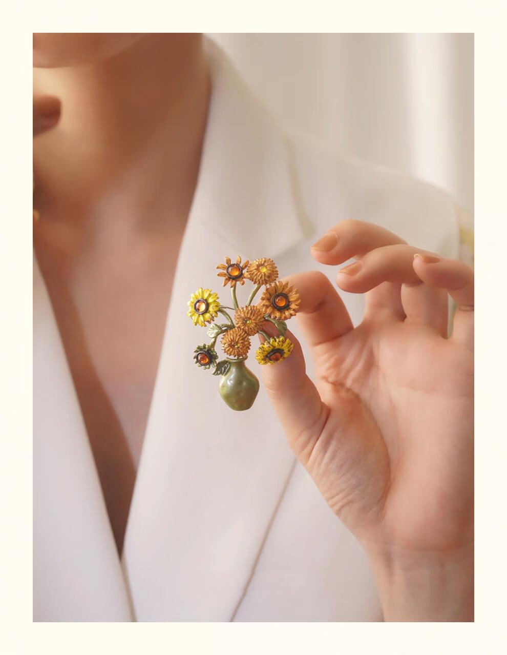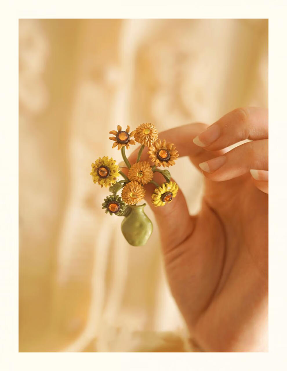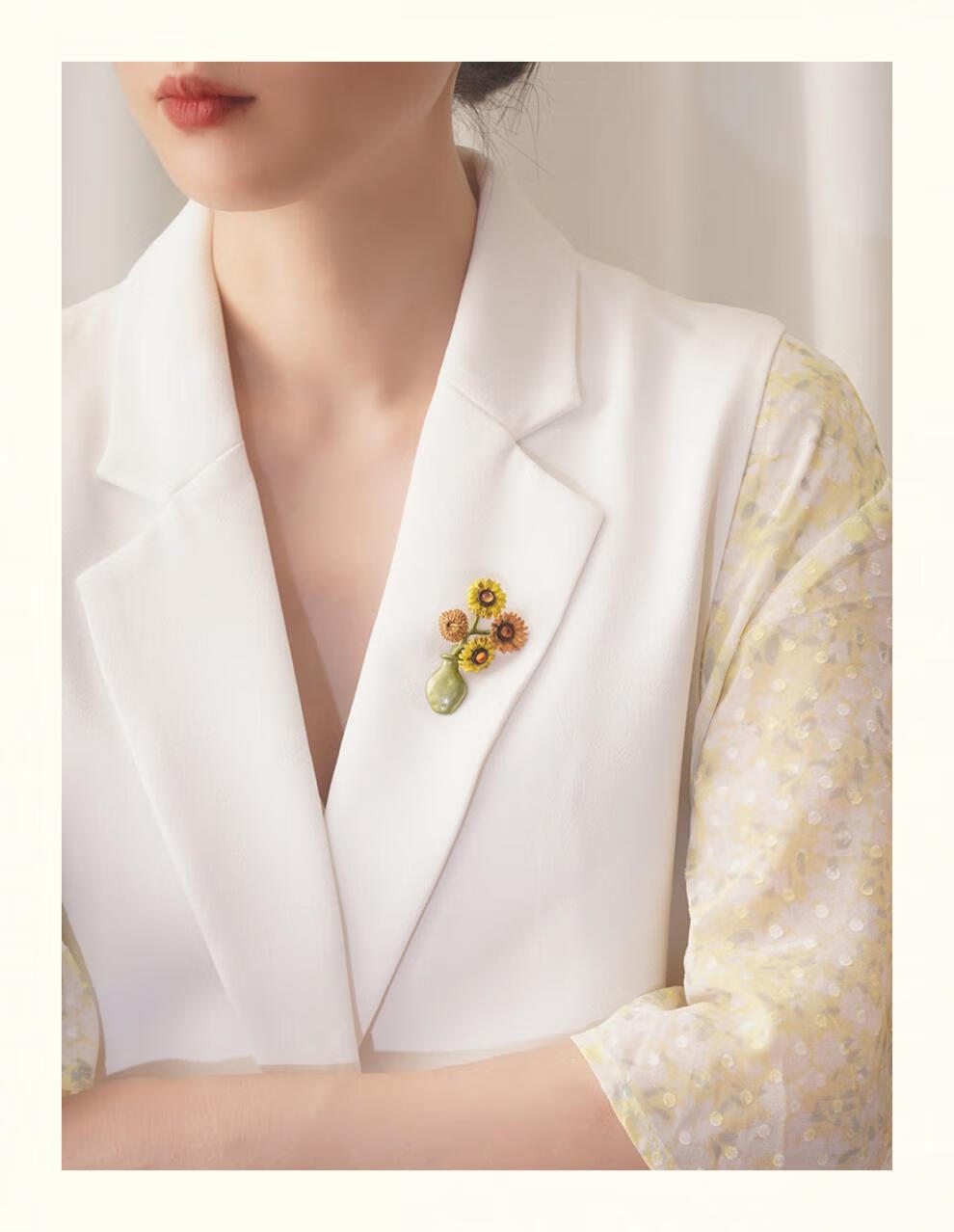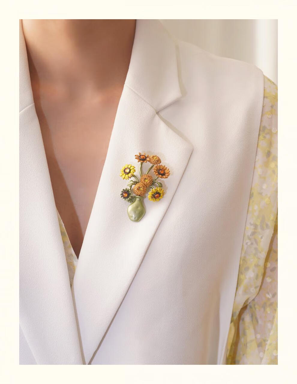 LEMIAO Van Gogh sunflower brooch oil painting feeling forest retro plant collar pin gift new niche design autumn 8 flower style A26-308