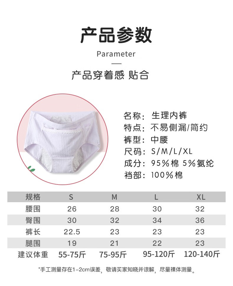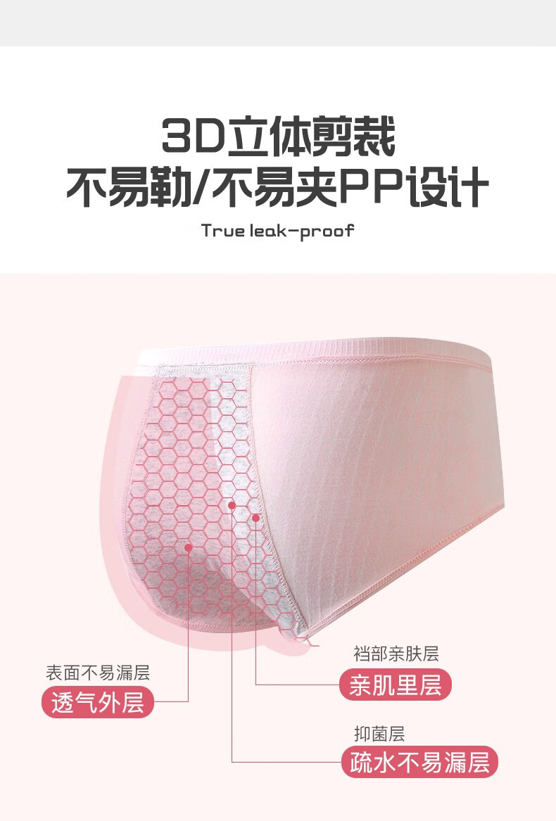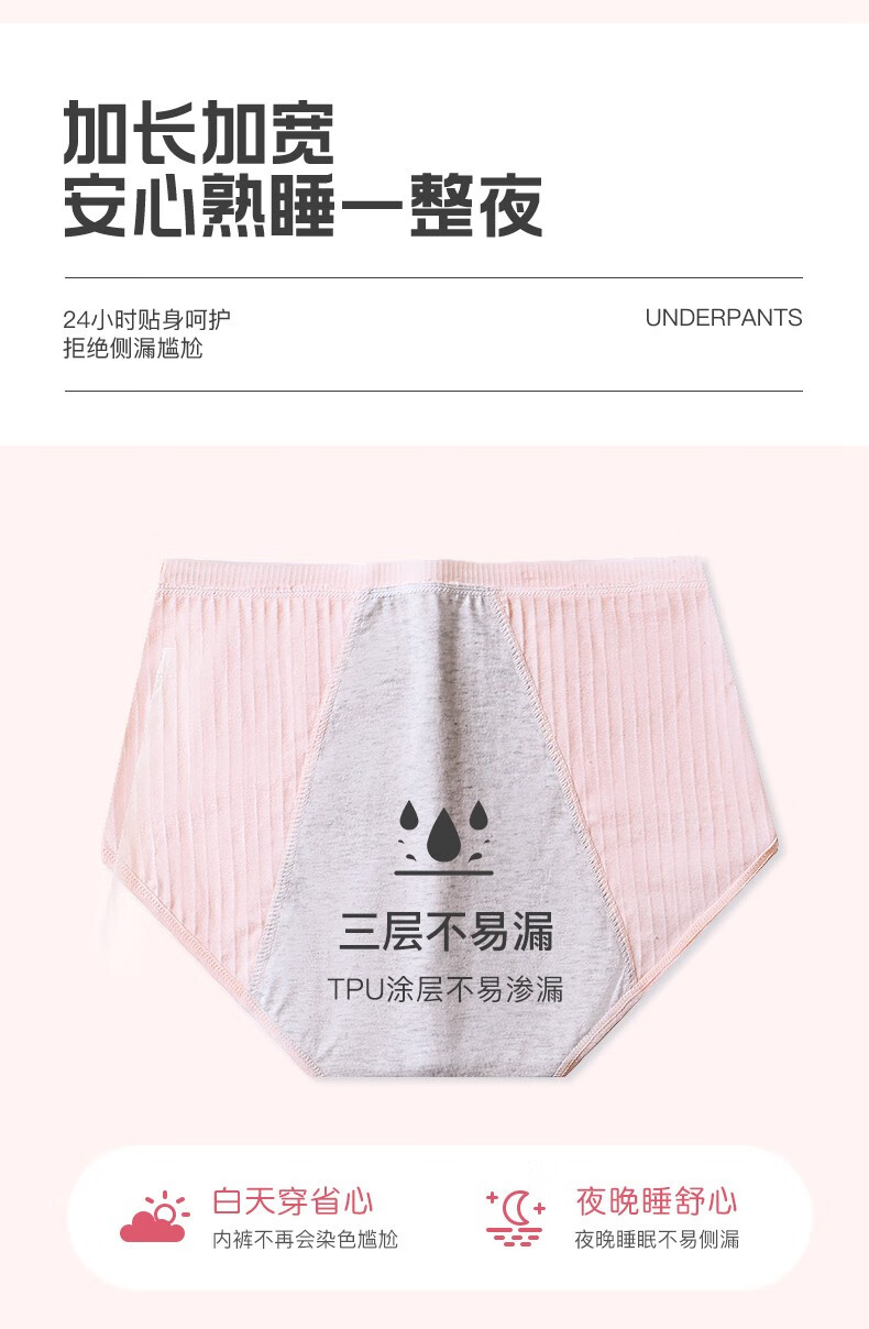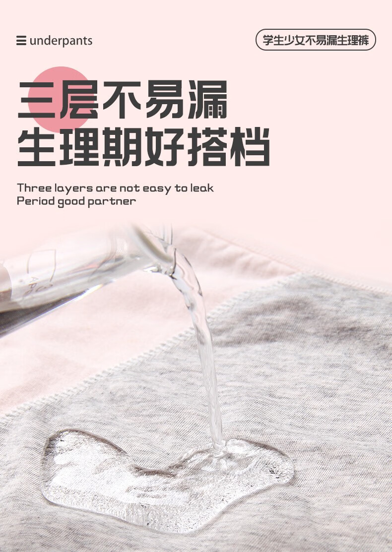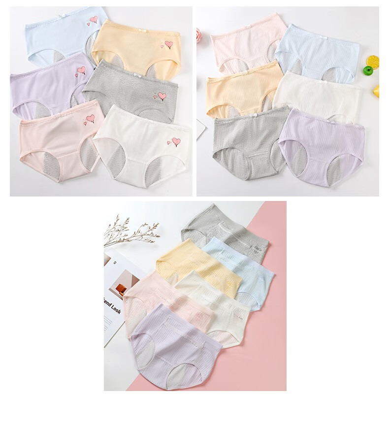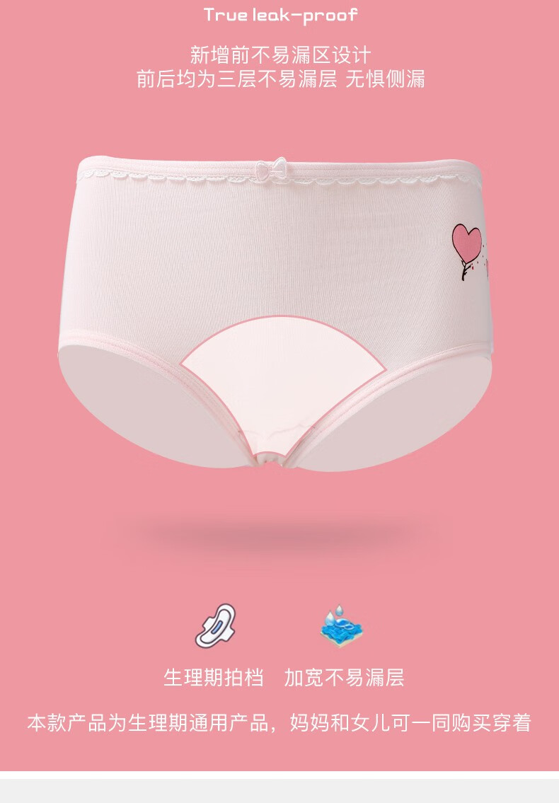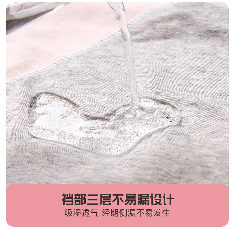 Langsha children's underwear, girls' menstrual pants for middle and large children, middle and high school students, anti-lateral leakage menstrual briefs, pure cotton bottom, pink, purple and gray, 3 pairs 165 (L) recommended weight 95-120Jin Jin equals 0.5 kg