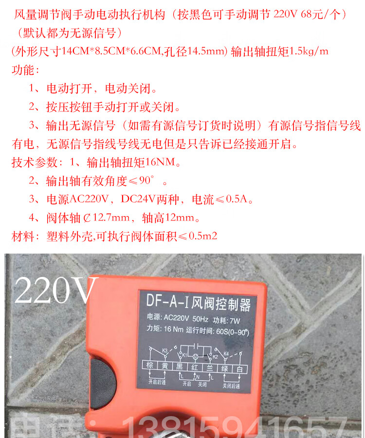 Customized hand electric damper actuator/electric damper actuator/electric mechanism damper controller/DF- damper switch (open and close)