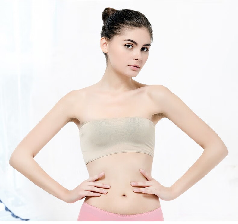 LangSha one-piece bandeau bra for women, anti-exposure, strapless bra, short style, one size fits all, skin color, one size