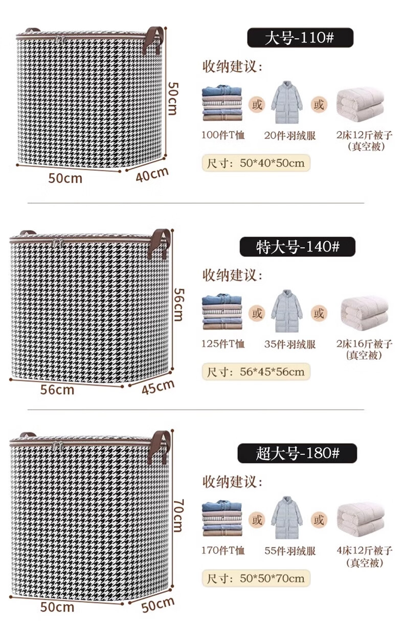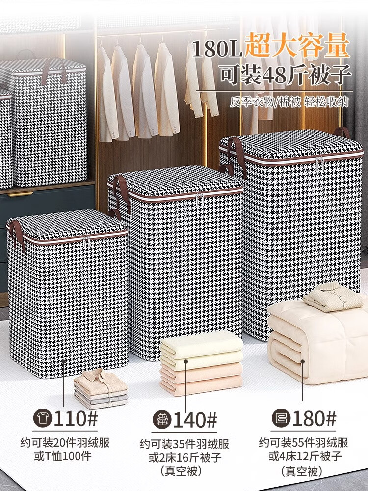 Youna Quilt Storage Bag Home Moving Packing Bag for Clothes Large Capacity Quilt Moisture-proof and Dust-proof Organizing Bag Extra Large Houndstooth-180# 50*50*70cm