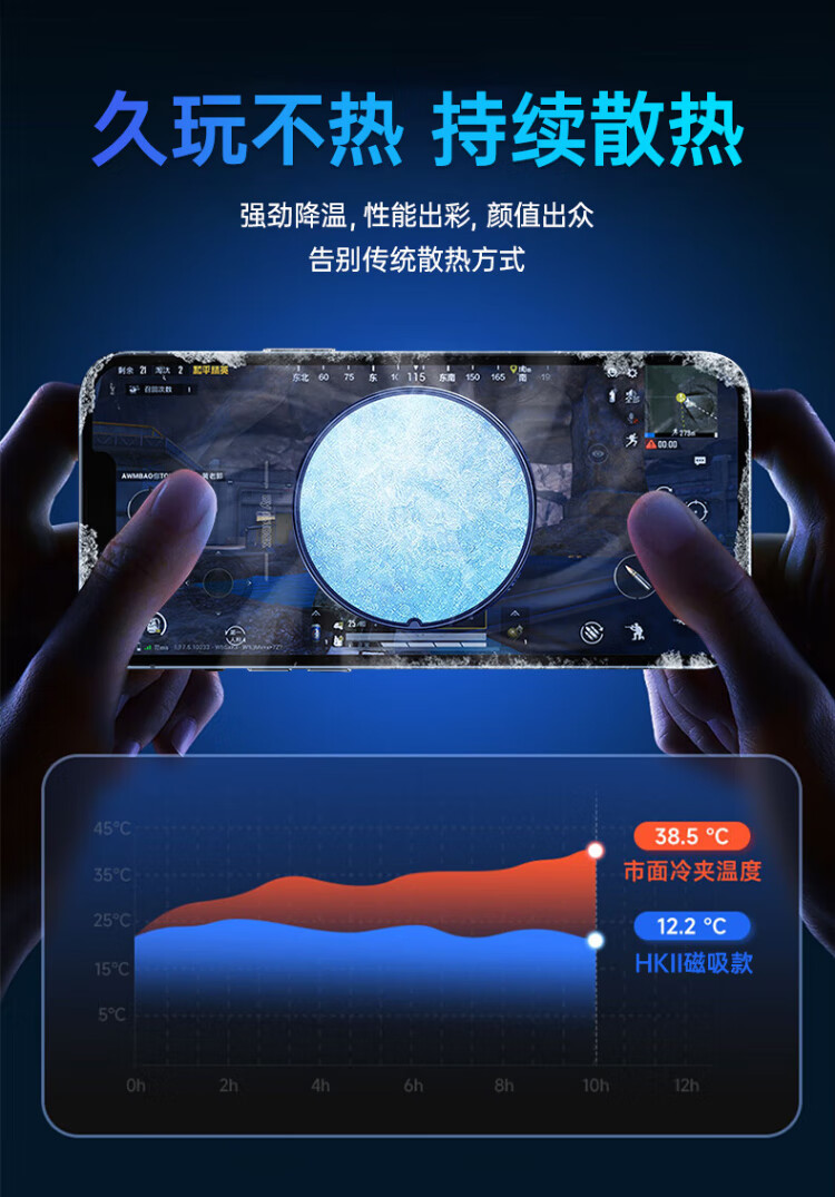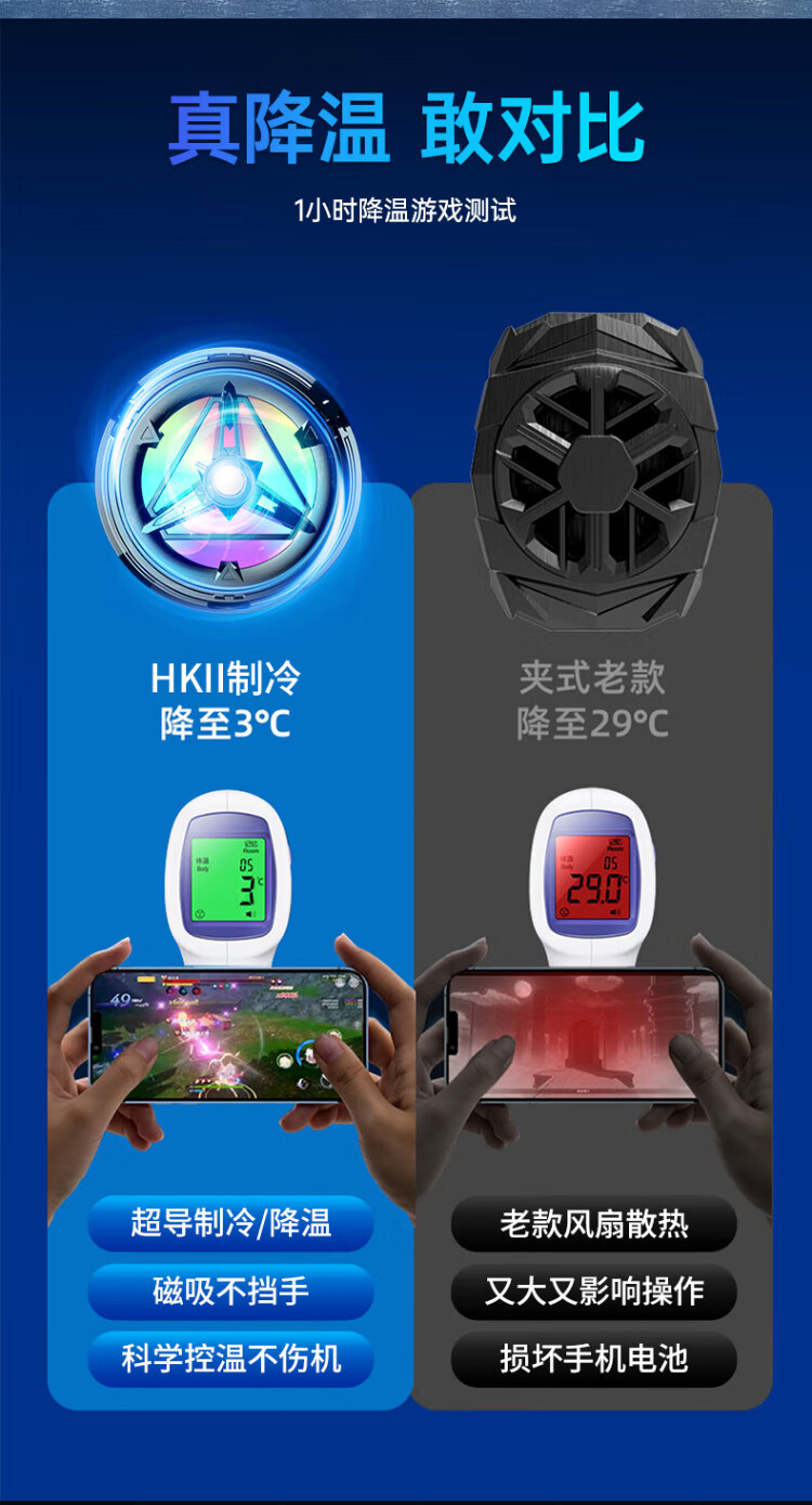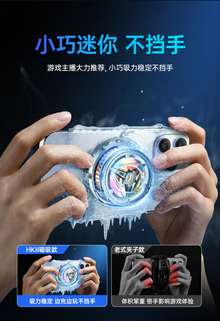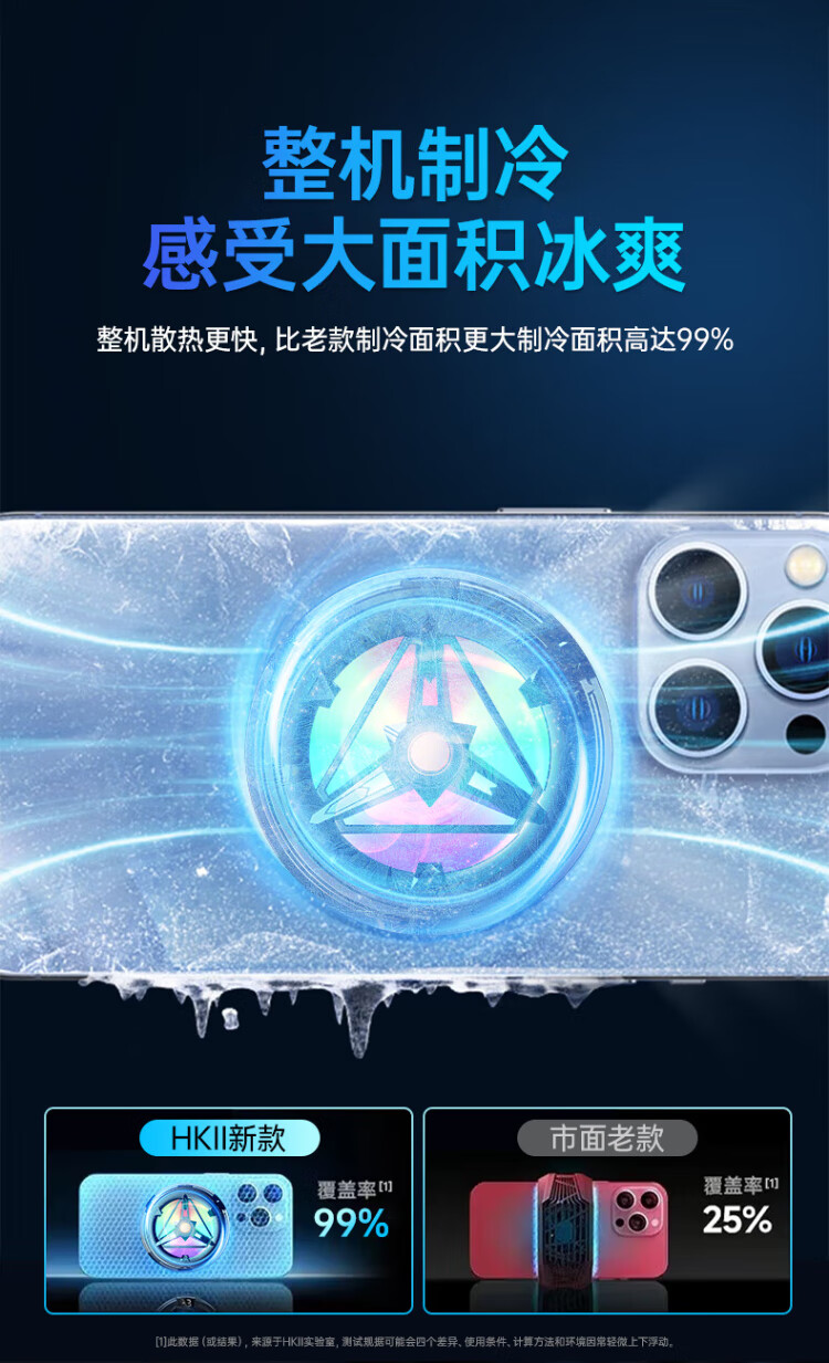HKII League Level Cooling丨Ice Armor Mobile Phone and Tablet Radiator Magnetic Semiconductor Cooling Black Shark Back Clip for Apple 13/14/15 Android Universal Peripheral Cooling E-Sports Live Broadcast Model Universal Mobile Phone and Tablet/Instant Cooling/Free Magnetic Sheet