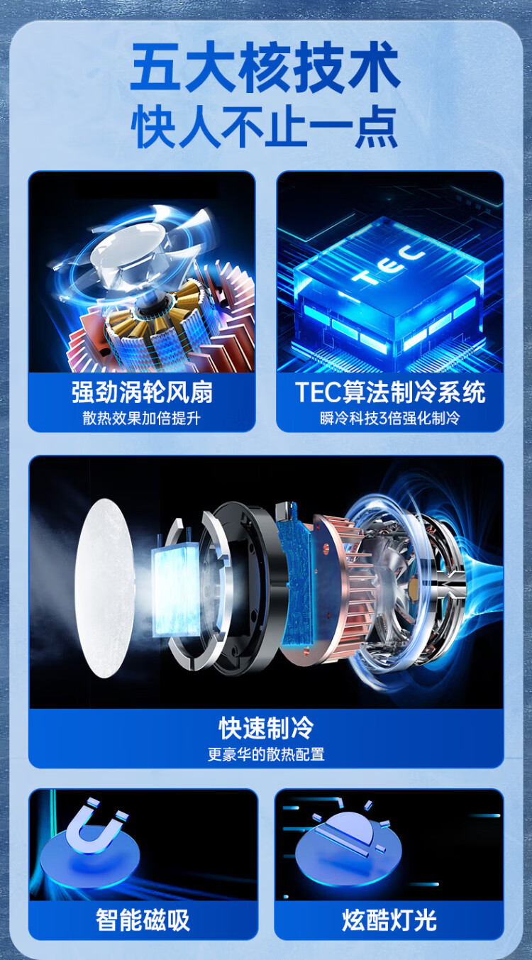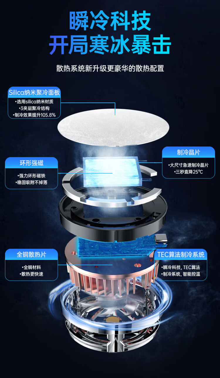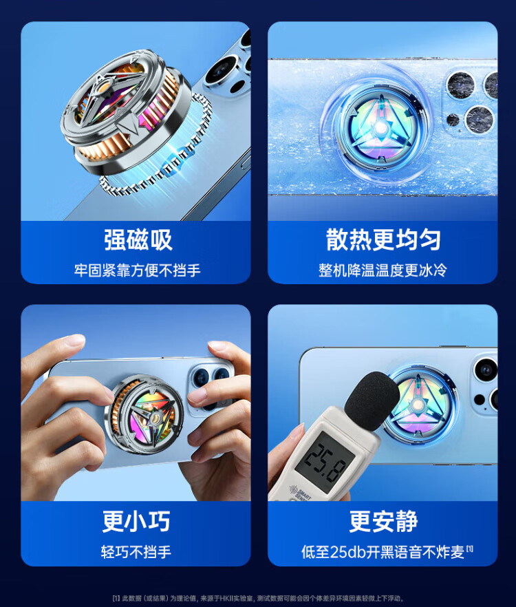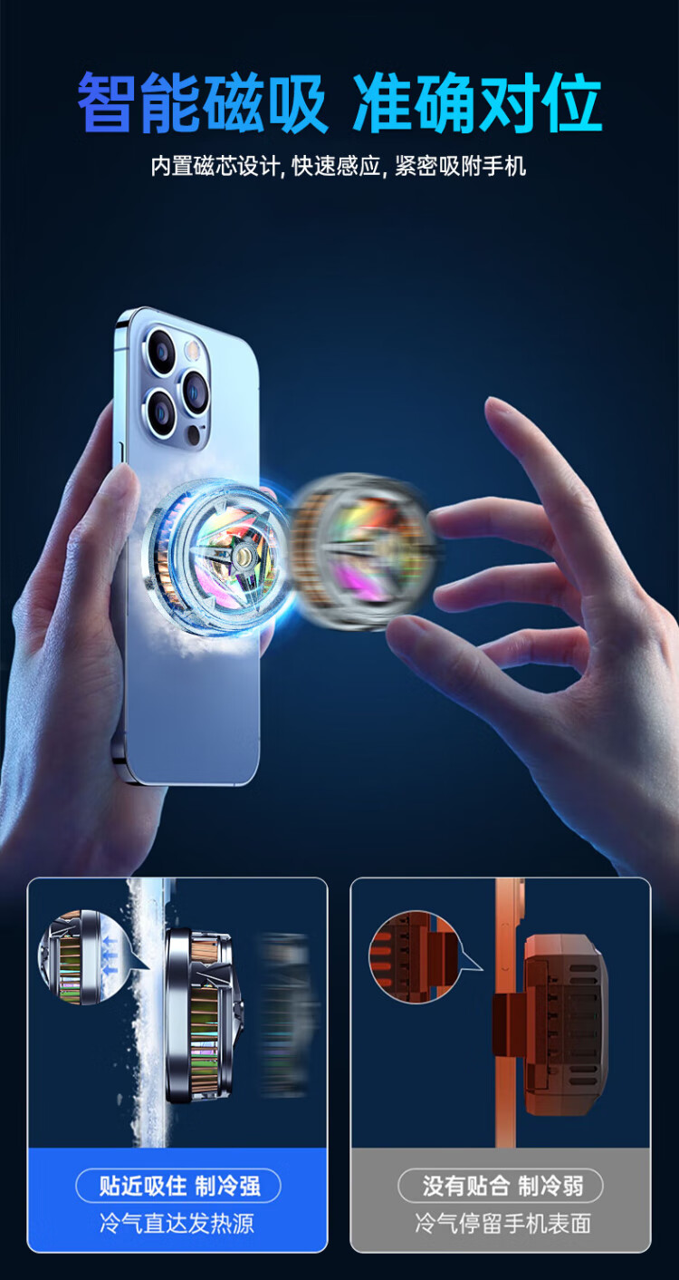 HKII League Level Cooling丨Ice Armor Mobile Phone and Tablet Radiator Magnetic Semiconductor Cooling Black Shark Back Clip for Apple 13/14/15 Android Universal Peripheral Cooling E-Sports Live Broadcast Model Universal Mobile Phone and Tablet/Instant Cooling/Free Magnetic Sheet