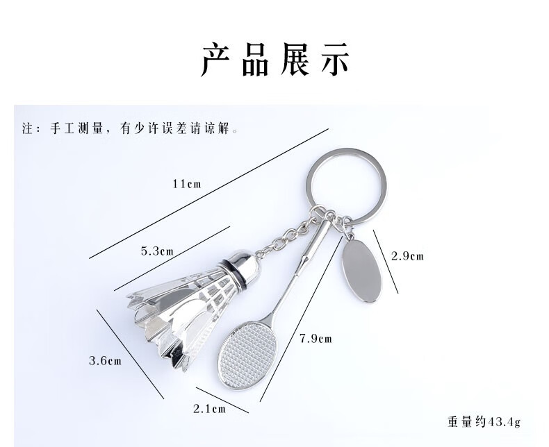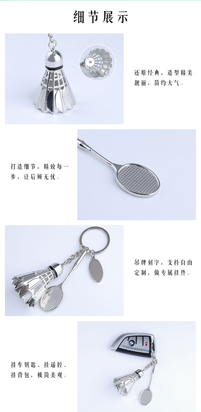 LAAZEE metal simulation badminton key large badminton sports accessories pendant key chain pendant exquisite small gift large badminton + racket + tag engraving contact customer service