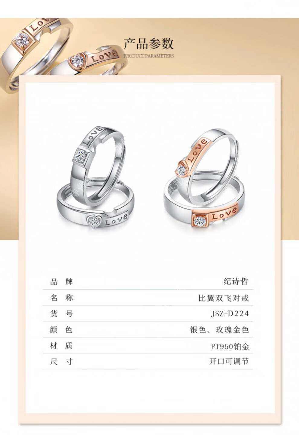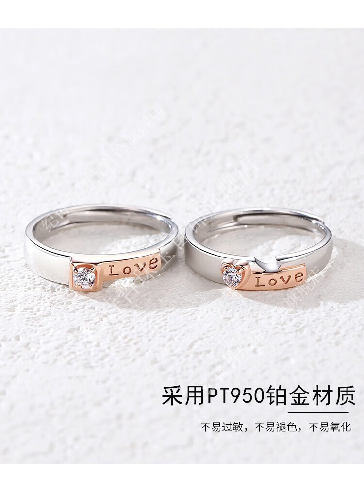 Ji Shizhe (GIEVSZHE) PT950 platinum love is stronger than gold, couple's ring, a female couple is getting married, a gift for girlfriend and wife on Valentine's Day, platinum is stronger than gold, couple's ring, white