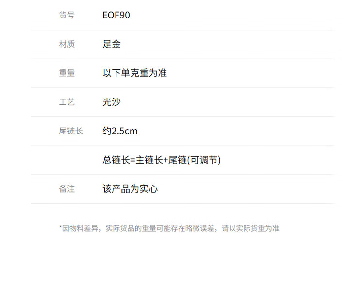 Chow Tai Fook Small Waist Gold Necklace Women's Passepartout Pure Gold Pendant (labor cost 360) EOF90 40cm pure gold about 4.05g