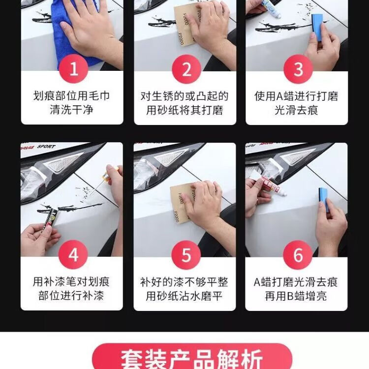 Jidaocook car touch-up pen white car paint scratch repair artifact pearl white scratch repair pen black wax dot paint pen universal black (deep repair) touch-up pen + grinding A wax