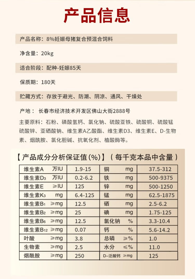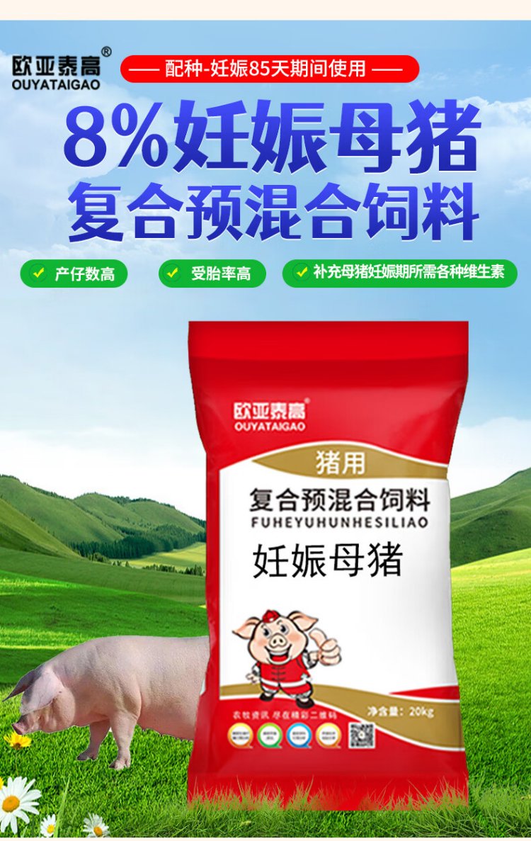Ouyataigao 8% pregnant sow compound premixed feed trace elements pregnant sow premix 20Kg/bag 2 bags 8% pregnant sow compound premixed feed